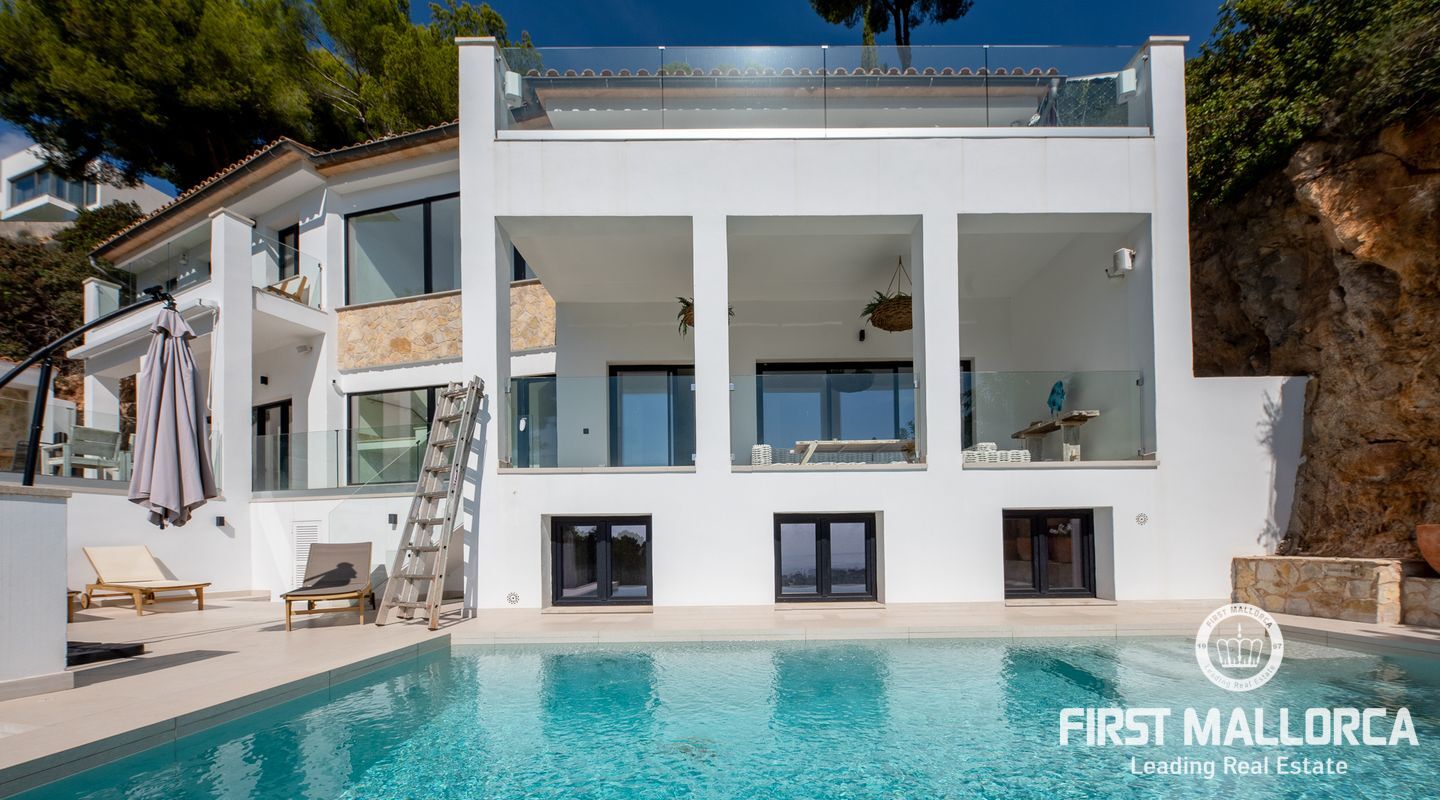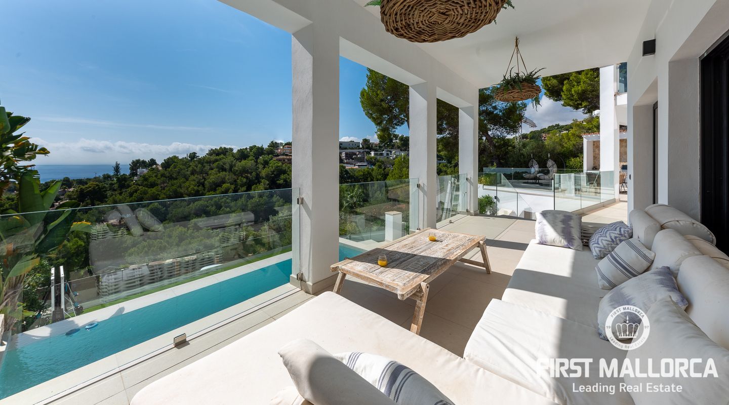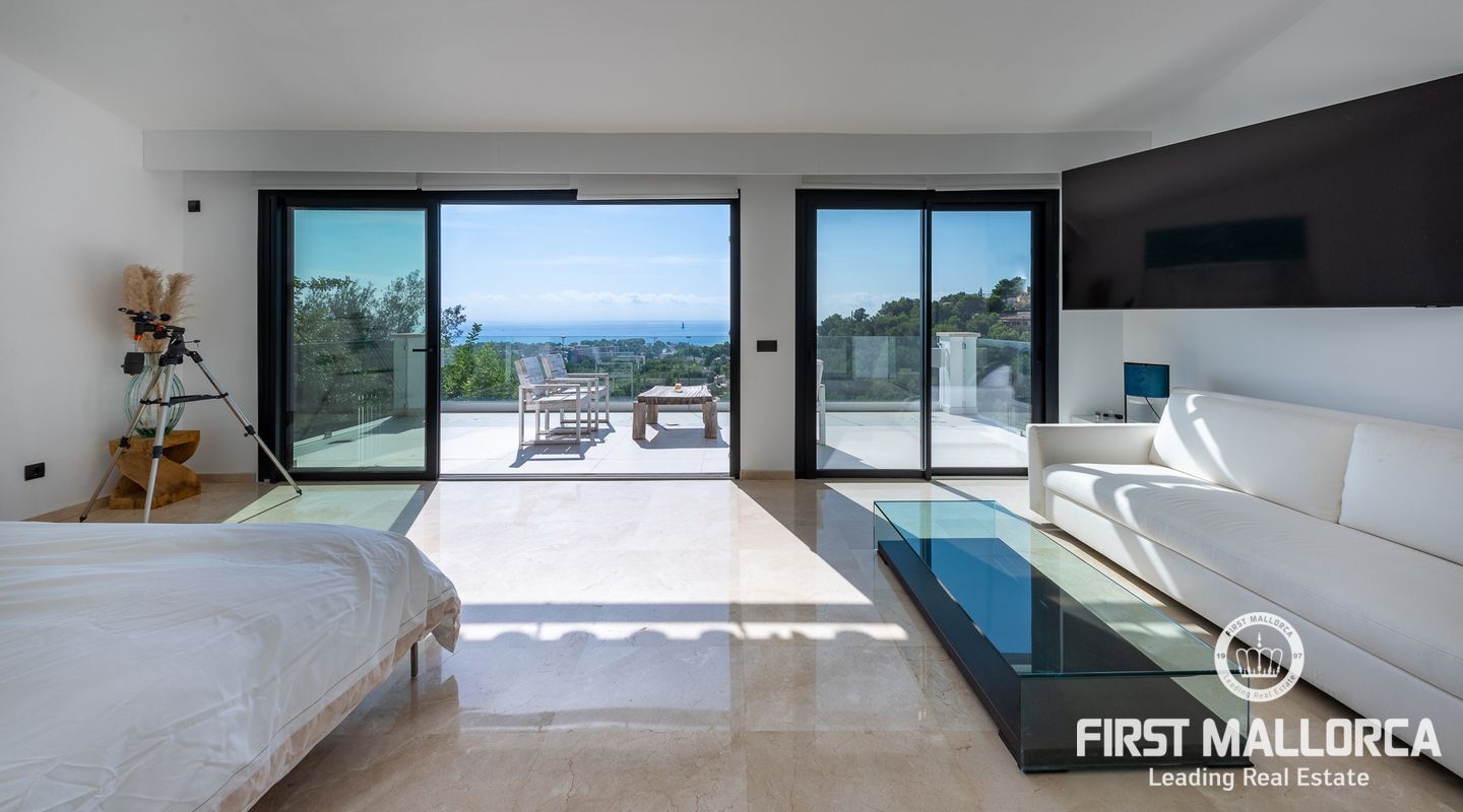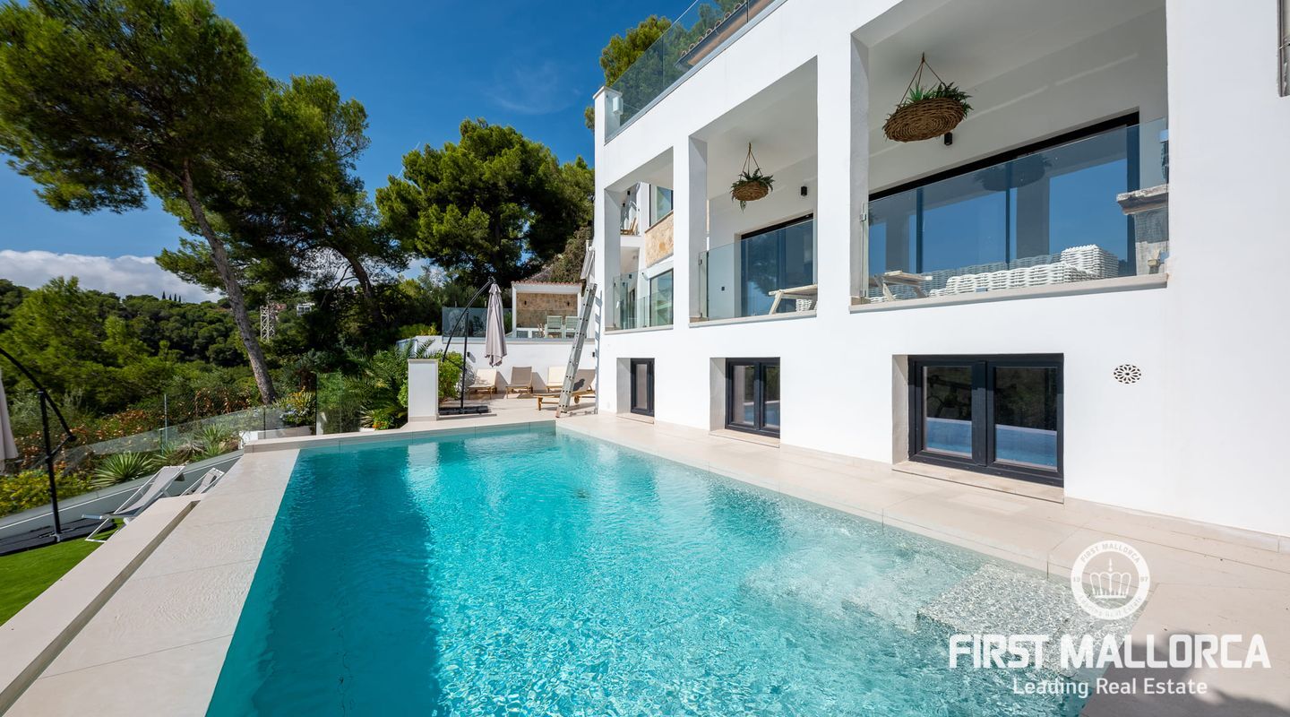 This wonderful and completely renovated villa presents itself technically as well as visually in perfect condition. You will live here comfortably and carefree, whether you want to use the property as a holiday residence or as your first home. You can comfortably take your lift to the different floors and enjoy one of the most beautiful views of Mallorca over the Mediterranean Sea and the Bay of Palma, both from inside and outside and on every level. This view is framed by a lot of green nature and this also makes this sought-after location very unique. Spend wonderful moments in the very spacious, well-equipped and private outdoor areas and in winter equally cosy evenings by the fireplace. Last but not least, the official holiday rental licence makes this property an all-round good investment.