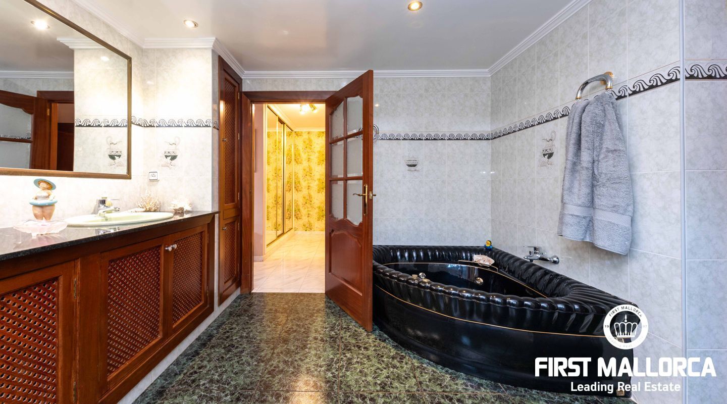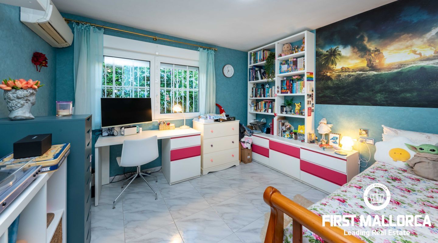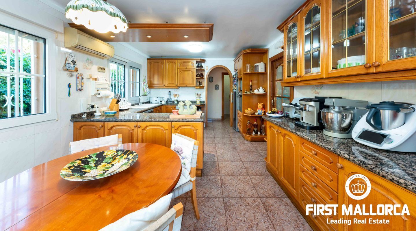 This charming single-level villa, located near the Marina in Nova Santa Ponsa, offers a perfect balance of comfort, space, and potential for renovation. The home features 4 bedrooms and 3 bathrooms, with two of the bathrooms being en-suite. The layout includes a large, airy living room and a generously sized kitchen, which could be easily converted into an open-plan design to suit modern tastes.