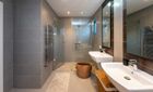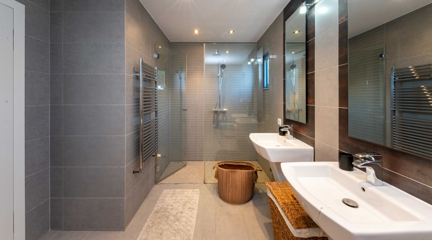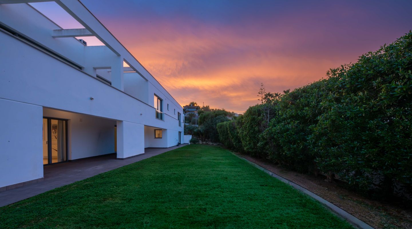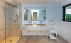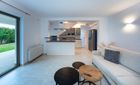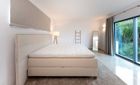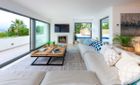 On the lower level, the guest apartment offers its own living area with open kitchen, two bedrooms and two bathrooms en suite – ideal for visitors or extended family stays. Large windows throughout the villa ensure light-flooded interiors and a strong connection to the outdoor spaces.