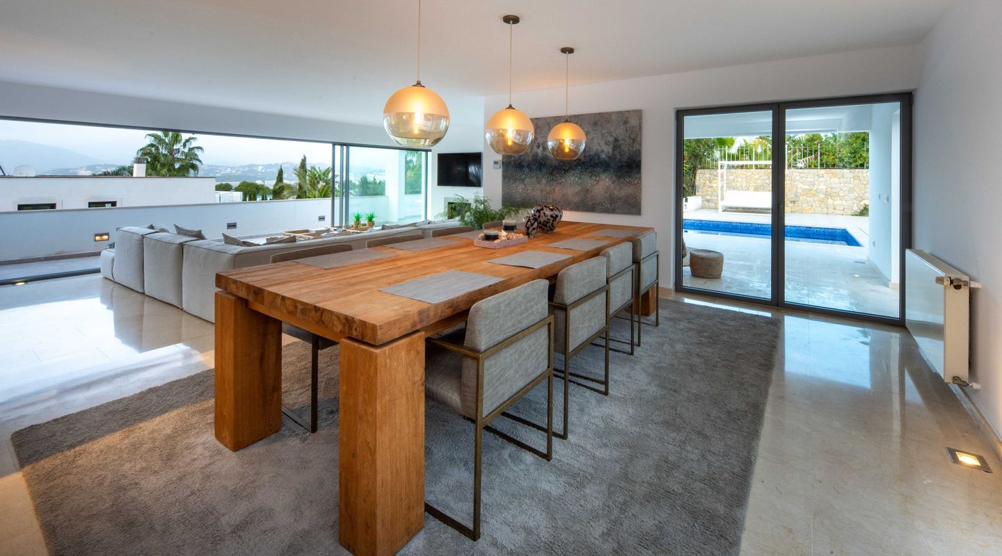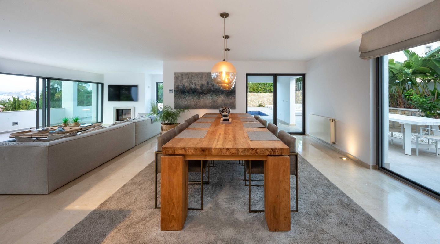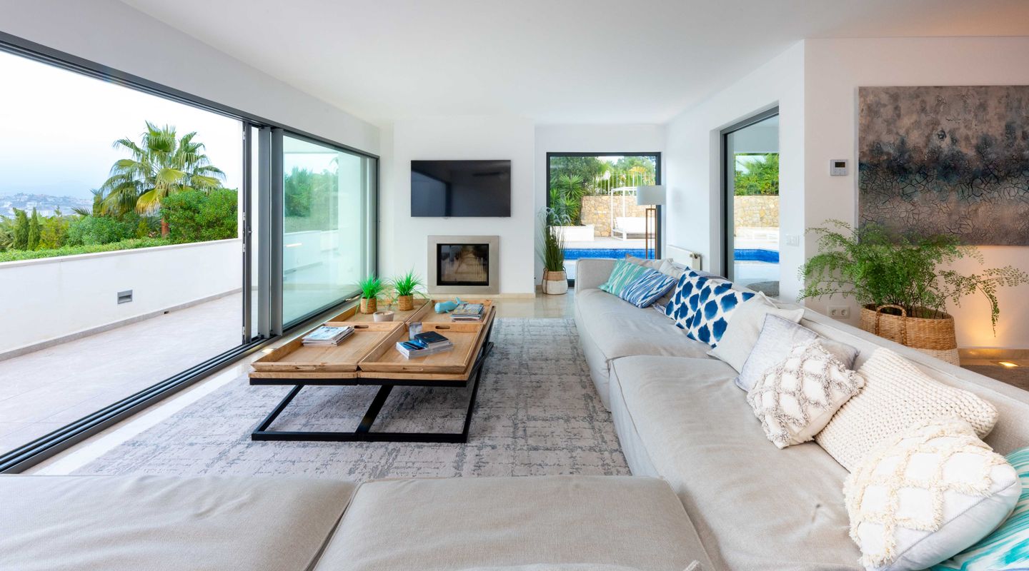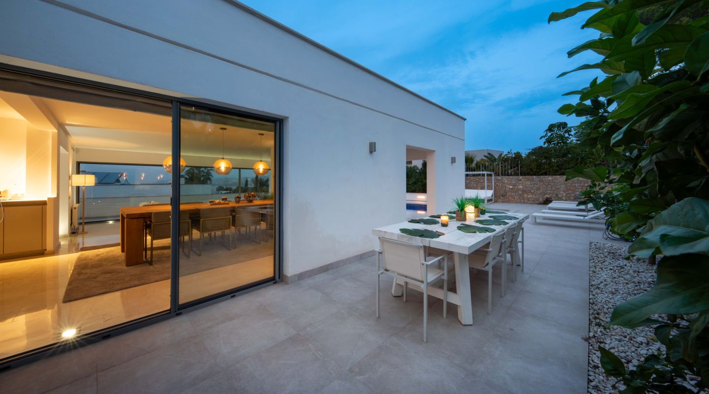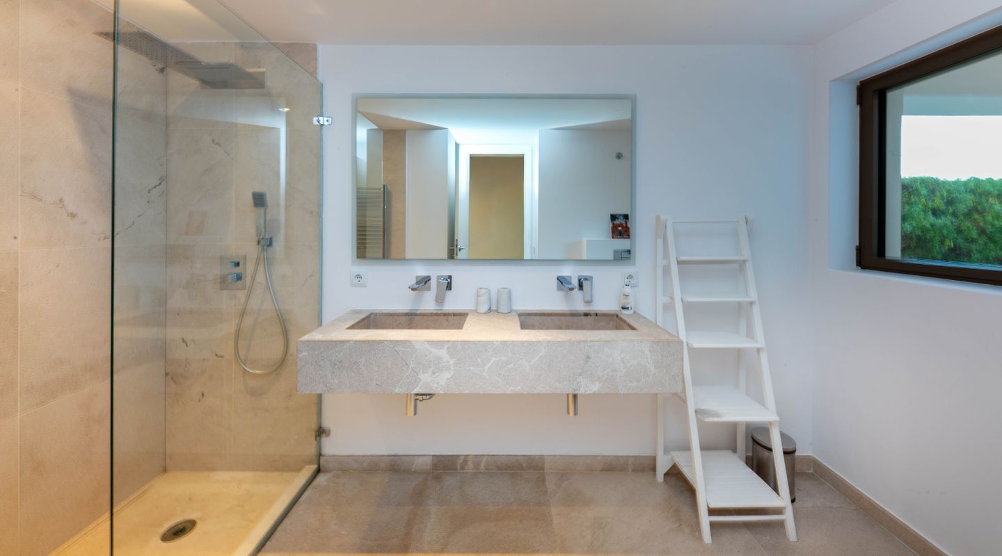 The villa extends over two well-designed levels and features five spacious double bedrooms and five bathrooms, including a separate and generously sized guest apartment that provides privacy and independence for family and friends.