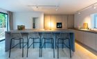 The upper living level forms the heart of the home: a bright and spacious living-dining area with fireplace flows seamlessly onto the pool terrace, creating an inviting setting for everyday living and entertaining. The high-quality open kitchen with cooking island and bar is perfectly suited for both relaxed family life and sociable evenings.