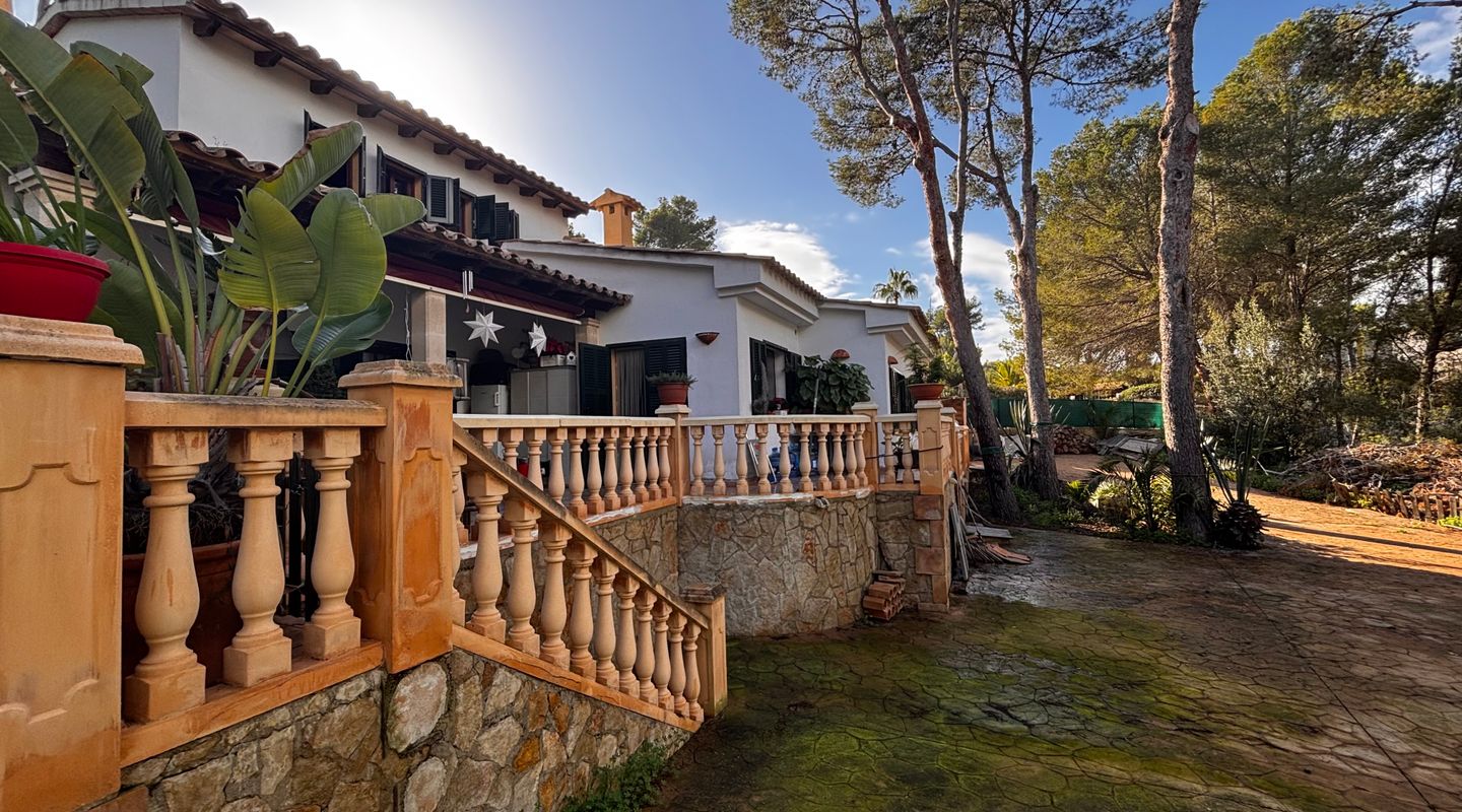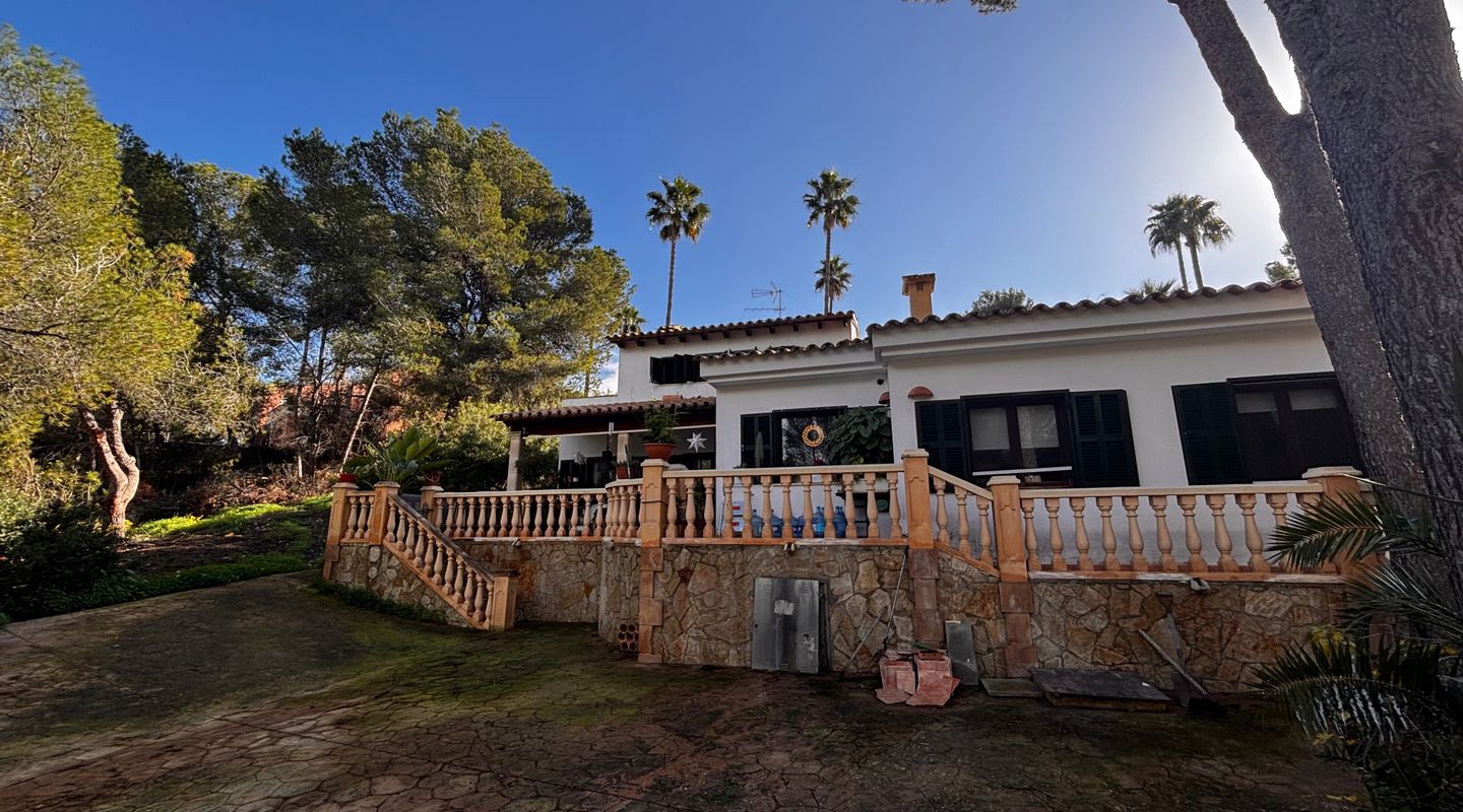Detached house for sale in Santa Ponça, set on a generous 1,553 m² plot offering privacy and plenty of potential. The property has 160 m² built area (150 m² usable), distributed over three bedrooms and two bathrooms. It features a terrace, garden, storage room and a private garage space included in the price.