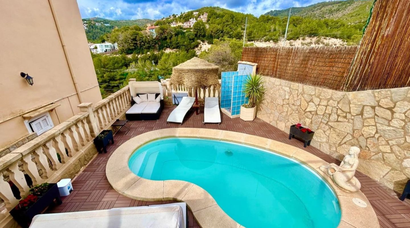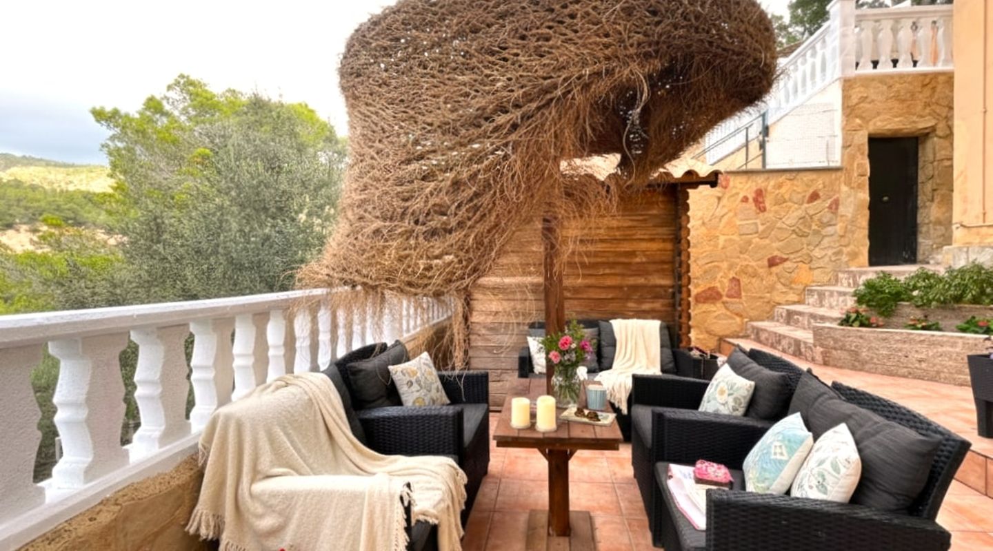 Surrounded by nature, the villa offers panoramic mountain views, while its cascading terraces envelop an exquisite garden with a small pond and artificial waterfall, creating a setting of absolute tranquility and beauty.