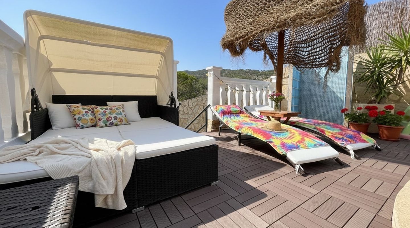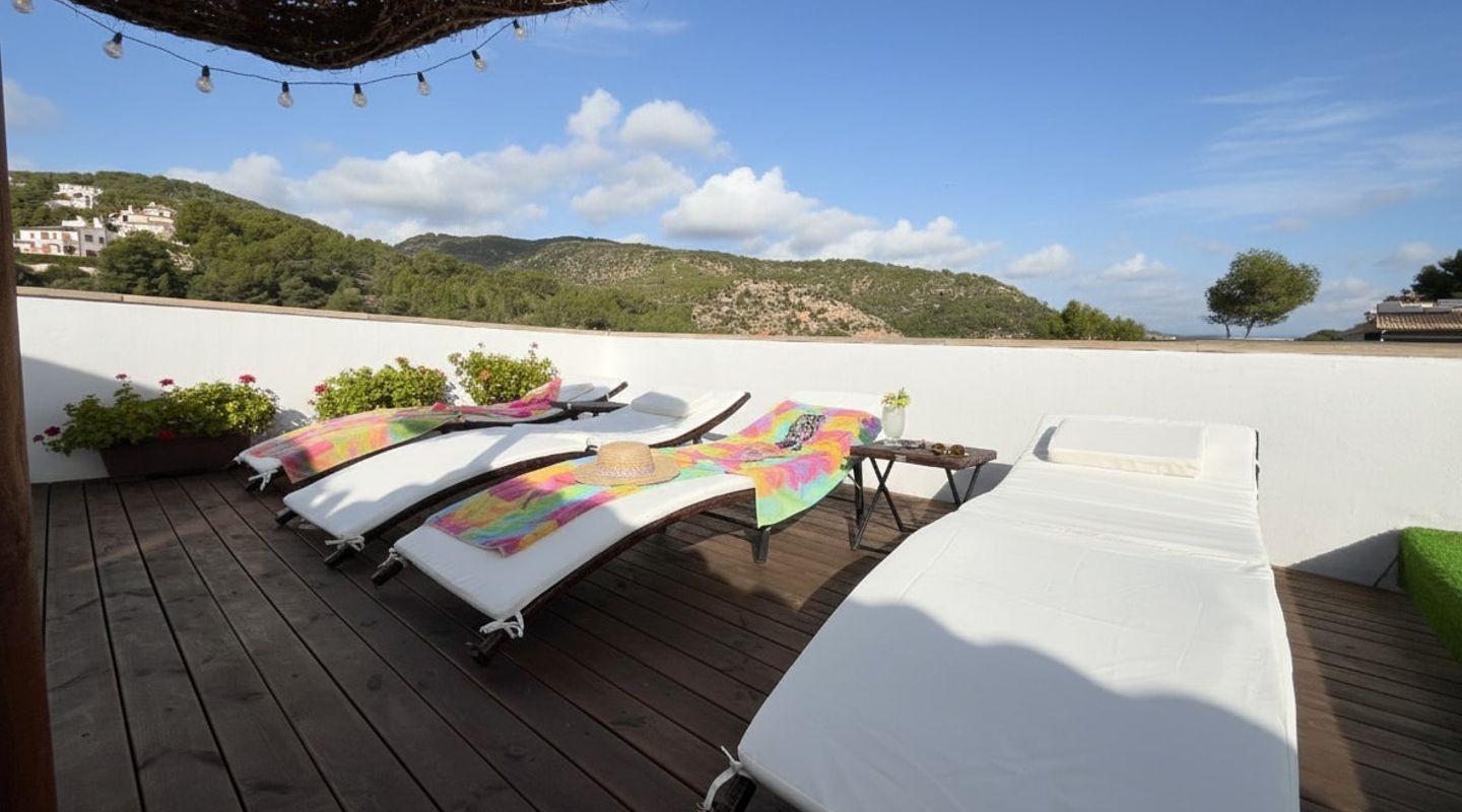 Discover this exclusive villa with stunning views of the sea and Portals Nous, visible from its elegant rooftop chill out, a space designed to enjoy the authentic Mediterranean lifestyle.