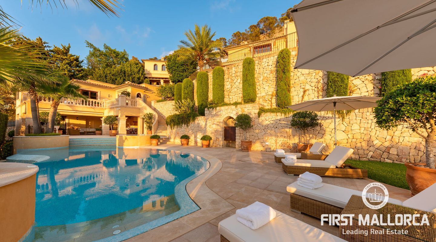 This exclusive Mallorcan villa is set on large level land, located in a prime position within walking distance to the amenities of Puerto de Andratx and enjoys fantastic harbour views and breath-taking sunsets.