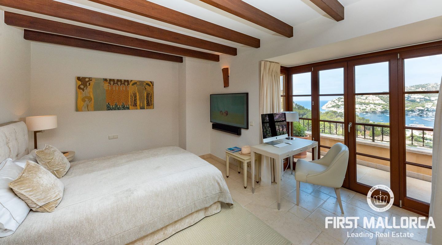Features include appliances from Bang & Olufsen, a state-of-the-art alarm system, Crestron touch panels throughout the house as well as a garage for 2 cars with electric charging ports. The exclusive harbout of Port Andratx with its charming sea side promedade with high end boutiques, caffees and restaurant are just a short walk away and you don´t need a car to enjoy this property.