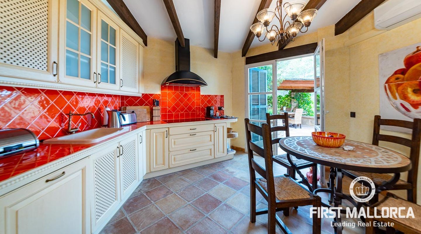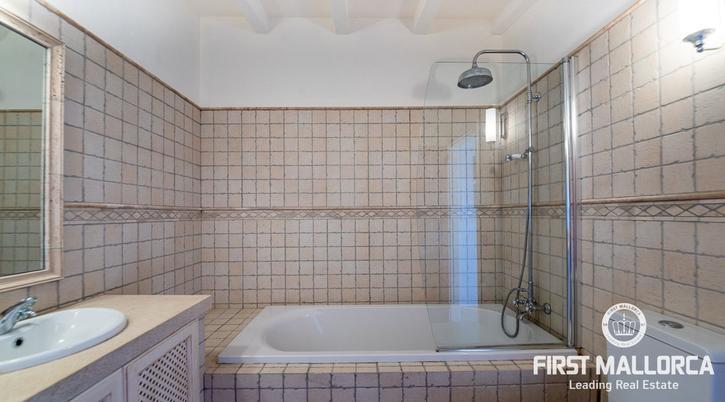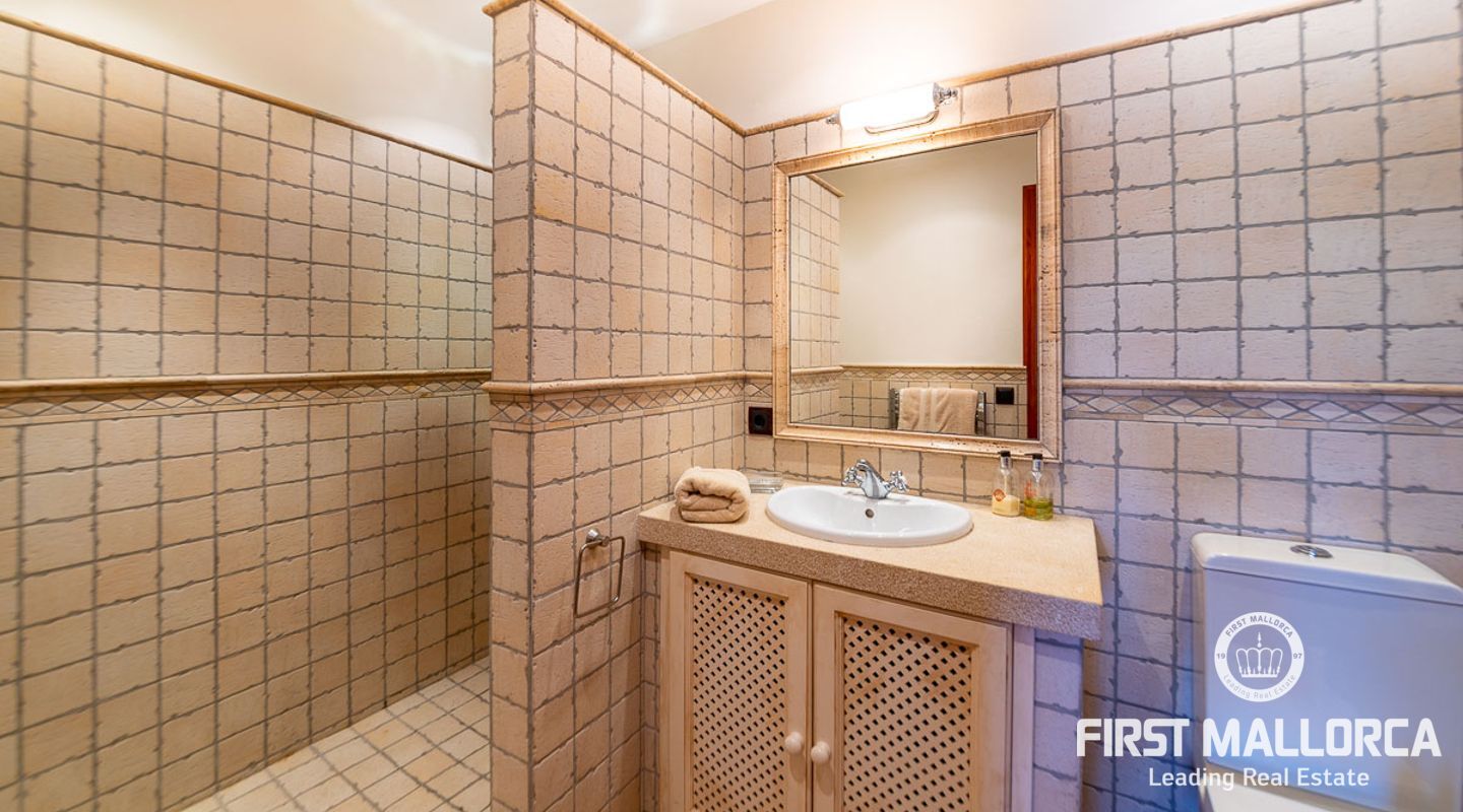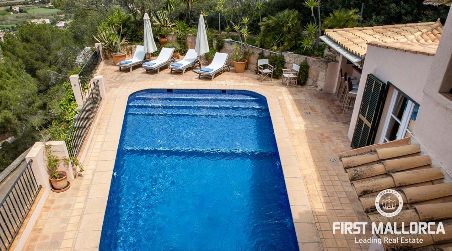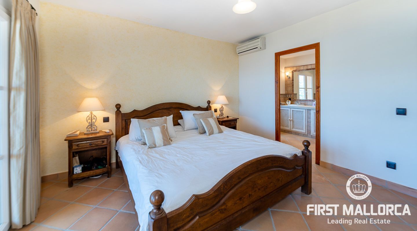 Puerto de Andratx: Spacious sea view house within walking distance to all the amenities that Puerto de Andratx has to offer! Charming, finca style house with 5 bedrooms with ensuite bathrooms in total. 2 bedrooms on the ground floor, 2 bedrooms on the first floor and 1 bedroom with ensuite bathroom with a seperate entrance. Private barbeque with dining area, bar area, Additional features include: Large swimming pool, gas central heating, aircon hot/cold; garage, covered porch area, parking in total for up to 5 cars.
