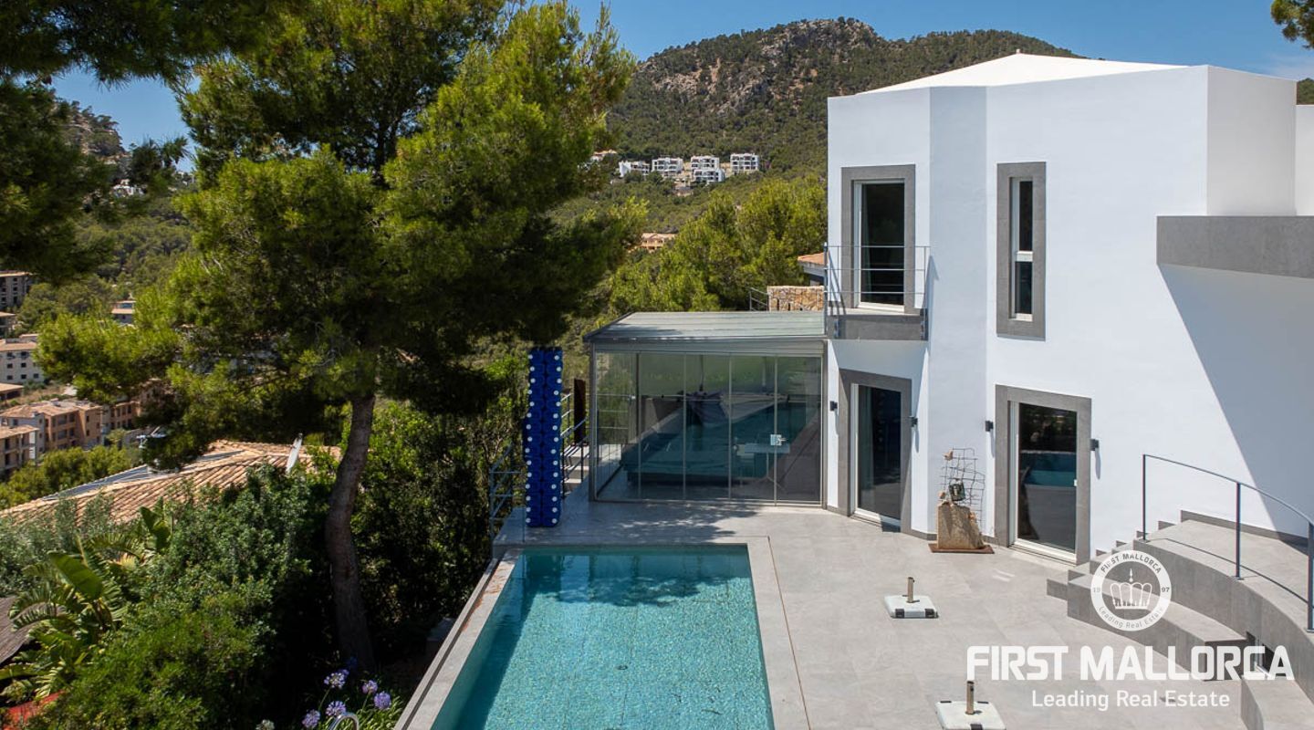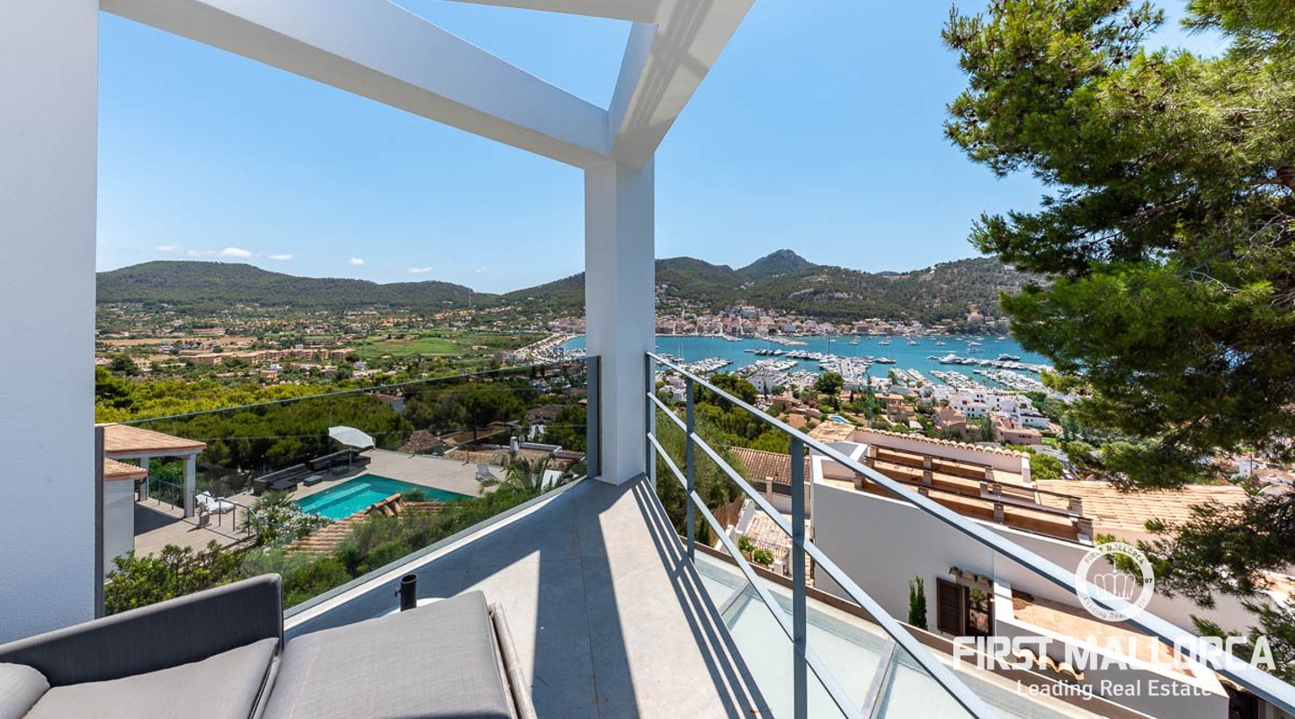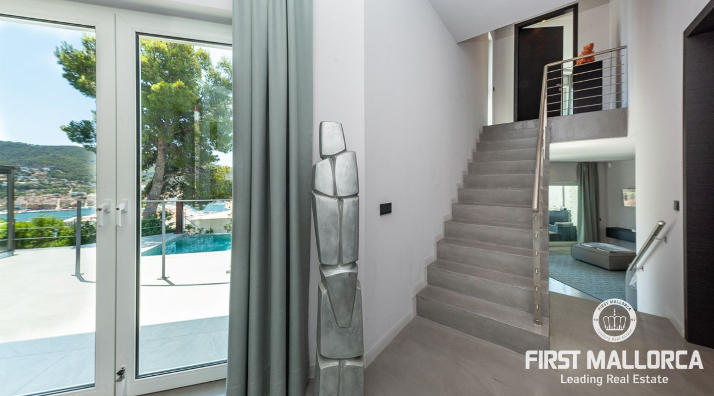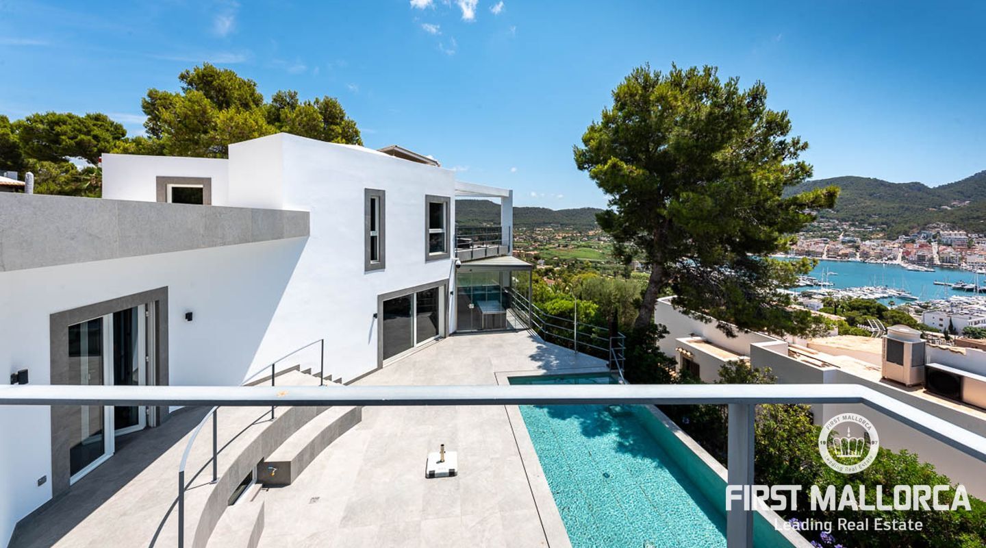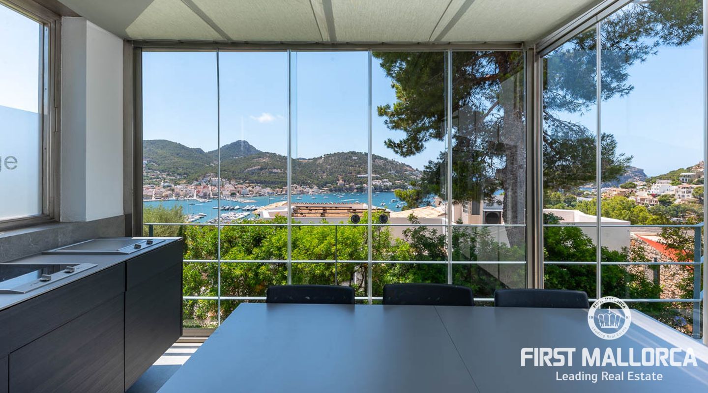 This renovated 4 bedroom villa overlooking the Port of Andratx, located in the exclusive southwest of Majorca. A wide array of restaurants, small sandy beaches, shops and supermarkets for daily needs are located within walking distance. The villa offers a modern, open kitchen dining area, a spacious living room with a fireplace, a total of four bedrooms with respective bathrooms en-suite. In addition to the numerous terraces, two wintergardens and including a rooftop terrace with a beautiful, open seaview. Additional features include underfloor heating, air-conditioning h/c, fireplace, sound system, alarm system, gym, sauna and a pool. There is one exterior parking space. If you wish to book your personal showing or receive more information, please dont hesitate to get in touch with FIRST MALLORCA.