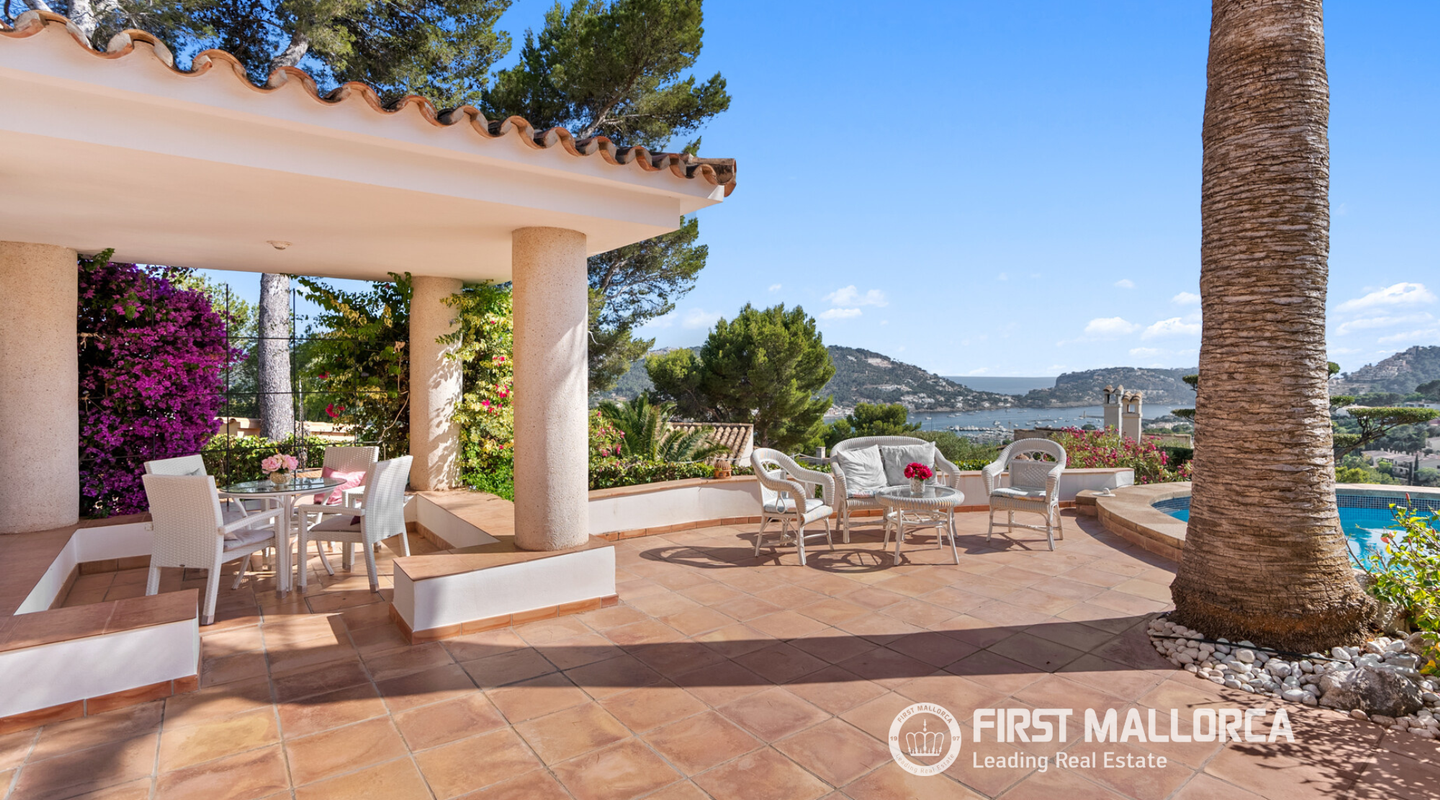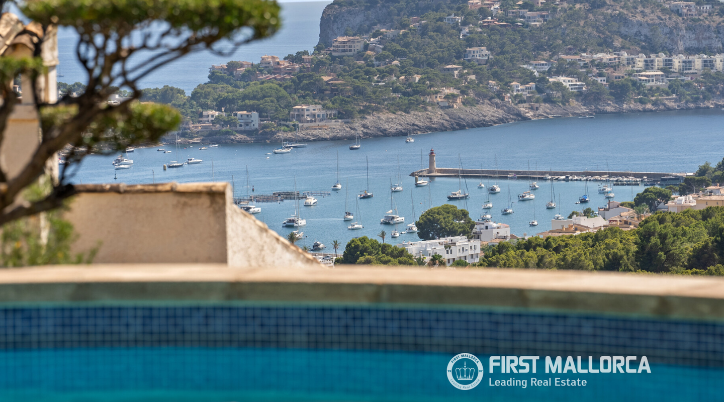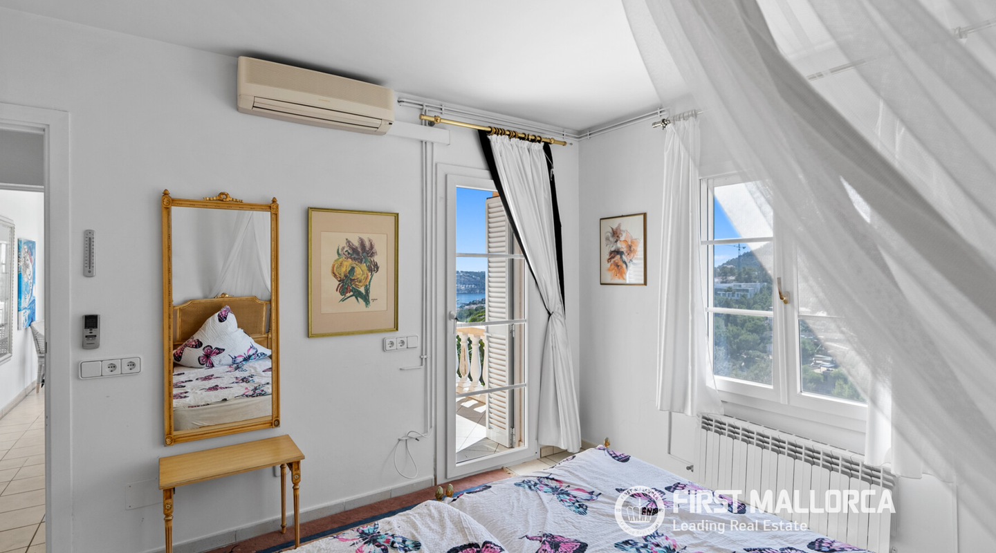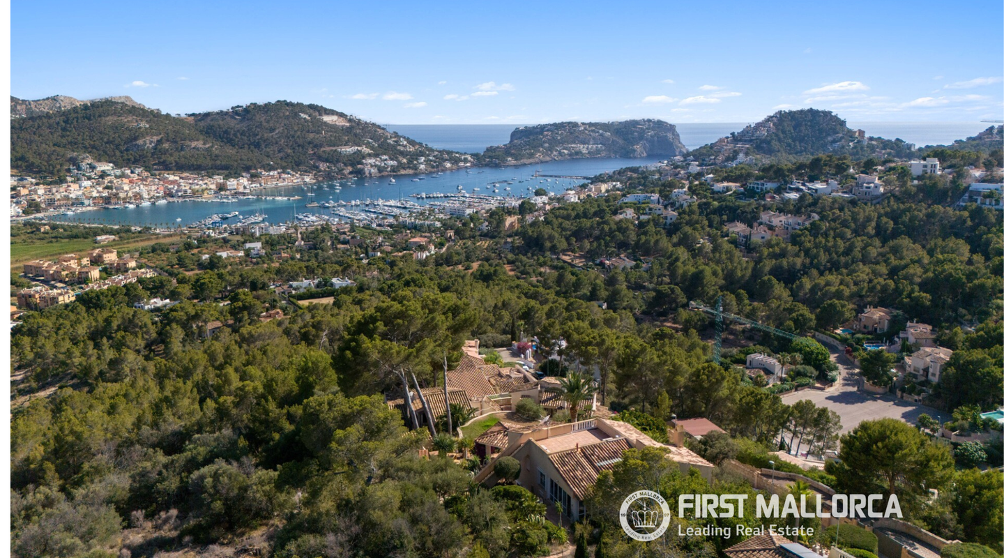 Perched in a privileged position above Can Borras, this south-facing property offers breathtaking panoramic views over the sea and the picturesque surroundings of Port Andratx. Set on a generous plot, the home enjoys all-day sun and a peaceful, elevated location.