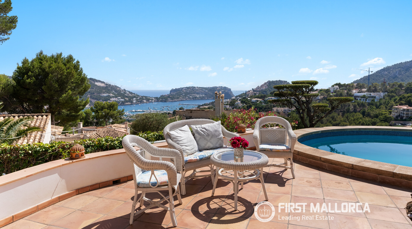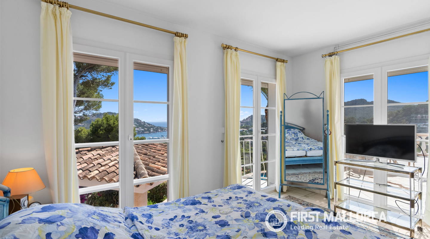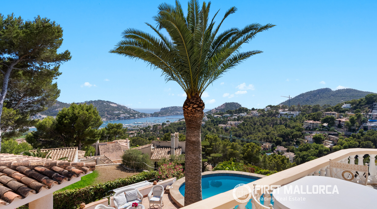 Perched in a privileged position above Can Borras, this south-facing property offers breathtaking panoramic views over the sea and the picturesque surroundings of Port Andratx. Set on a generous plot, the home enjoys all-day sun and a peaceful, elevated location.
