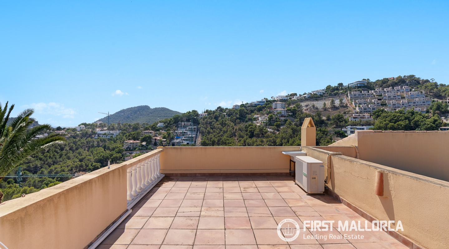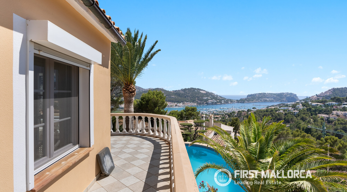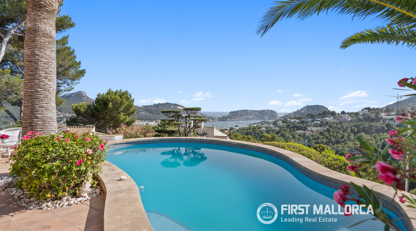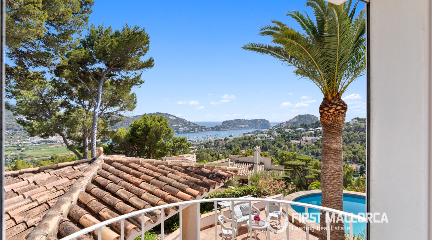 Perched in a privileged position above Can Borras, this south-facing property offers breathtaking panoramic views over the sea and the picturesque surroundings of Port Andratx. Set on a generous plot, the home enjoys all-day sun and a peaceful, elevated location.