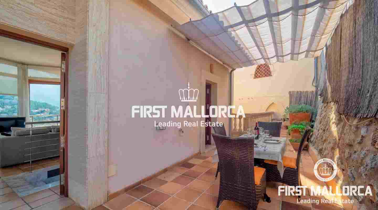 This villa in Puerto de Sóller has 3 floors and is located above the harbour promenade. On the ground floor is a spacious garage and it is also possible to park 2 more cars in front of the garage. The first level has 3 bedrooms and 2 bathrooms, one of them en suite. The main bedroom also has a large covered terrace. On the upper floor, there is a living-dining room, a kitchen, a guest toilet and a terrace enjoying magnificent views over the harbour of Puerto de Sóller.