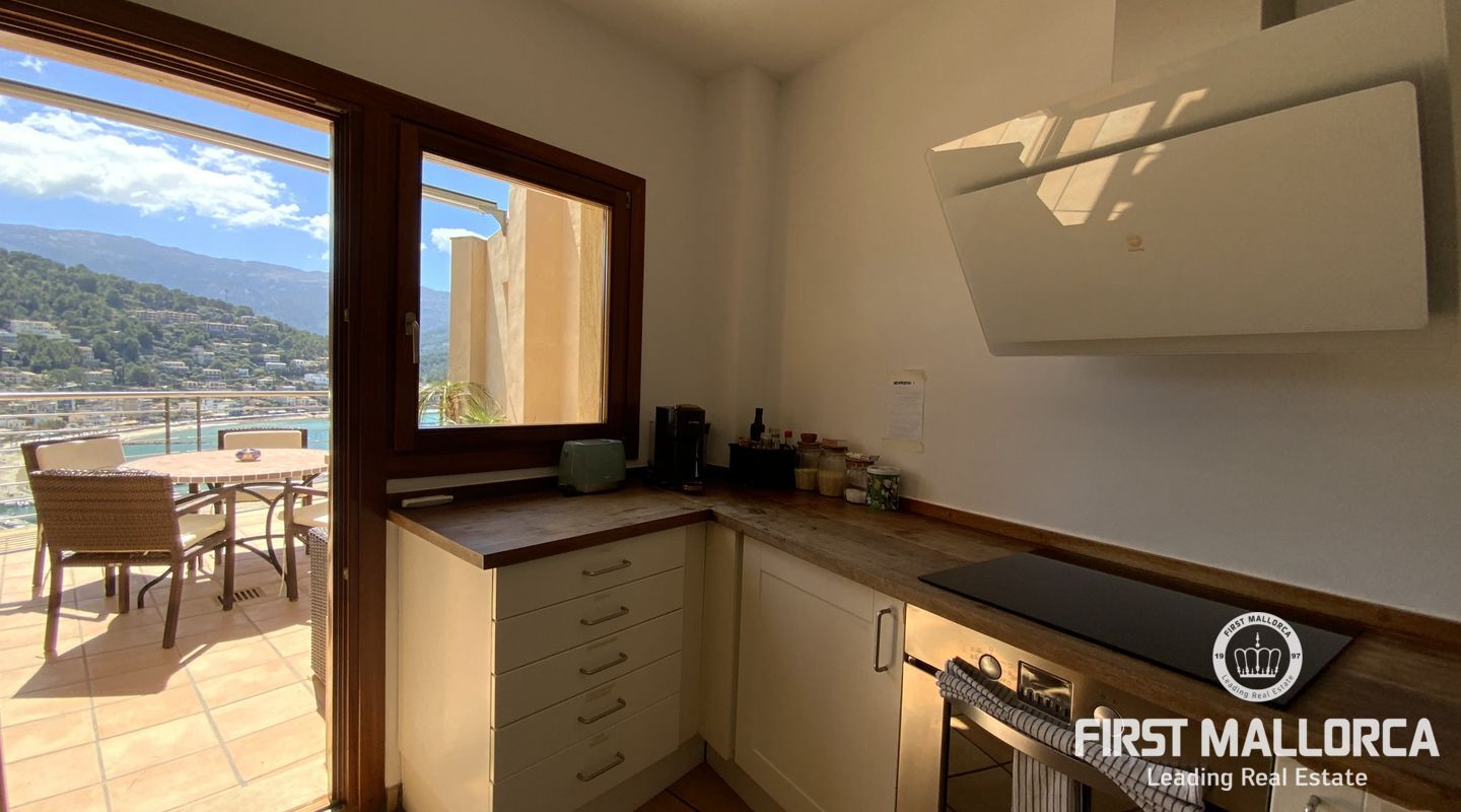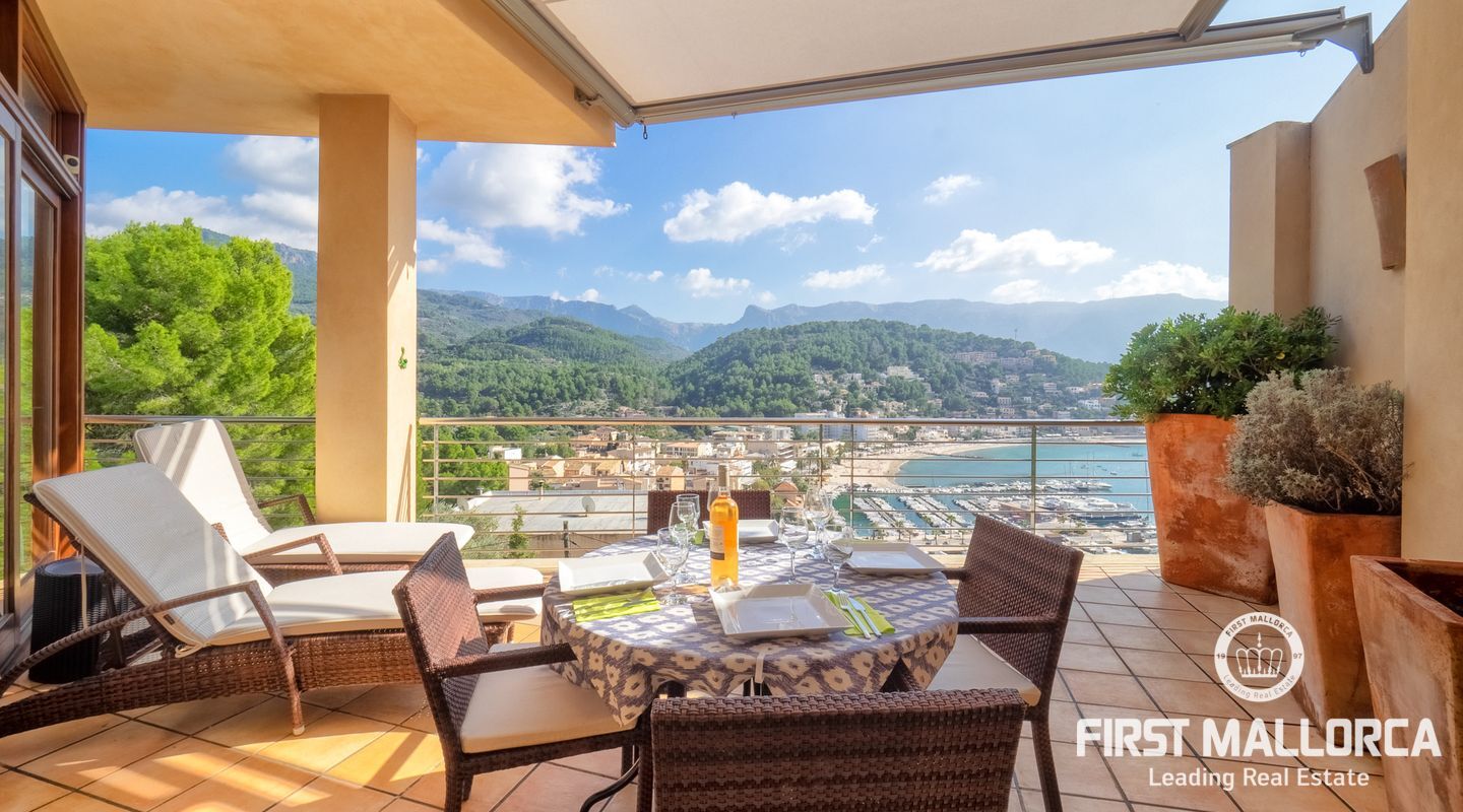 This villa in Puerto de Sóller has 3 floors and is located above the harbour promenade. On the ground floor is a spacious garage and it is also possible to park 2 more cars in front of the garage. The first level has 3 bedrooms and 2 bathrooms, one of them en suite. The main bedroom also has a large covered terrace. On the upper floor, there is a living-dining room, a kitchen, a guest toilet and a terrace enjoying magnificent views over the harbour of Puerto de Sóller.