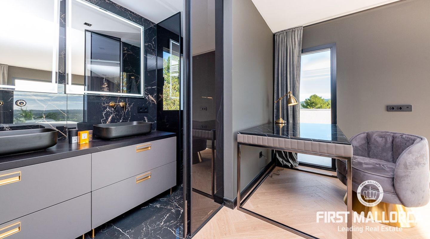 This newly completed luxury villa is situated on a south-facing plateau plot, with unobstructed views of the bay of Santa Ponsa and the Mediterranean Sea. Lovingly staged and built using the best materials and the latest construction techniques, a masterpiece of charm has been created. The property offers 4 bedroom suites, as well as the possibility of a fifth bedroom. In addition to natural stone and real wood, high-quality bathroom fittings and wall coverings have been installed throughout the property. This exceptionally beautiful and harmonious villa offers pure luxury and well-being in every detail. Of course, double ceiling heights, underfloor heating, air conditioning, double glazing, alarm system, garage and much more belong to the equipment of this property. The Port Adriano sales team would be delighted to show you this dream property. Please ask us at any time for a viewing appointment.