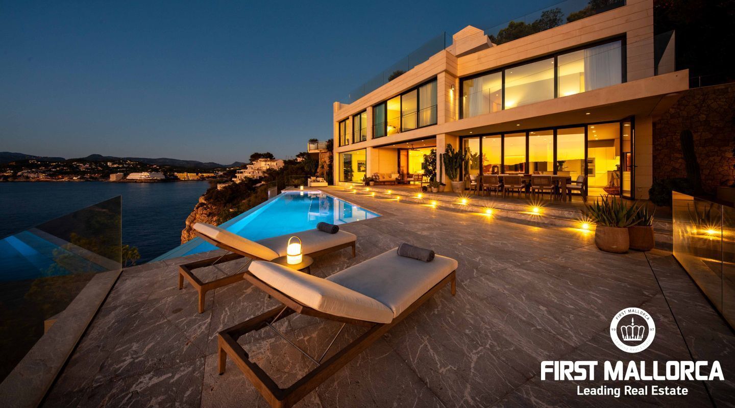 Sea front living on Mallorca's sought-after south west coast is made even more special by the unique attributes of this stunning home. Panoramic views that stretch across the Bay of Santa Ponsa, towards the impressive headlands along the south west coast and as dramatic backdrop the Galatzó Mountain.