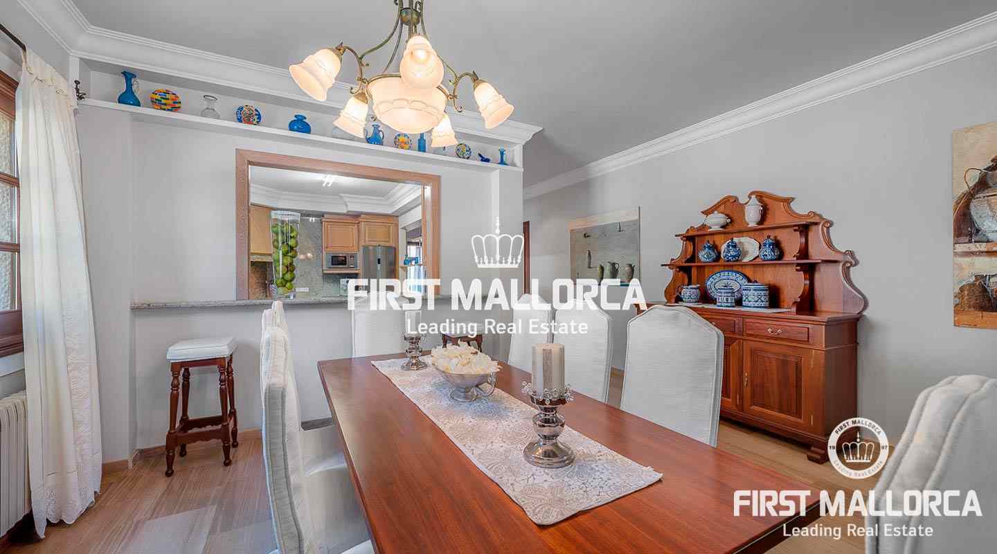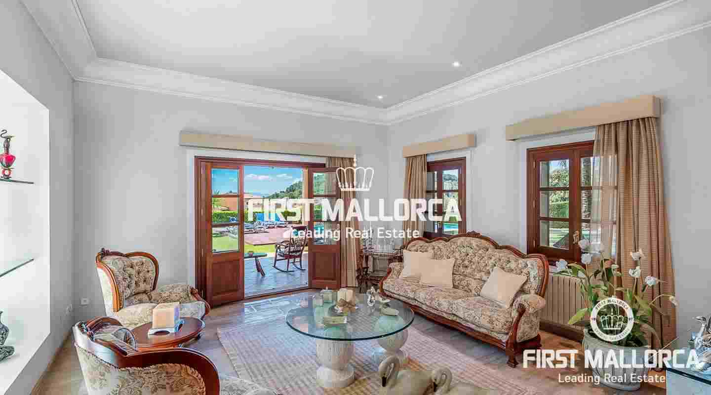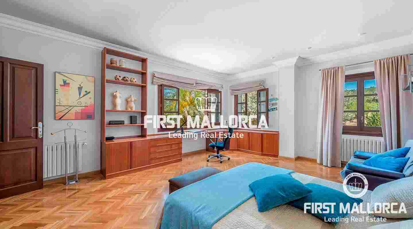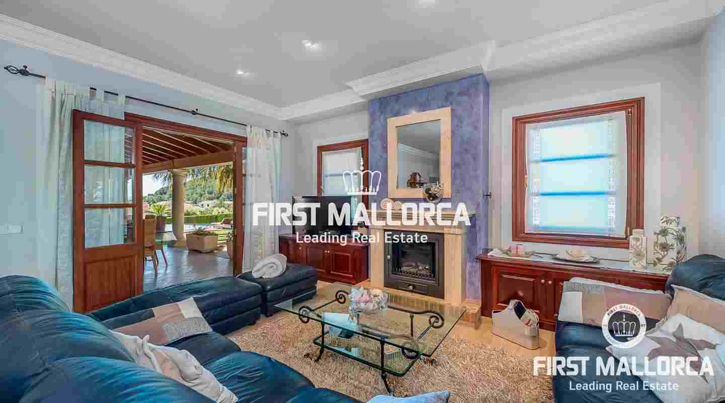 The large entrance hall leads to a spacious living room with fireplace and a large kitchen with dining area. In addition, there are 2 double bedrooms and 2 bathrooms on the same floor. A second living room, 2 spacious master suites and an additional room are on the upper floor. The property also has open and covered terraces and a salt water swimming pool.