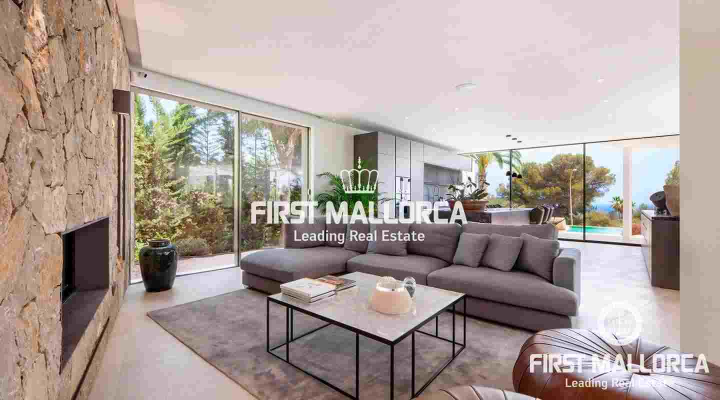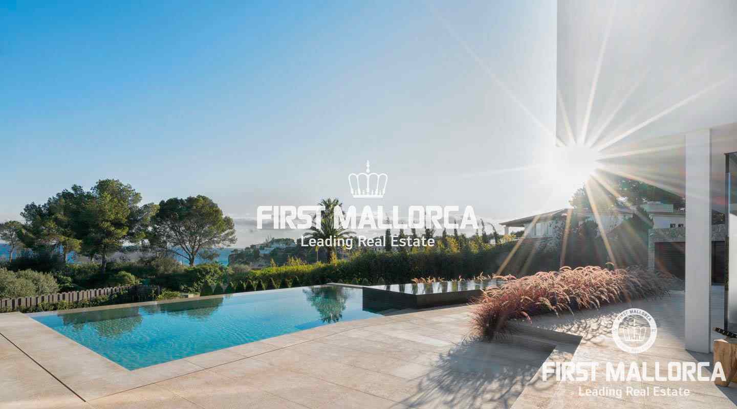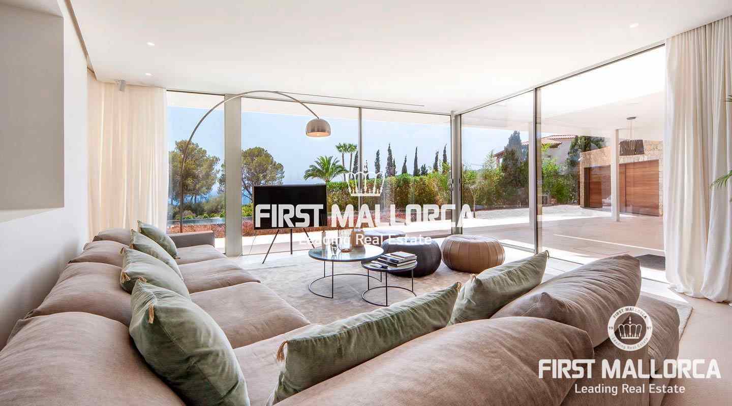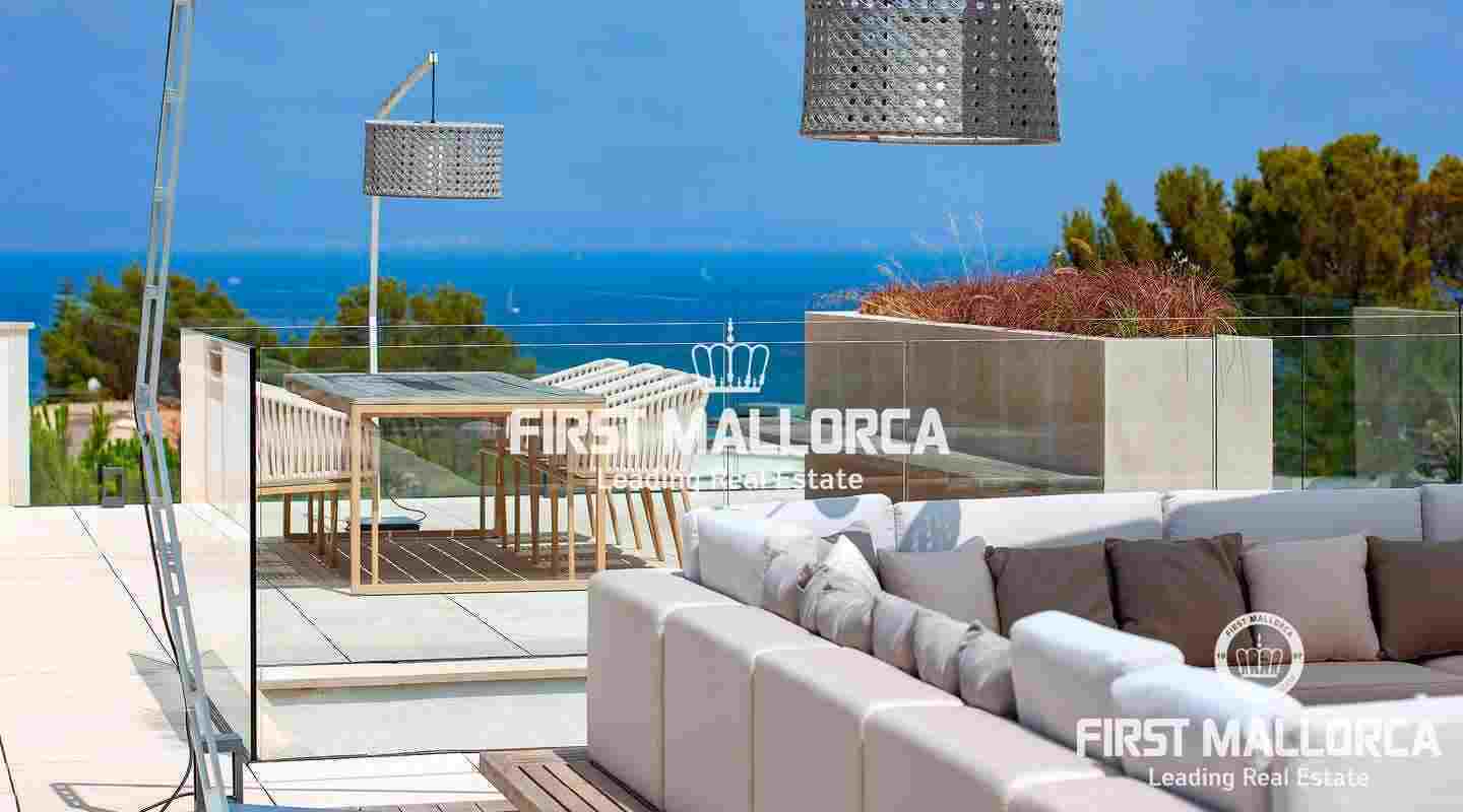 Luxury villa with sea view in the beautiful Sol de Mallorca. This modern villa is located in the southwest of the island, in Sol de Mallorca. The property offers a fantastic view over the Mediterranean Sea and is only a few minutes away from Palma, several sandy beaches and many marinas.