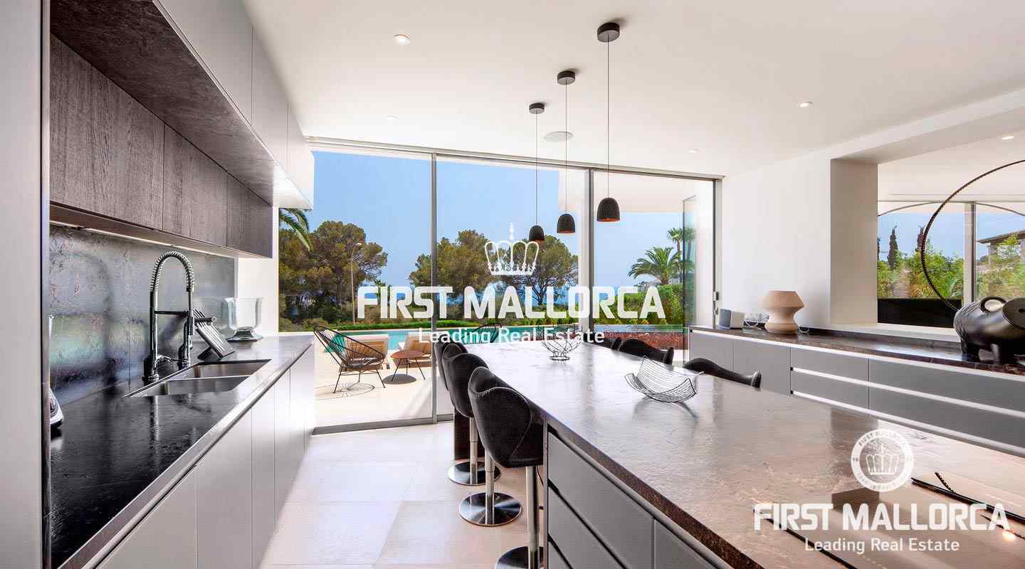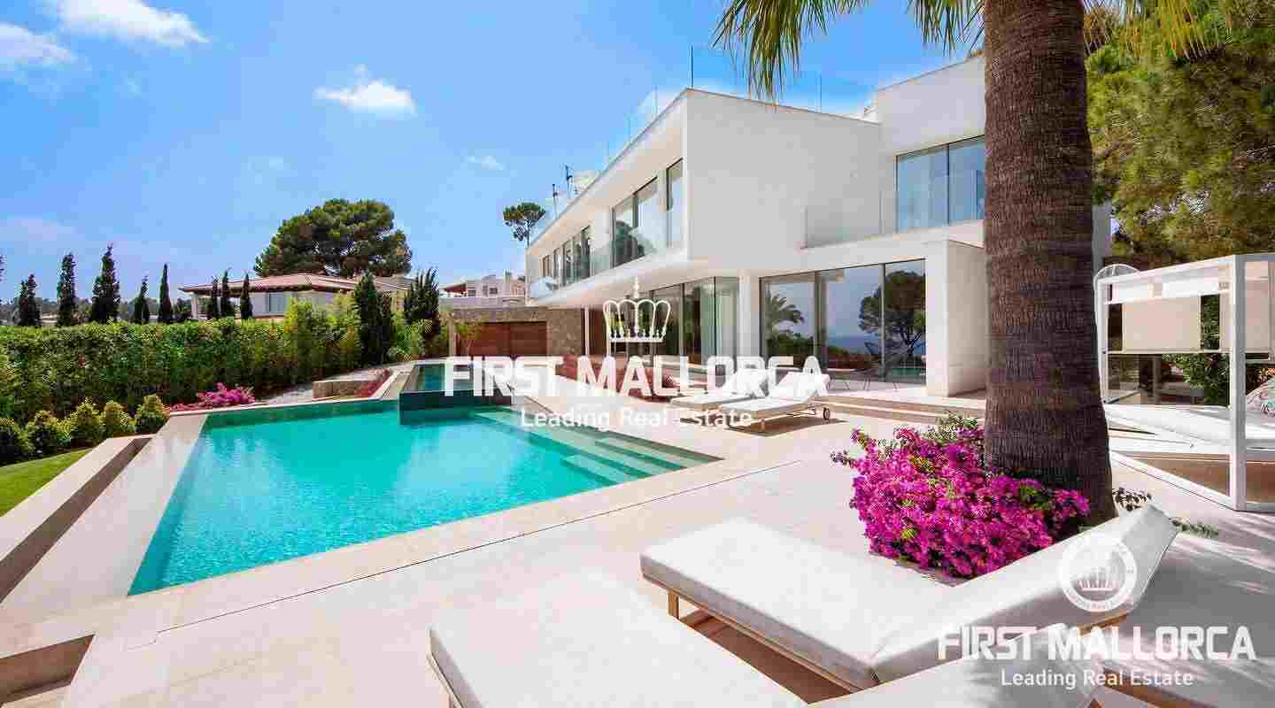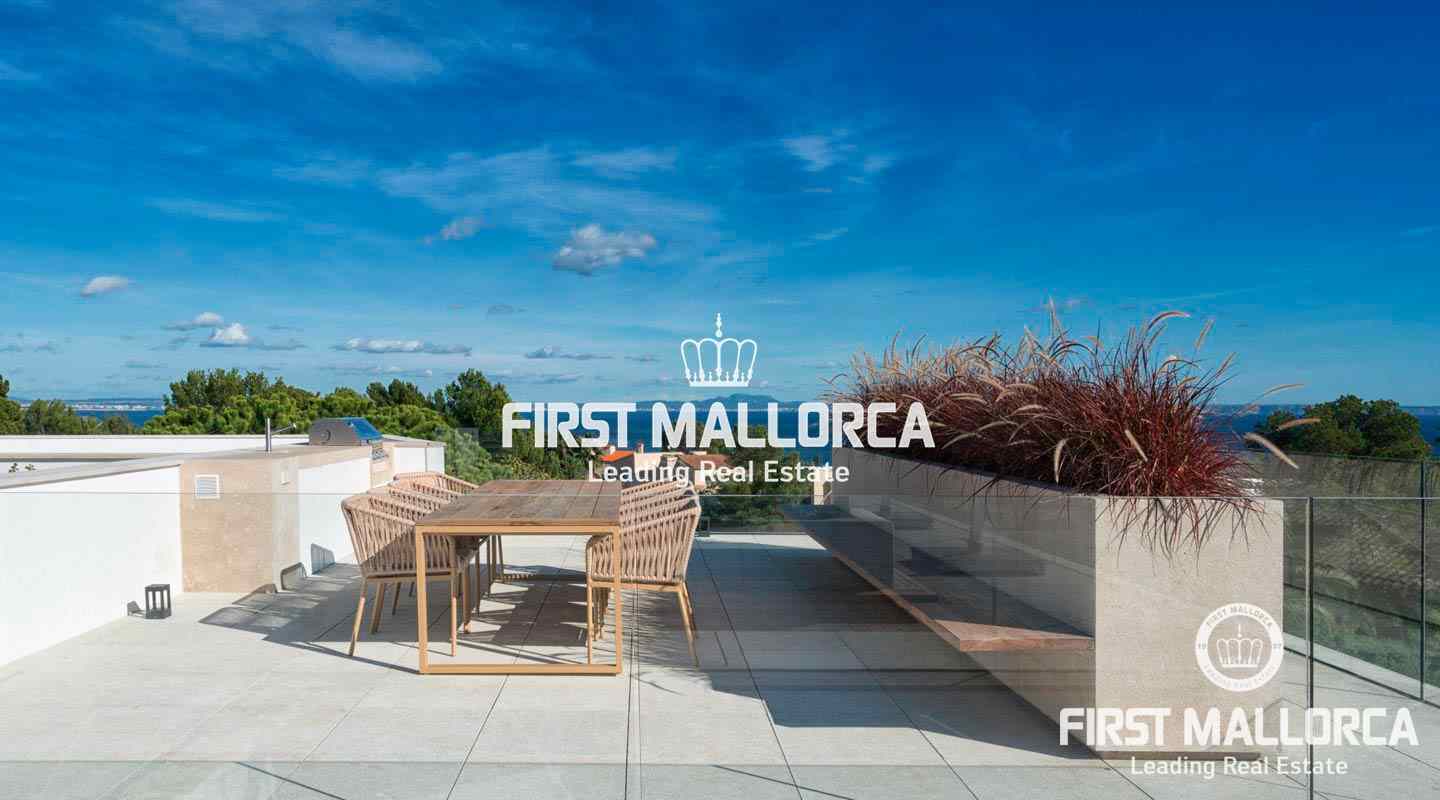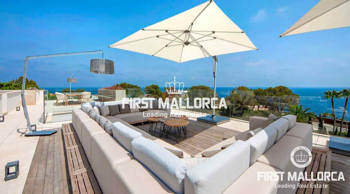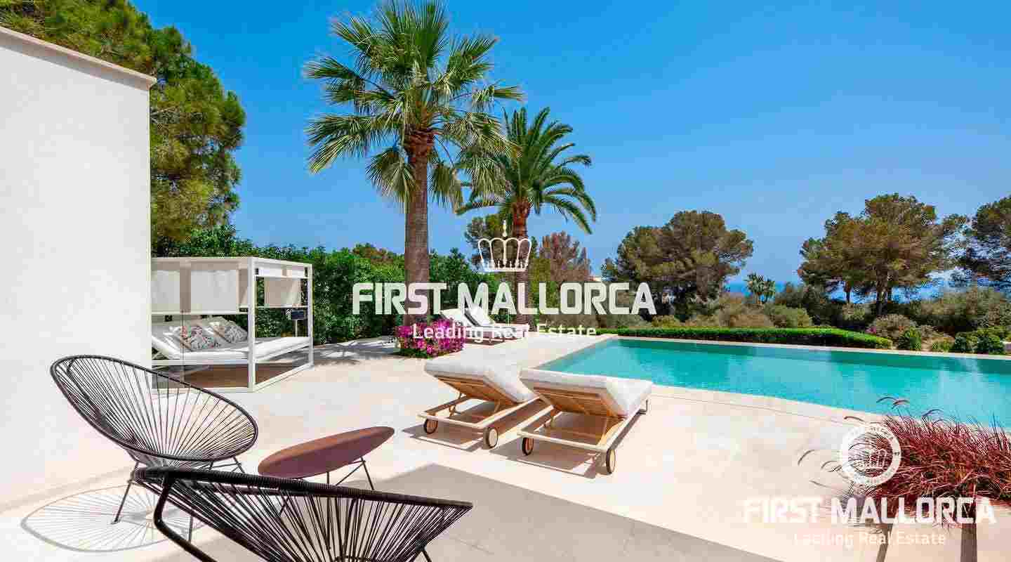 Luxury villa with sea view in the beautiful Sol de Mallorca. This modern villa is located in the southwest of the island, in Sol de Mallorca. The property offers a fantastic view over the Mediterranean Sea and is only a few minutes away from Palma, several sandy beaches and many marinas.