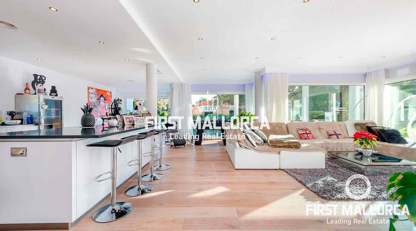 This modern villa in Sol de Mallorca enjoys a bright and open-plan living design and is perfect as a main residence or holiday home for families, since it leaves nothing to be desired.