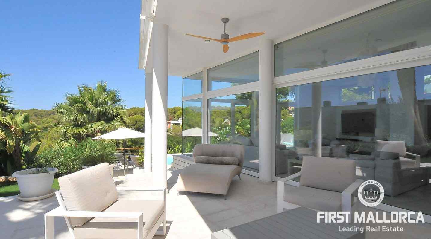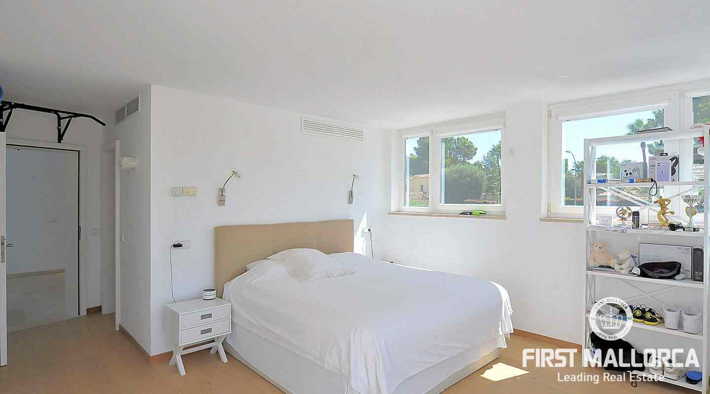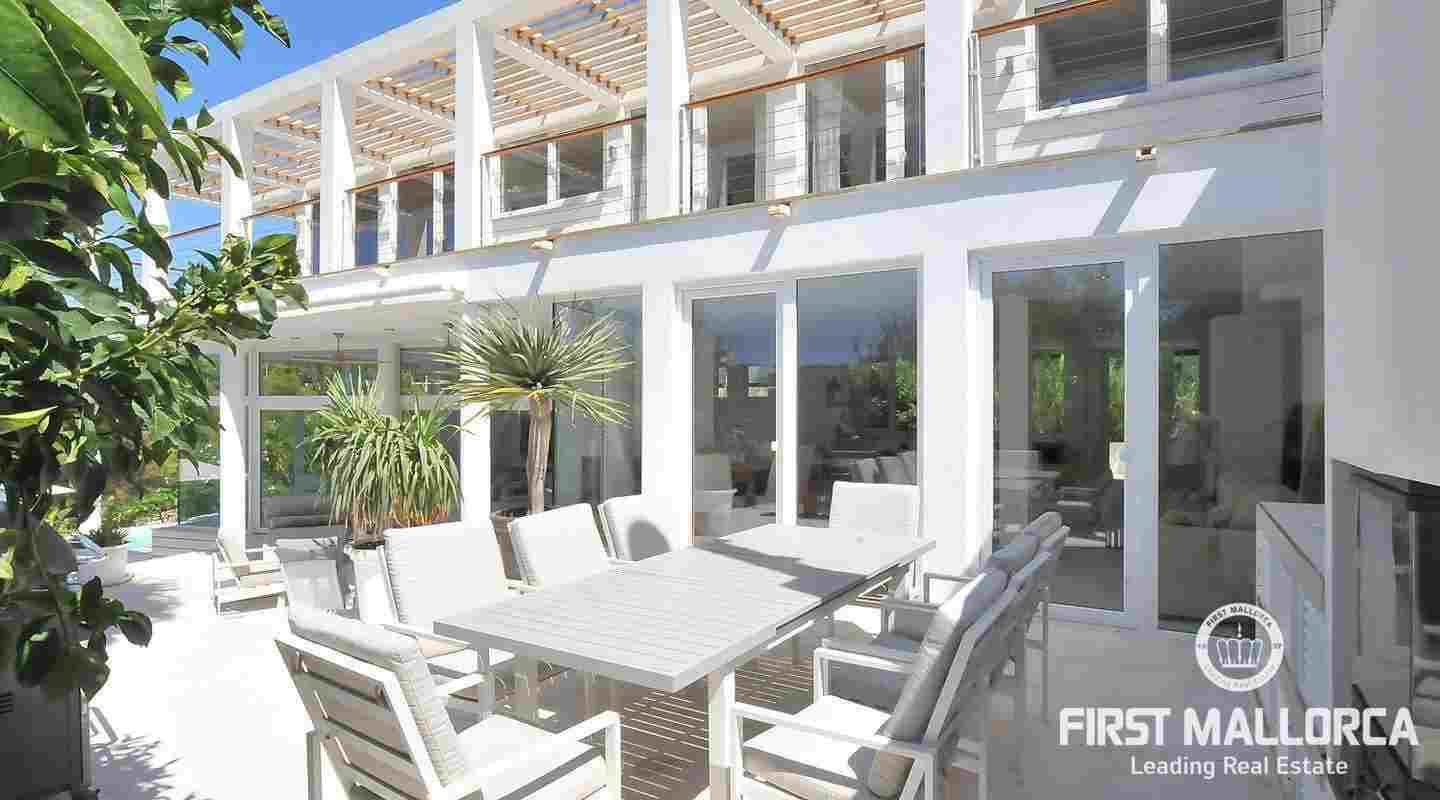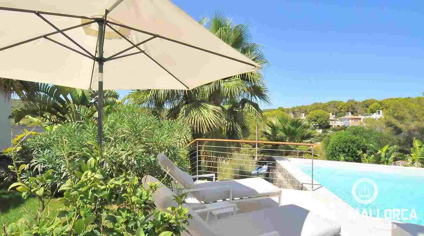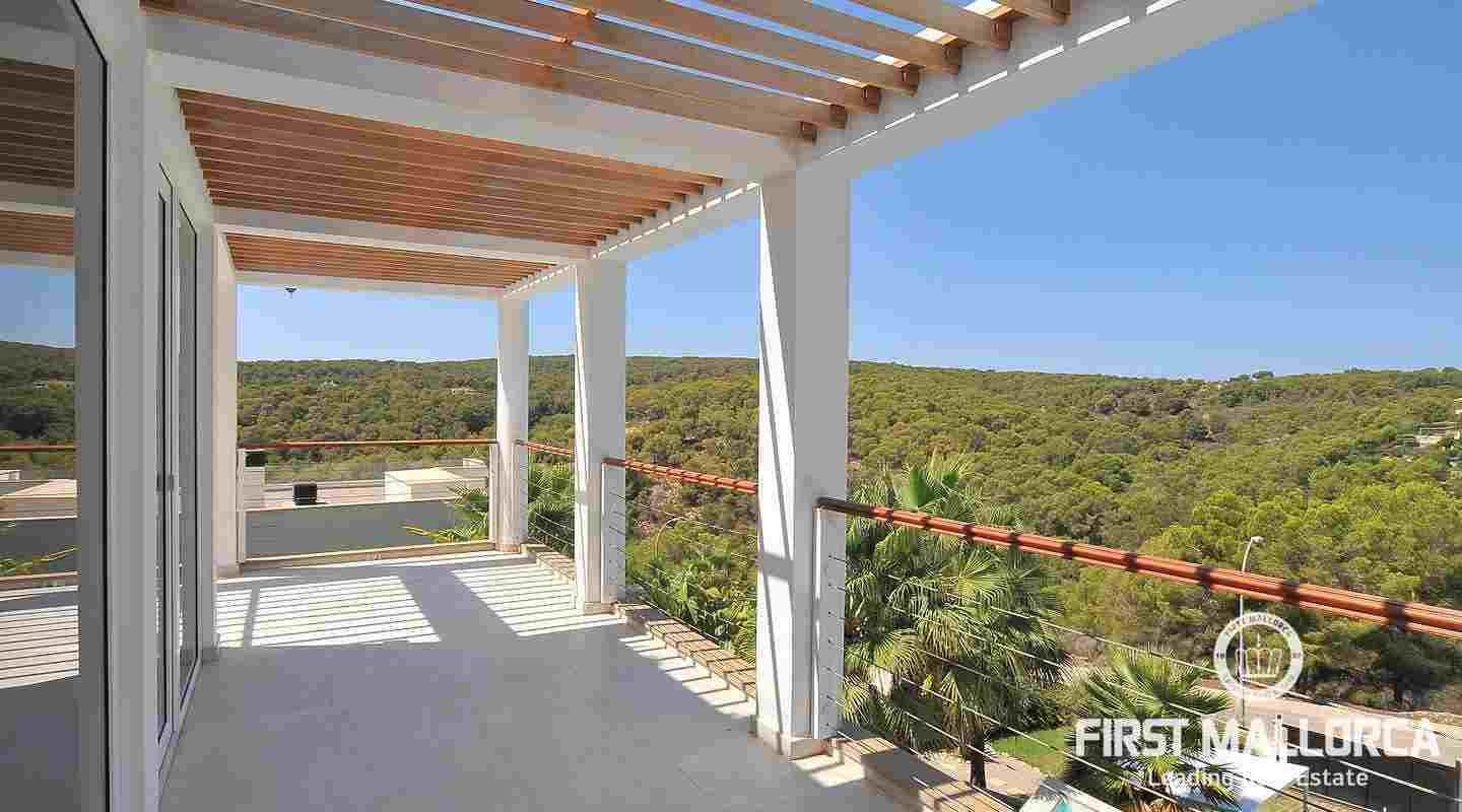 An attractive and spacious contemporary design villa in a peaceful residential area of Sol de Mallorca. The exclusive property is located only a few minutes by car from the fashionable marina of Port Adriano with its cafés, restaurants and boutiques. The 4 bedroom, 4 bathroom villa sits in a garden plot of 1,310 m2. It has a constructed area of 426 m2 including approximately 20 m2 of covered terraces. In addition there are 100 m2 of open terraces and a roof terrace of approximately 85 m2 with excellent views to the sea, the landscape and the mountains. Additional features include an open fireplace, a bar, high quality materials and a storeroom. Within a few minutes walking one finds some of the island's most spectacular beaches as well as a vast protected natural reserve, ideal for hiking.