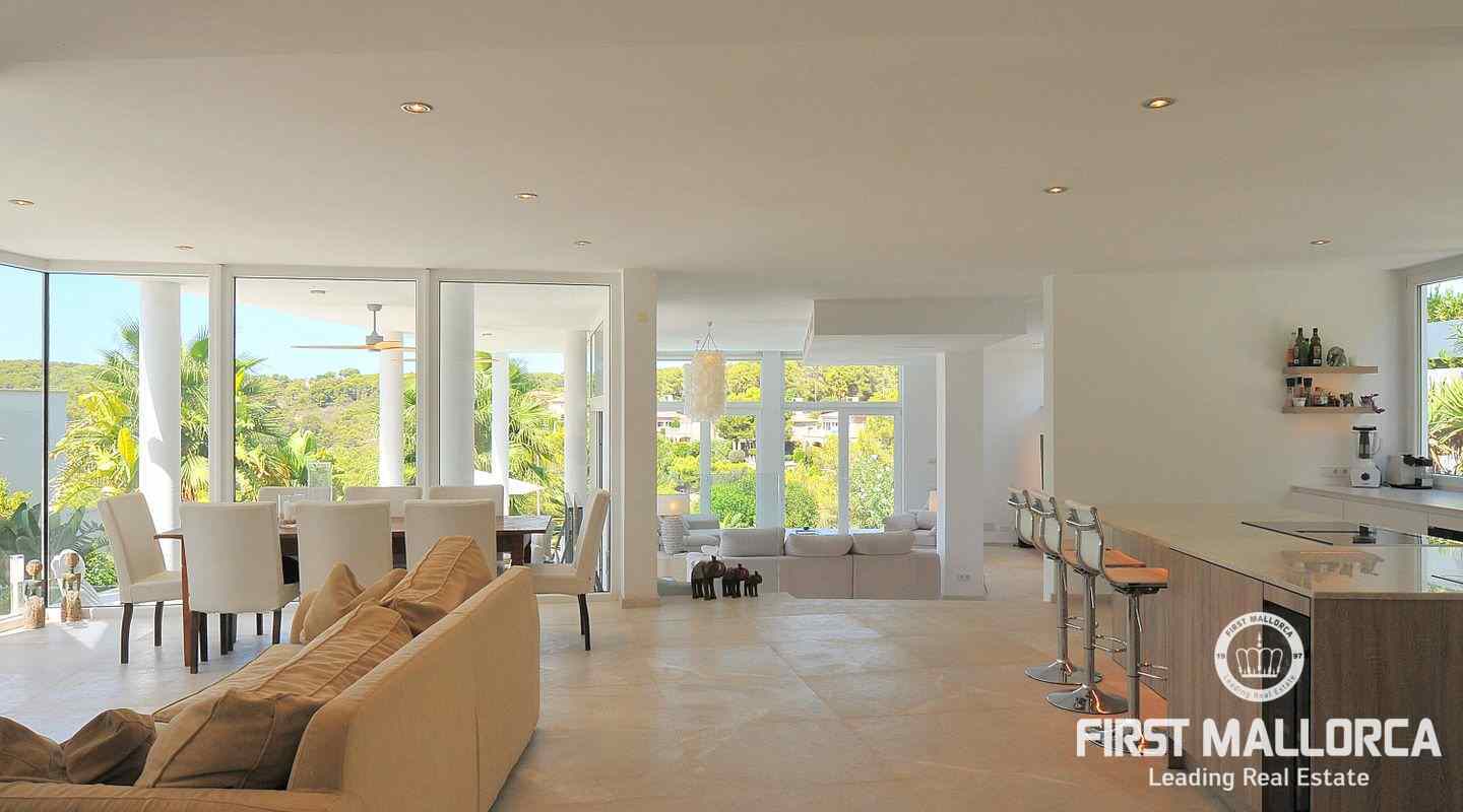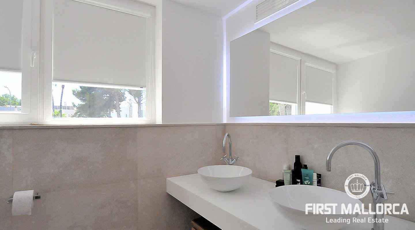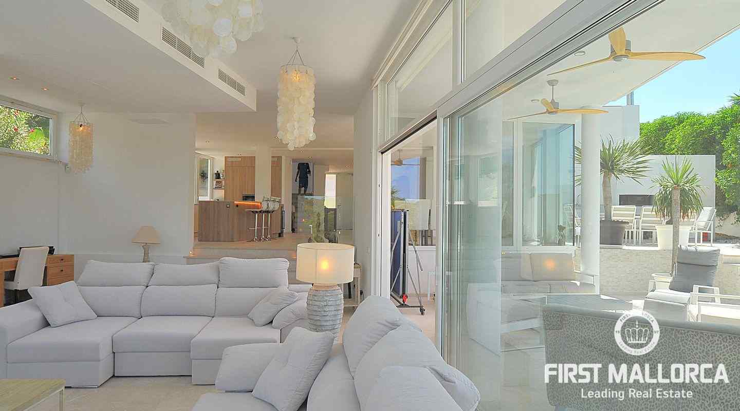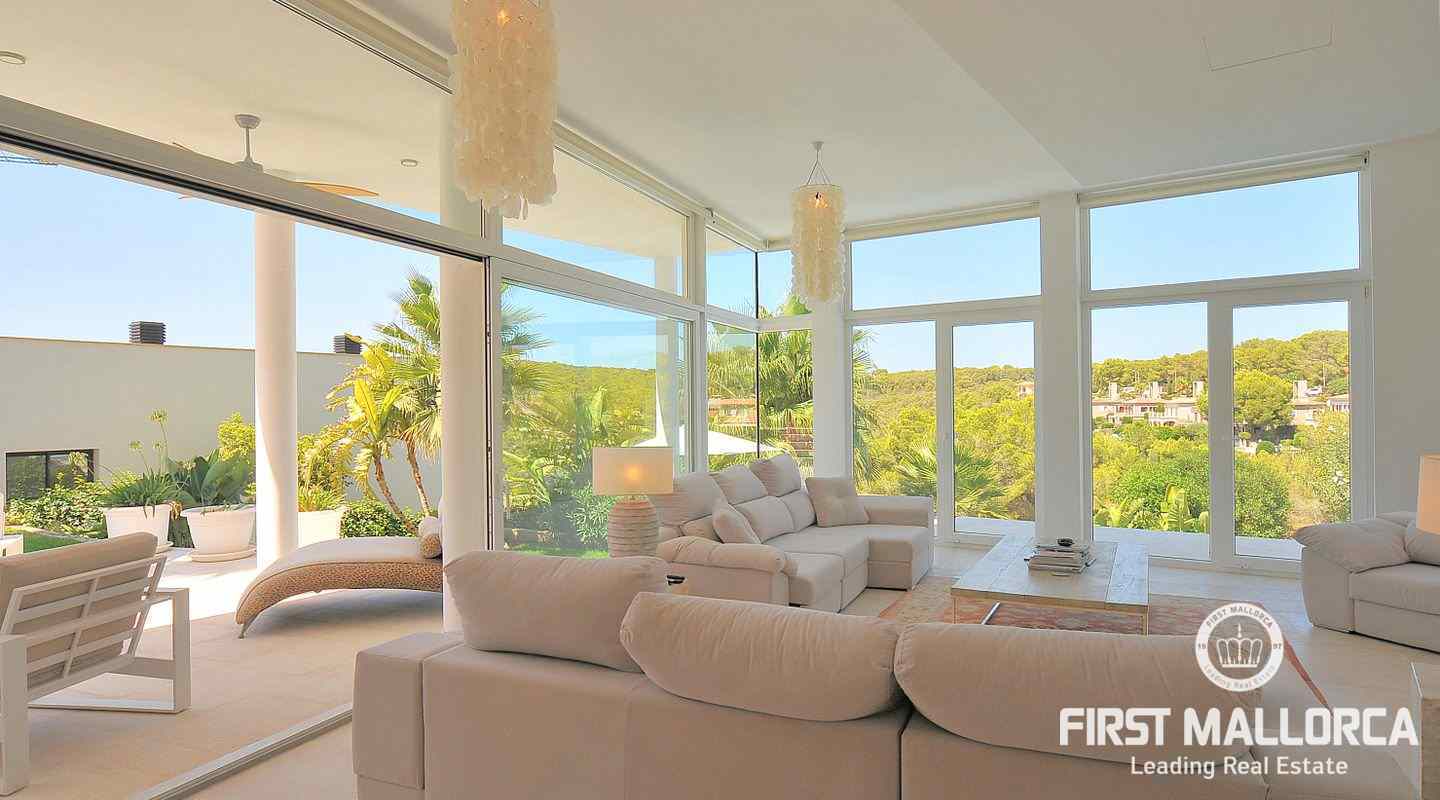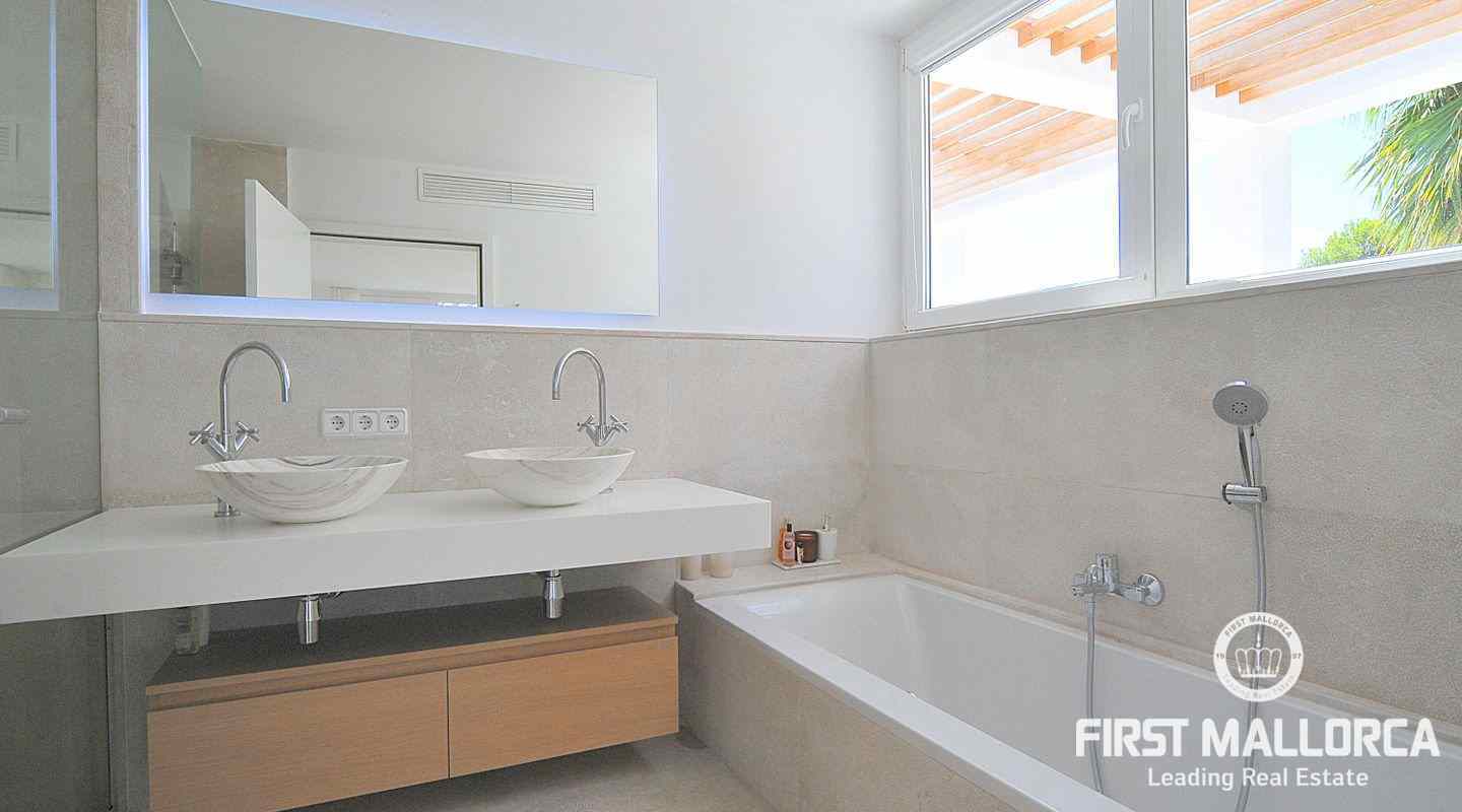 An attractive and spacious contemporary design villa in a peaceful residential area of Sol de Mallorca. The exclusive property is located only a few minutes by car from the fashionable marina of Port Adriano with its cafés, restaurants and boutiques. The 4 bedroom, 4 bathroom villa sits in a garden plot of 1,310 m2. It has a constructed area of 426 m2 including approximately 20 m2 of covered terraces. In addition there are 100 m2 of open terraces and a roof terrace of approximately 85 m2 with excellent views to the sea, the landscape and the mountains. Additional features include an open fireplace, a bar, high quality materials and a storeroom. Within a few minutes walking one finds some of the island's most spectacular beaches as well as a vast protected natural reserve, ideal for hiking.
