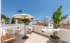 On the ground floor, you will find two spacious bedrooms and two bathrooms, including a master bedroom with an en-suite bathroom. The upper floor offers a separate studio apartment with a bedroom, kitchen, bathroom, and a beautiful terrace with sea views. A large rooftop terrace with sea views also invites you to relax.