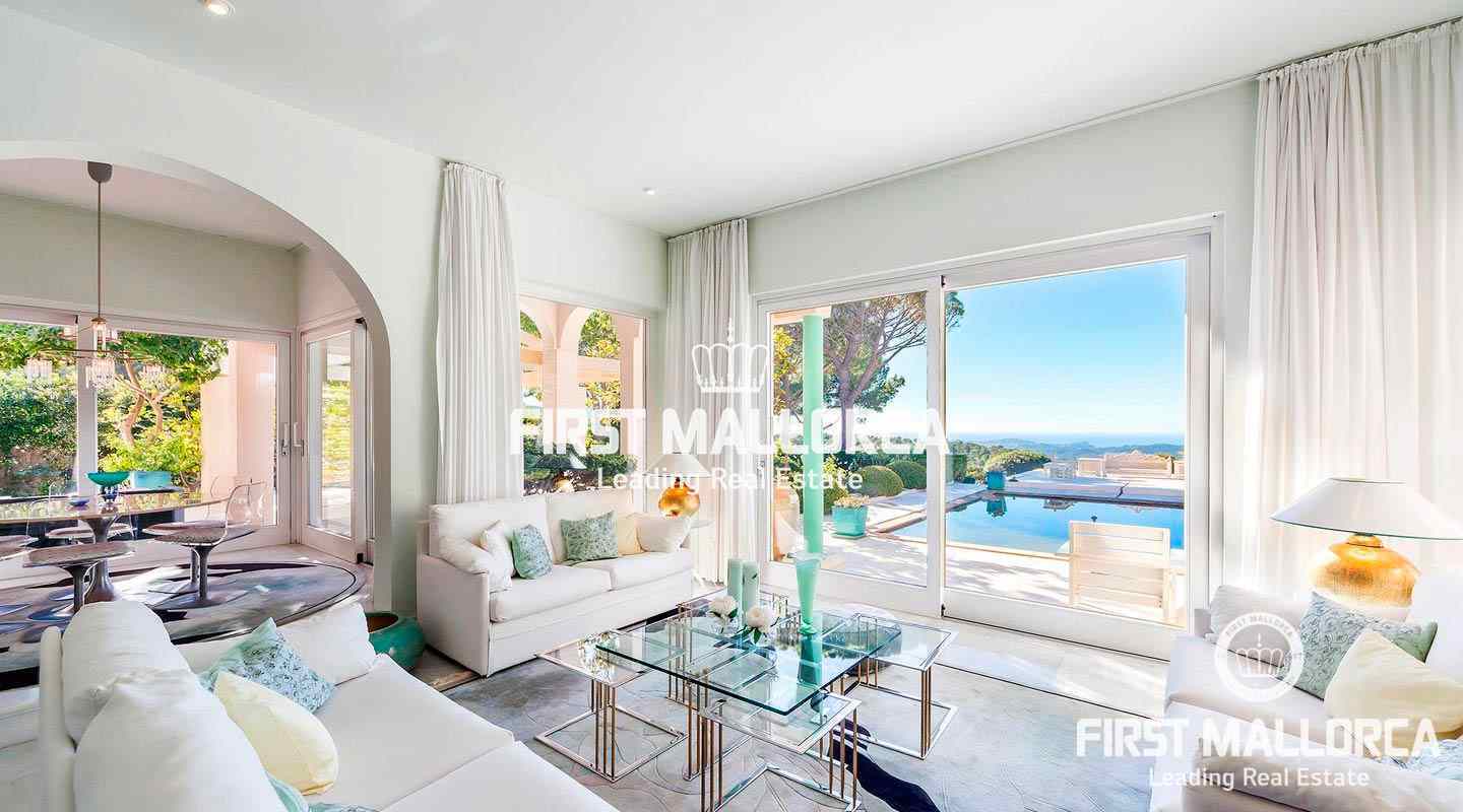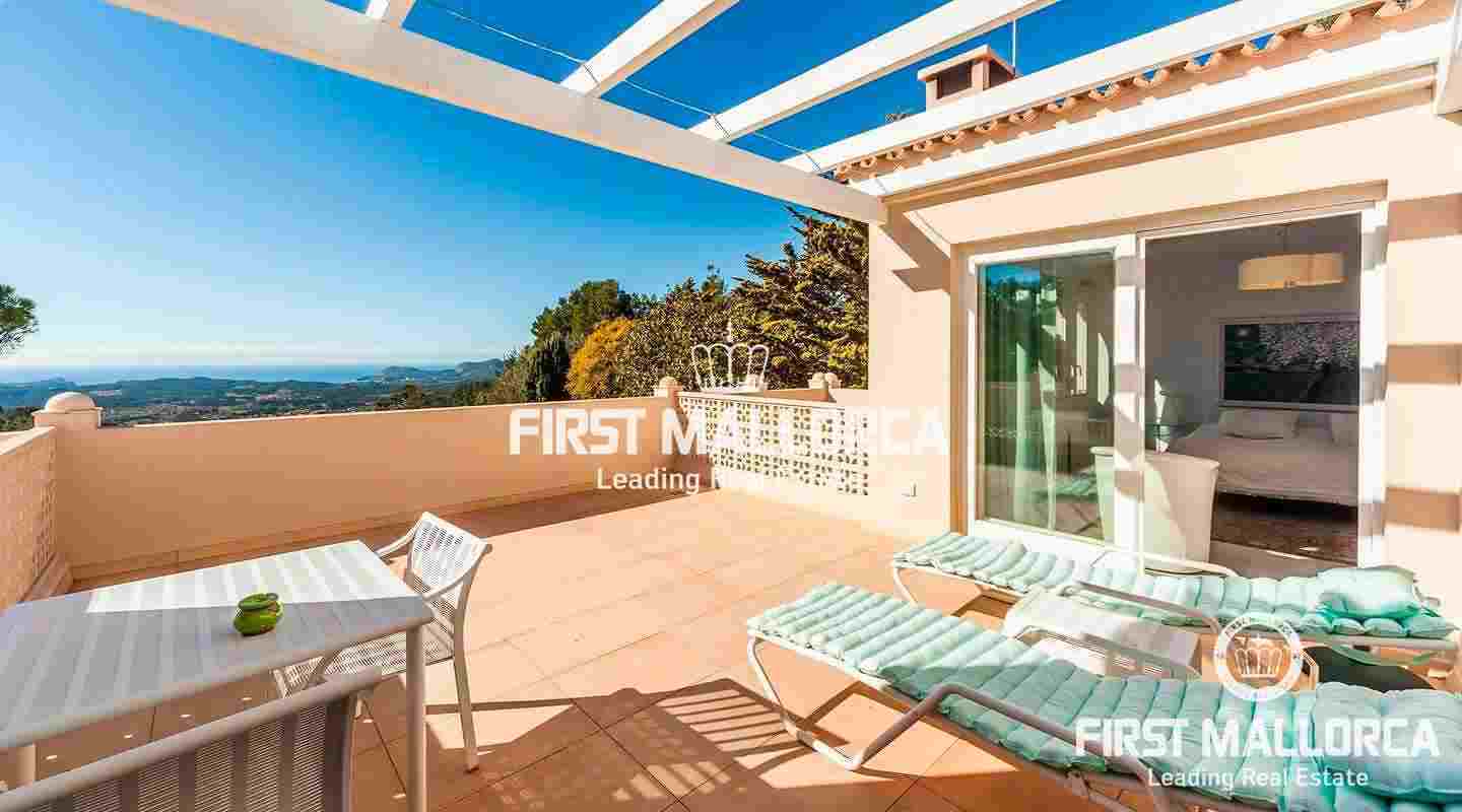 In the main house, there are 4 bedrooms and a separate guest apartment. The views of the mountains, the valley of Calvia and the sea are extensive. The villa is the perfect place to enjoy in exclusive privacy the Mallorcan sky, sea and nature.