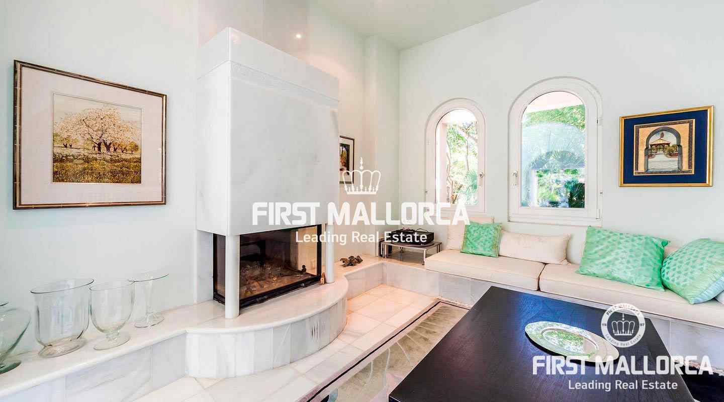 Several golf courses, the beaches of Santa Ponsa and Palmanova and the elegant Port Adriano and Puerto Portals marinas can be reached in a few minutes by car. Additional features include central heating, underfloor heating in the bathrooms, fireplace, marble floors, intercom system and 6 parking spaces. In addition, there is a barbecue area, a private well, a laundry room and a wine cellar.