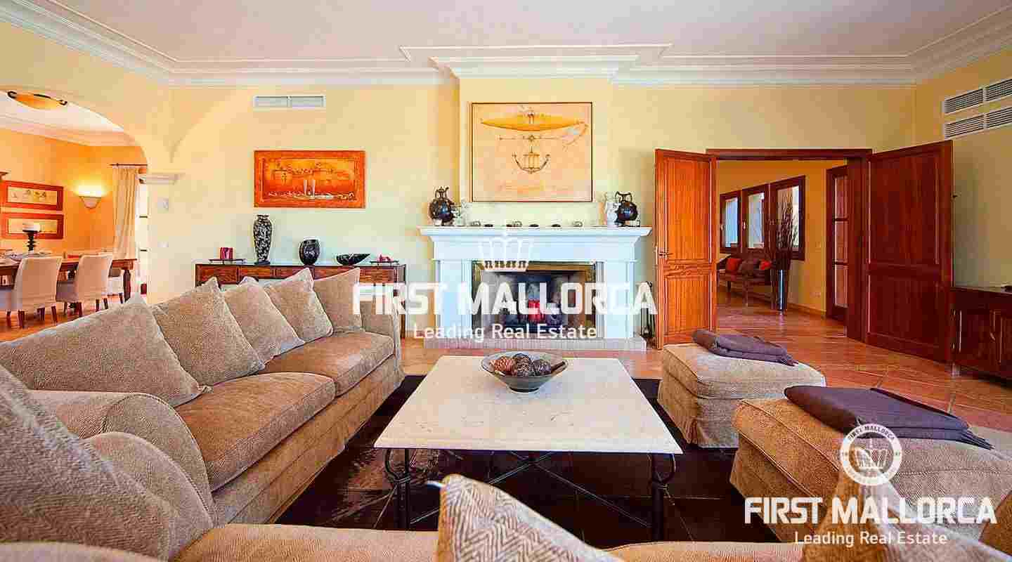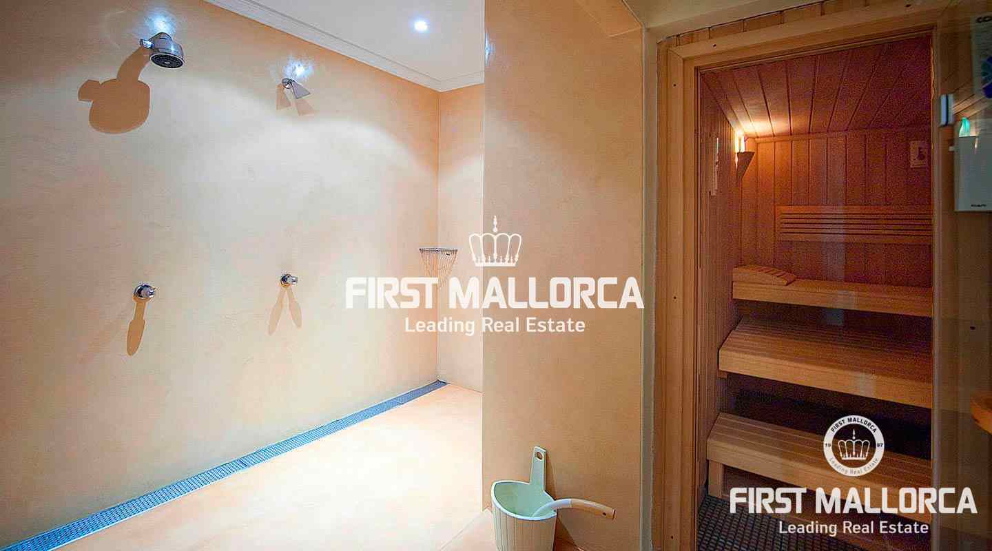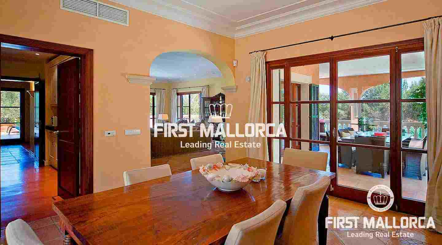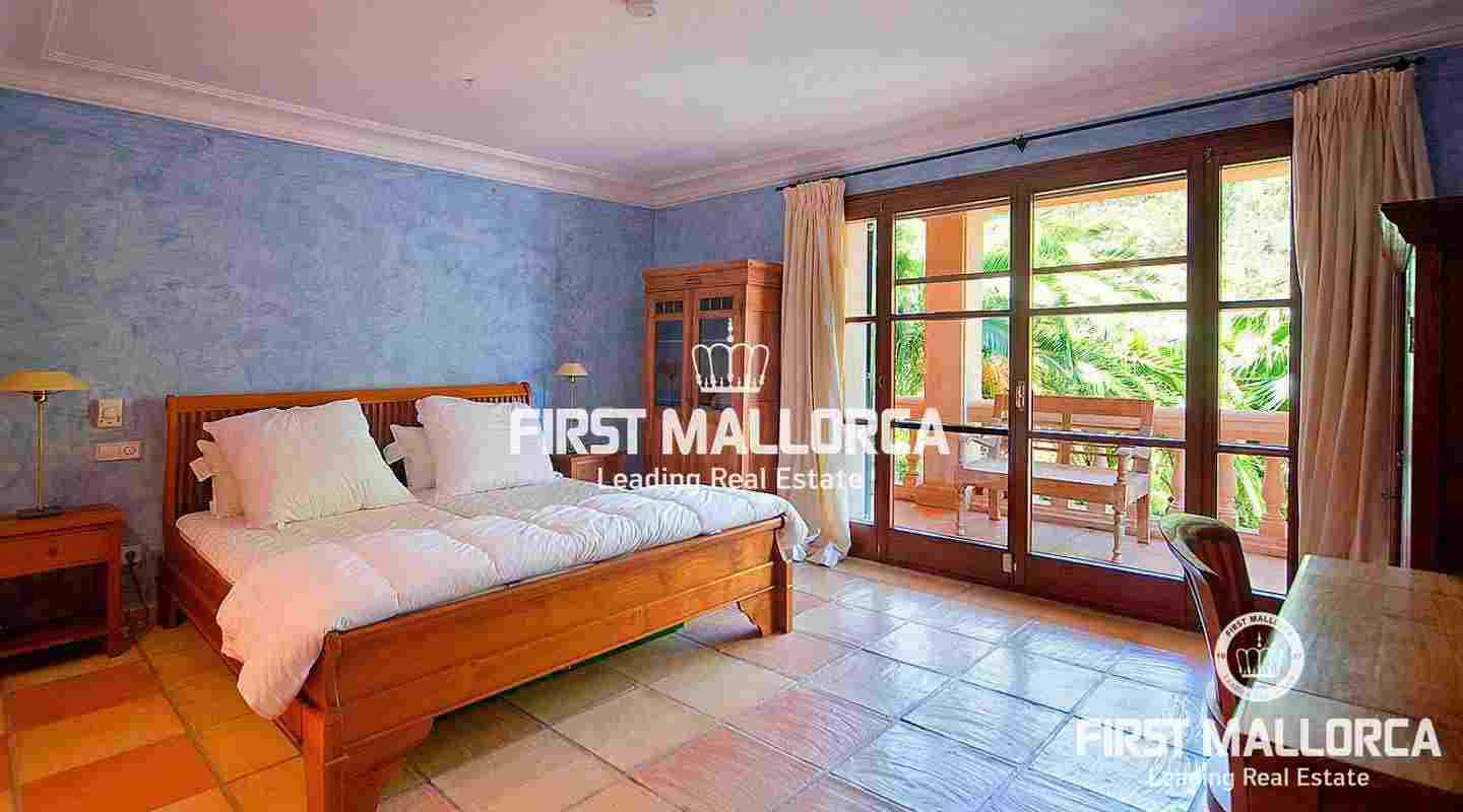 An impressive luxury villa in the exclusive residential area of Son Vida. The South facing property enjoys delightful views over the bay of Palma. The villa with 4 bedrooms and 4 bathrooms, including a separate guest house, is set on a wonderful garden plot of 6,556 m2. It has a constructed area of 727 m2 including 95 m2 of covered terraces plus 163 m2 of open terraces. Additional features include a fireplace, a sophisticated air-conditioned wine cellar with tasting area, terracotta floors, central music equipment, precious wood works, osmotic plant for the total water supply, automatic irrigation system and a workshop. The Spa features a long indoor pool with natural chlorine produced by a salt electrolysis system, whirlpool, sauna and a steam bath. Son Vida is the oldest urbanization in Mallorca and one of the most prestigious residential areas on the island. Son Vida is centrally located and embedded within 3 superb golf courses, only a couple of minutes away from the city of Palma and various marinas. There are 2 exclusive 5-Star Hotels in the area. The well known Son Vida Hotel belongs to the "Leading Hotels of the World" and has welcomed famous visitors such as Grace Kelly or Aristoteles Onassis.