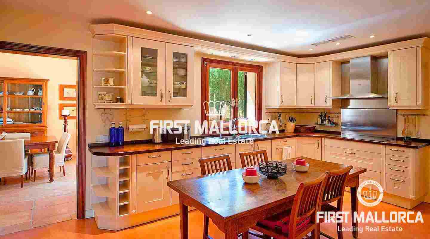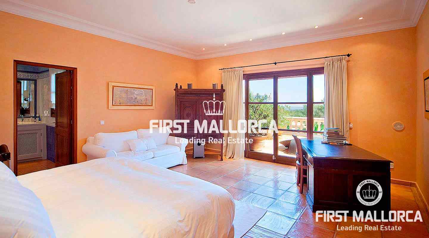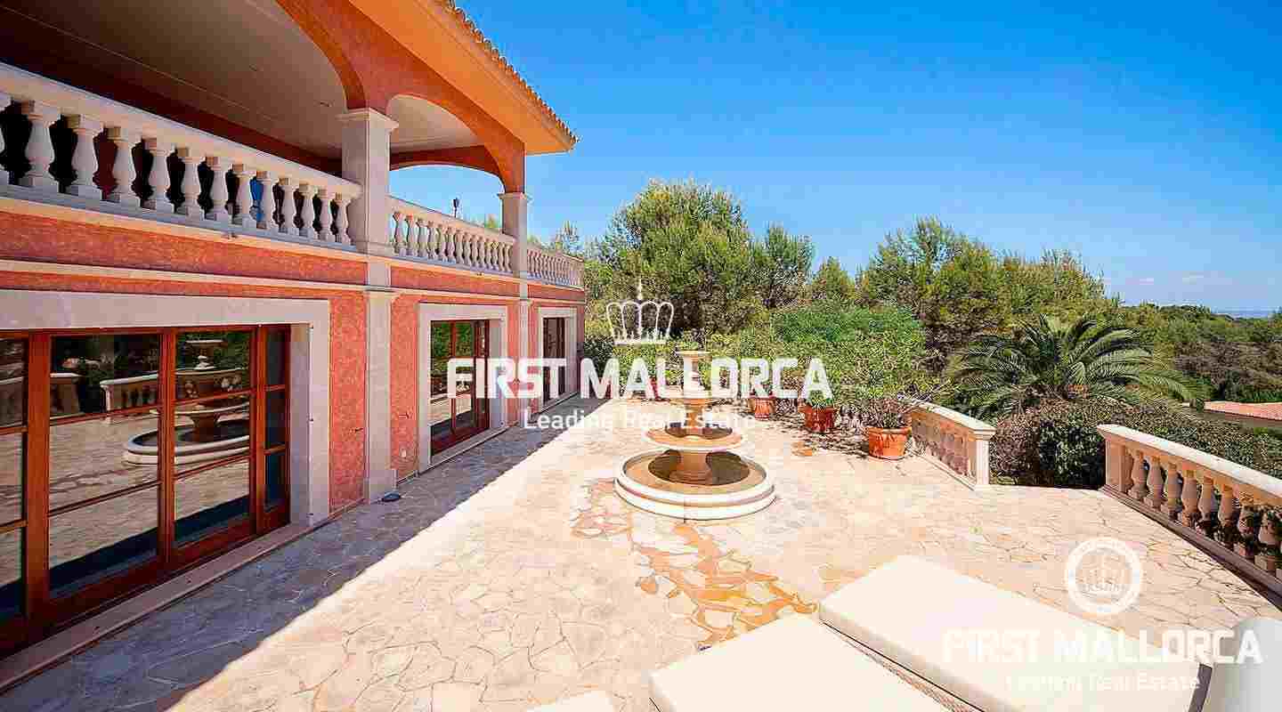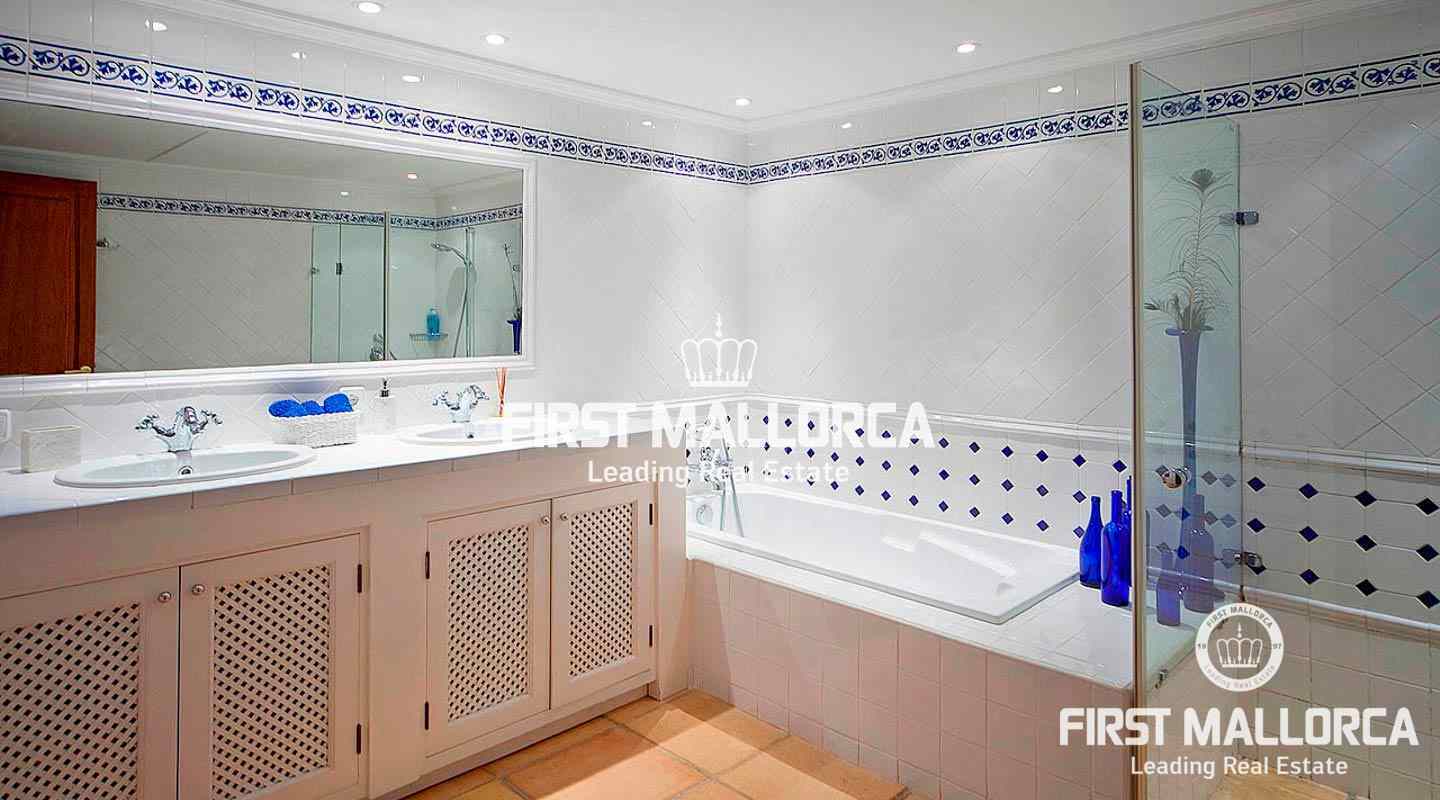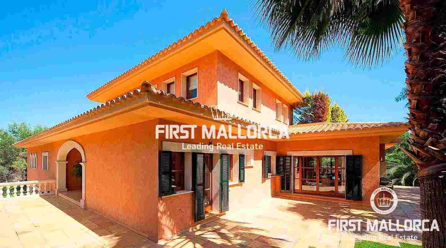 An impressive luxury villa in the exclusive residential area of Son Vida. The South facing property enjoys delightful views over the bay of Palma. The villa with 4 bedrooms and 4 bathrooms, including a separate guest house, is set on a wonderful garden plot of 6,556 m2. It has a constructed area of 727 m2 including 95 m2 of covered terraces plus 163 m2 of open terraces. Additional features include a fireplace, a sophisticated air-conditioned wine cellar with tasting area, terracotta floors, central music equipment, precious wood works, osmotic plant for the total water supply, automatic irrigation system and a workshop. The Spa features a long indoor pool with natural chlorine produced by a salt electrolysis system, whirlpool, sauna and a steam bath. Son Vida is the oldest urbanization in Mallorca and one of the most prestigious residential areas on the island. Son Vida is centrally located and embedded within 3 superb golf courses, only a couple of minutes away from the city of Palma and various marinas. There are 2 exclusive 5-Star Hotels in the area. The well known Son Vida Hotel belongs to the "Leading Hotels of the World" and has welcomed famous visitors such as Grace Kelly or Aristoteles Onassis.
