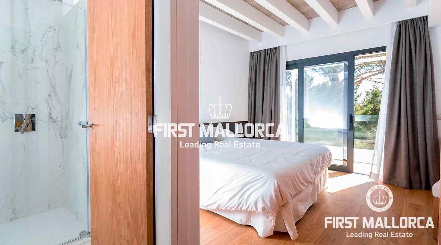 The villa was built on 2 floors and also has a basement with space for 2 cars. On the ground floor, there is a large living room with an open-plan kitchen and great views of the green surroundings. There is also a bathroom and one of the 4 bedrooms on the same floor. The other 3 bedrooms are on the upper floor, each of them with bathroom en suite. A spiral staircase leads to a rooftop terrace with spectacular views of the bay of Alcúdia.