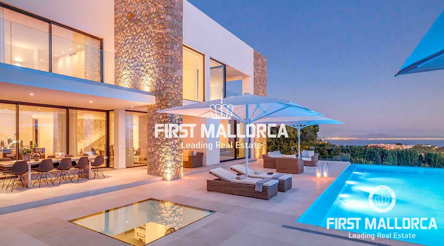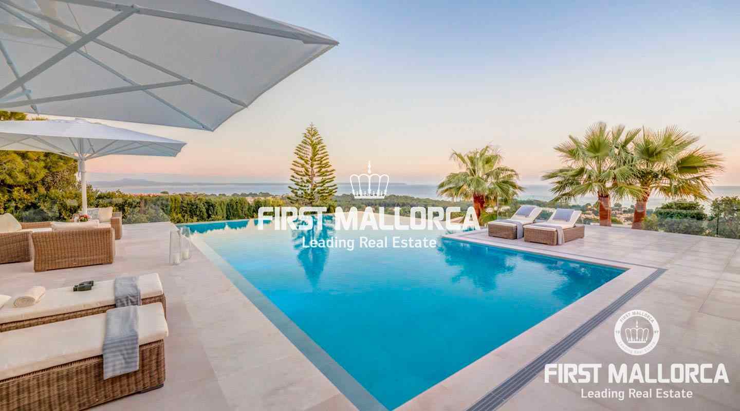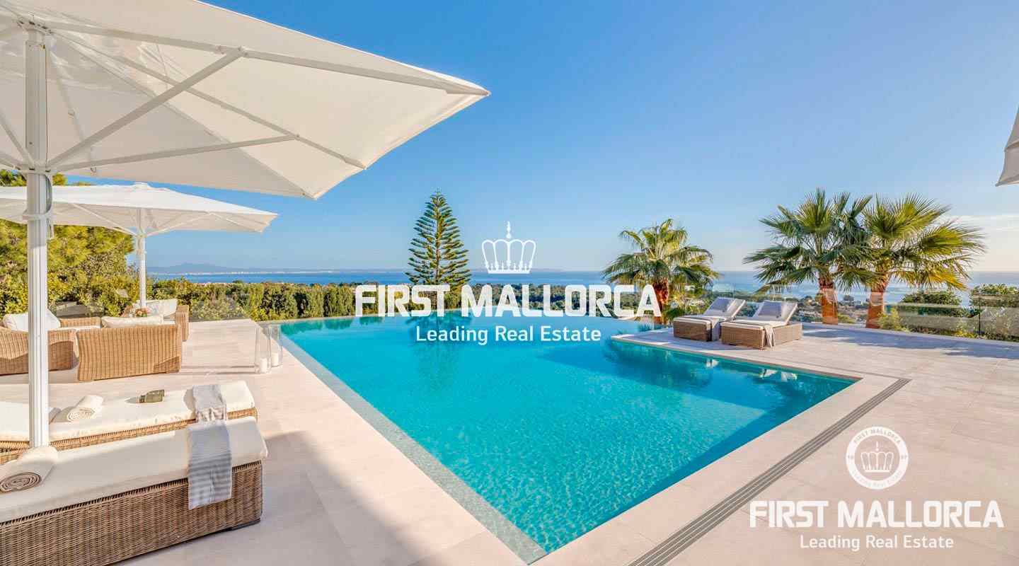This top quality villa enjoys beautiful sunrises and panoramic sea views to the bay of Palma and is located in Bendinat within easy walking distance to the nearby shops, the gym and the hotel Lindner Golf Resort Portals Nous.
