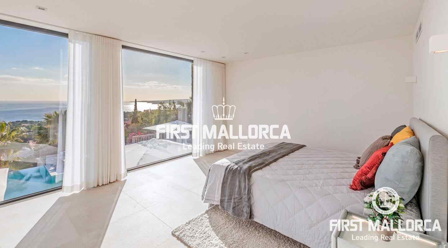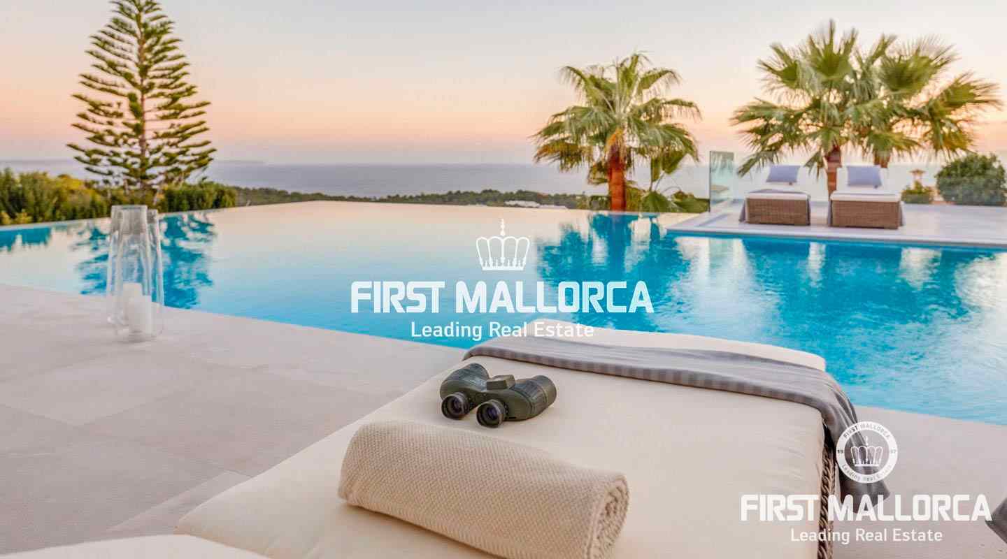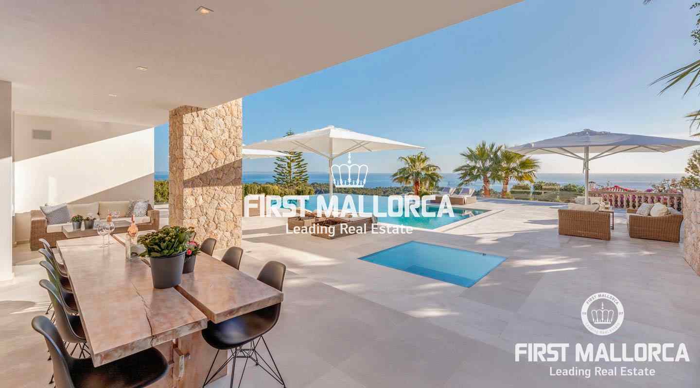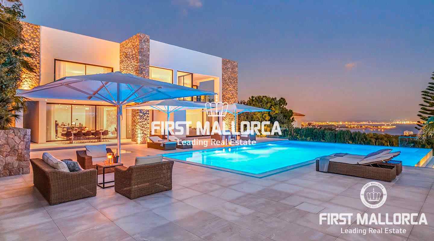This top quality villa enjoys beautiful sunrises and panoramic sea views to the bay of Palma and is located in Bendinat within easy walking distance to the nearby shops, the gym and the hotel Lindner Golf Resort Portals Nous.
