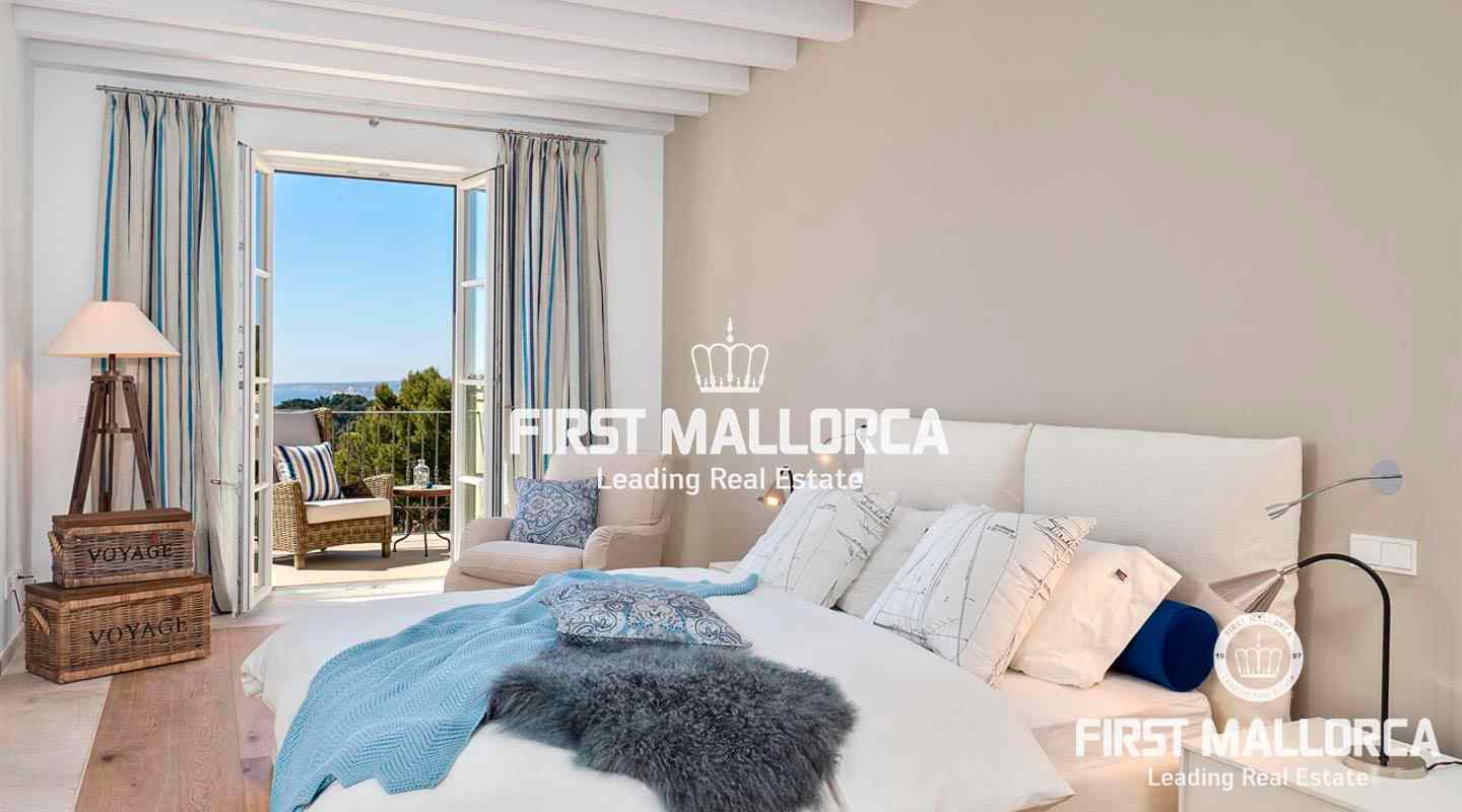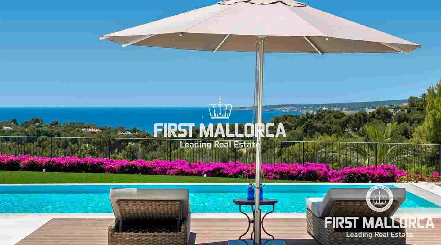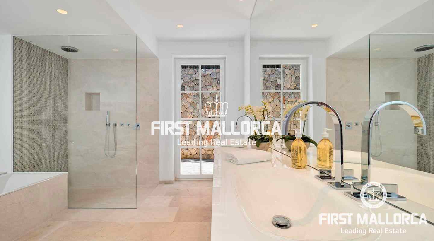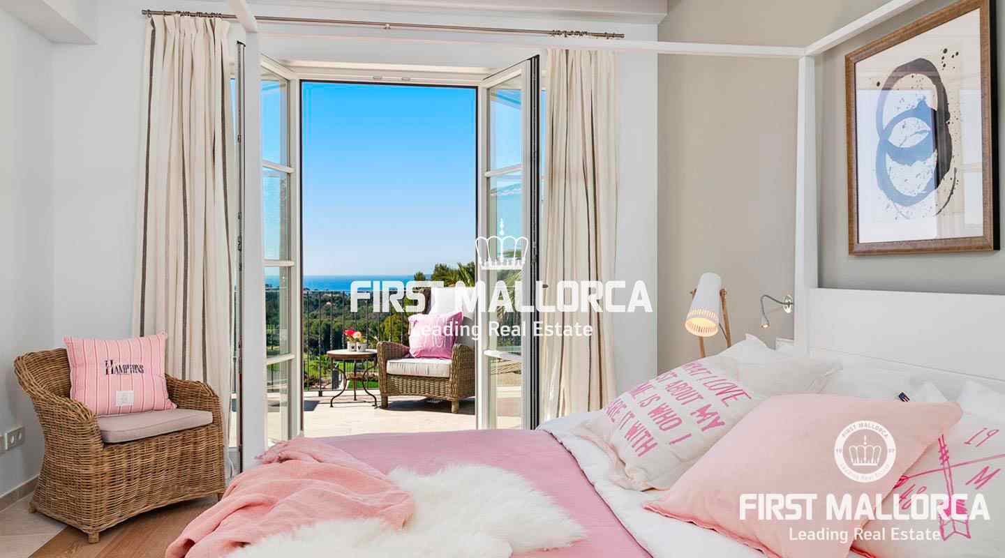 This villa really leaves nothing to be desired: everything was planned down to the smallest detail and only the highest quality materials were used. Mallorcan style and state-of-the-art technology harmonize with each other and the property offers a beautiful Mediterranean garden with salt water pool and a wonderful view of the golf course and the sea. The light-flooded new building with 5 bedrooms is not only the perfect family home, but also features many extras such as an elevator, a fitness area with various saunas, cinema room and a garage for 4 cars. The high quality furnishing is included in the price.