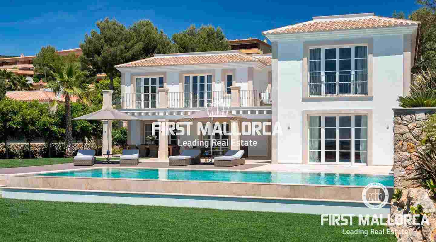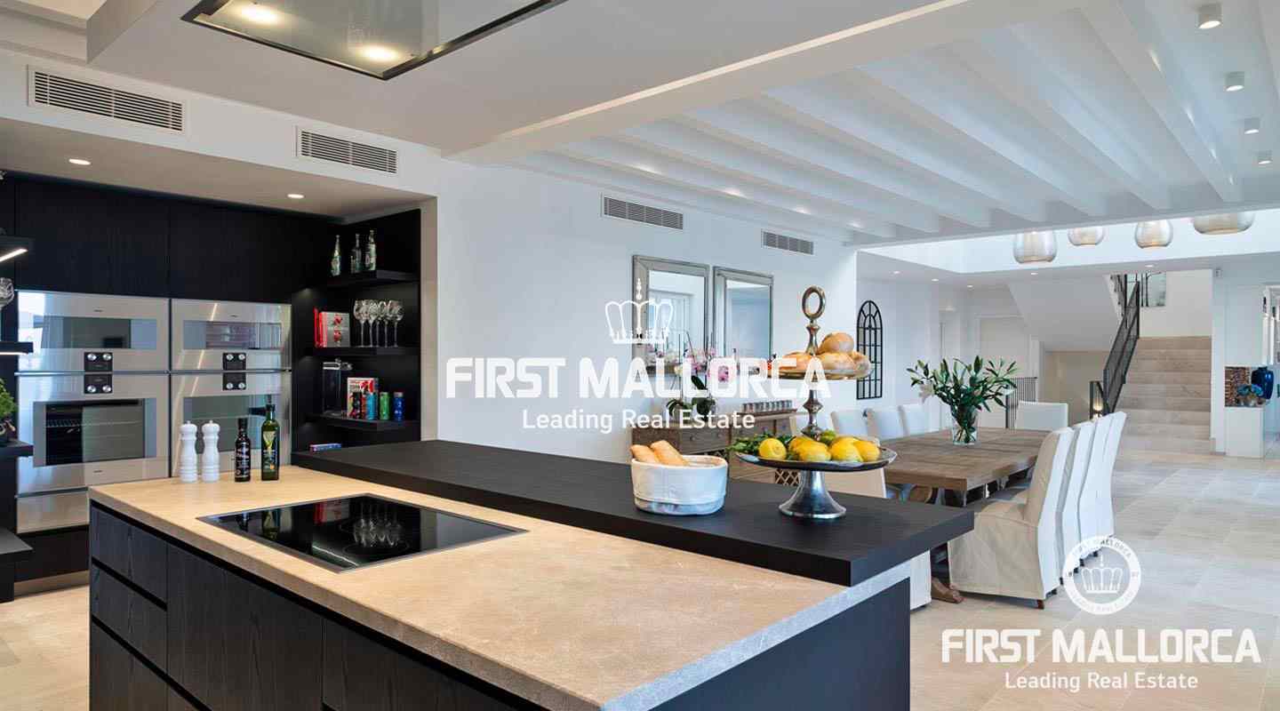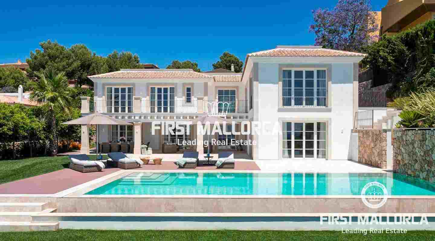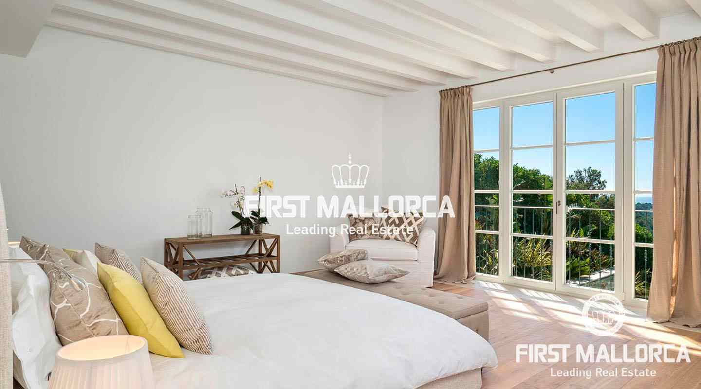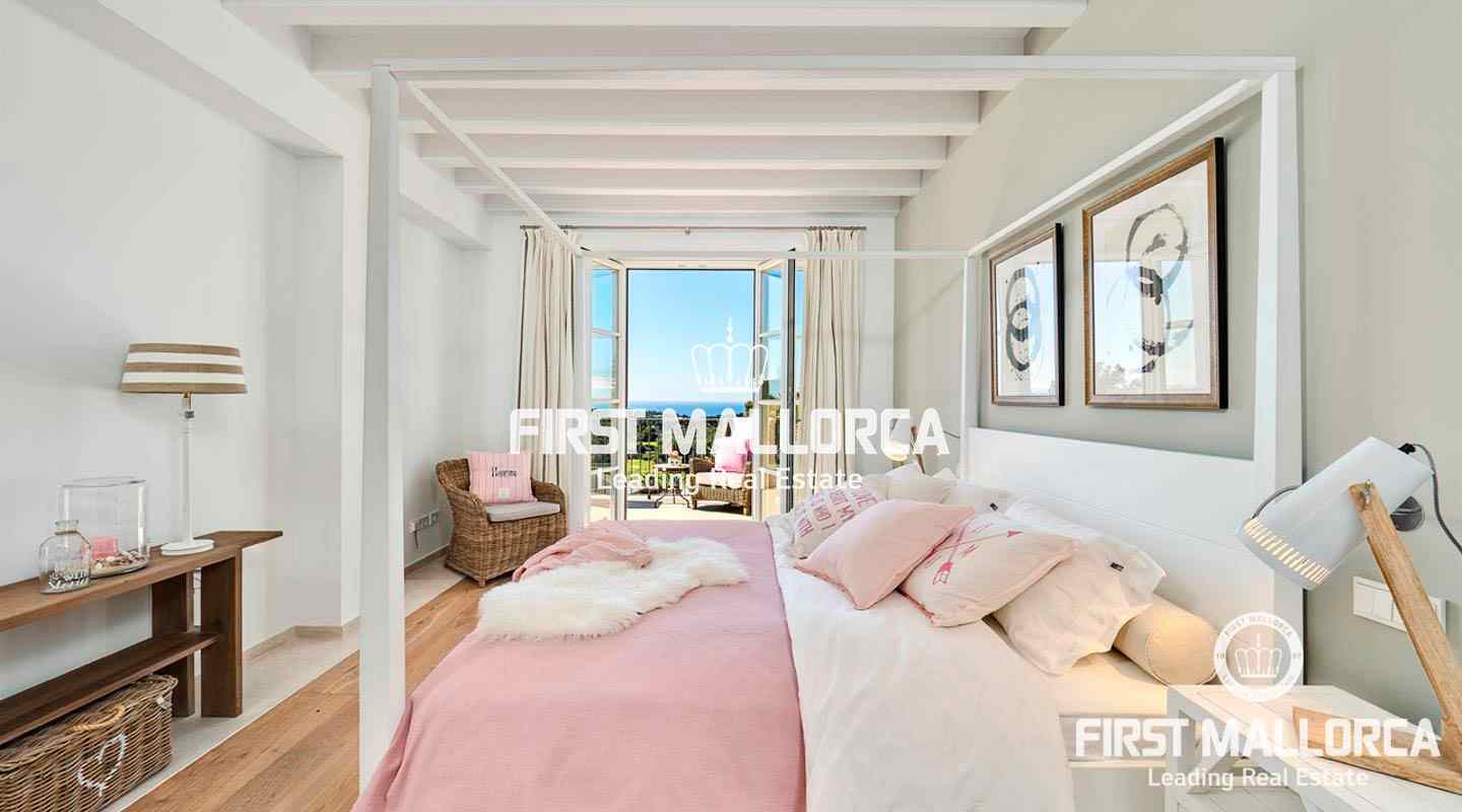 This villa really leaves nothing to be desired: everything was planned down to the smallest detail and only the highest quality materials were used. Mallorcan style and state-of-the-art technology harmonize with each other and the property offers a beautiful Mediterranean garden with salt water pool and a wonderful view of the golf course and the sea. The light-flooded new building with 5 bedrooms is not only the perfect family home, but also features many extras such as an elevator, a fitness area with various saunas, cinema room and a garage for 4 cars. The high quality furnishing is included in the price.