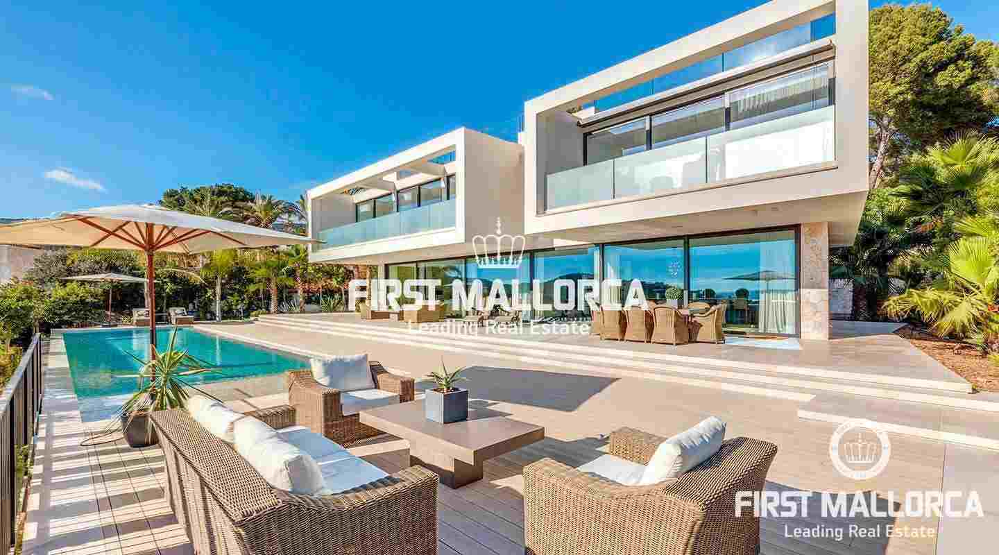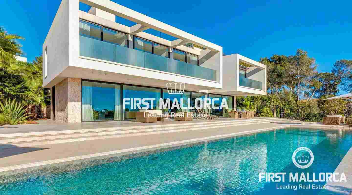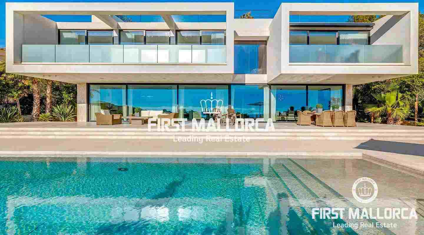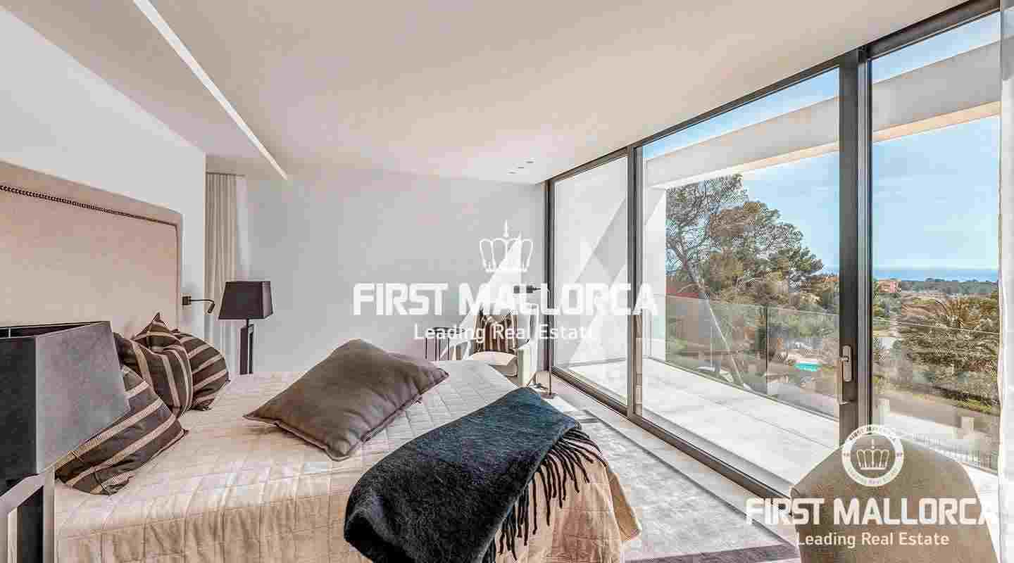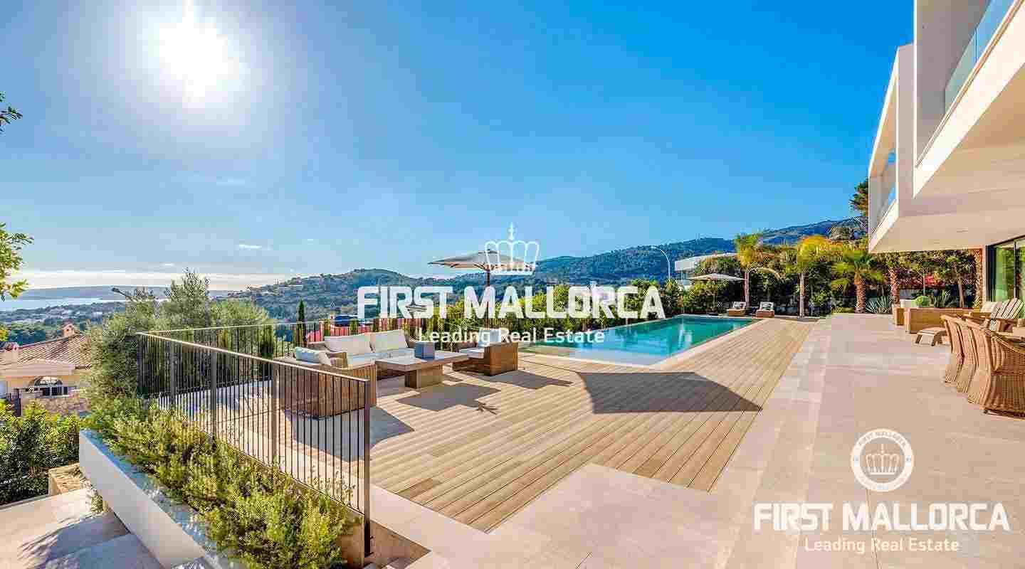 This unique, south-west facing villa in an elevated location in Cas Catalá enjoys superb views of the Bendinat Golf course and the sea.