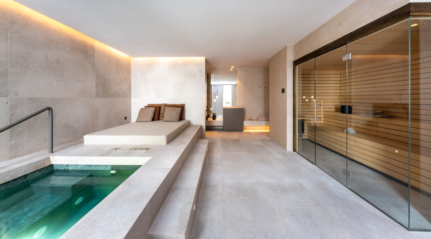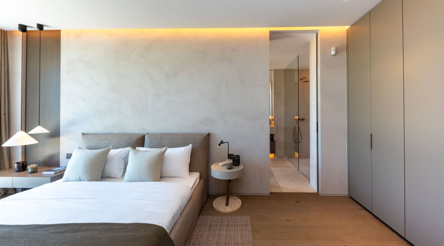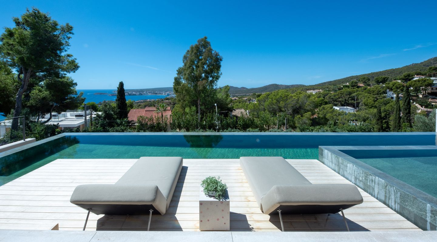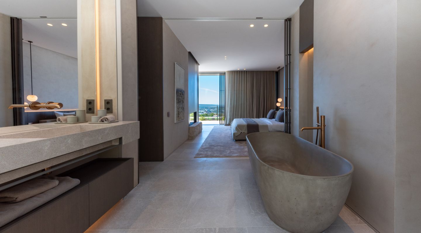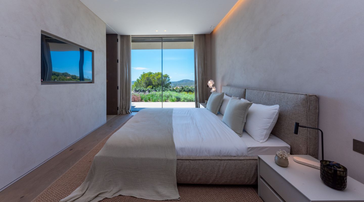 Carefully crafted and constructed by one of the most reputable companies on the island, this property is spread over three levels offering the following distribution: entry by car is a marvellous experience, directly into the 235m2 garage with space for over 6 cars and access via a luxury foyer into the villa. On this same level there is a home cinema, staff bedroom ensuite, generous laundry room, technical room, stairs and a lift to all levels. The next level where the main guest entrance invites into an impressive reception area with a feature staircase leading upstairs, 3 generous ensuite double bedrooms, a master suite with dressing room and a private terrace, a relaxing area, an office, an interior patio and the spa area with gym/yoga room, jacuzzi, sauna and a bathroom, complete this area of the property. Upstairs on the top floor level is the main living room with a double sided fireplace, a dining area, a reading corner and an incredible Poliform kitchen where the doors slide into the walls inviting the sea views and breeze into the villa as it becomes one with the terrace and swimming pool. In addition there is a prep kitchen, a summer kitchen, a beautiful water feature with olive trees, a dining area and relaxing exterior lounge, all enjoying wonderful sea and landscape views across the infinity swimming pool. The main master bedroom suite with an adjoining living room and fireplace, a luxury dressing room, private terrace is well appointed on this level ensuring a very comfortable lifestyle. Beautifully landscaped gardens and level lawns surround the villa creating an oasis of peace and tranquility.