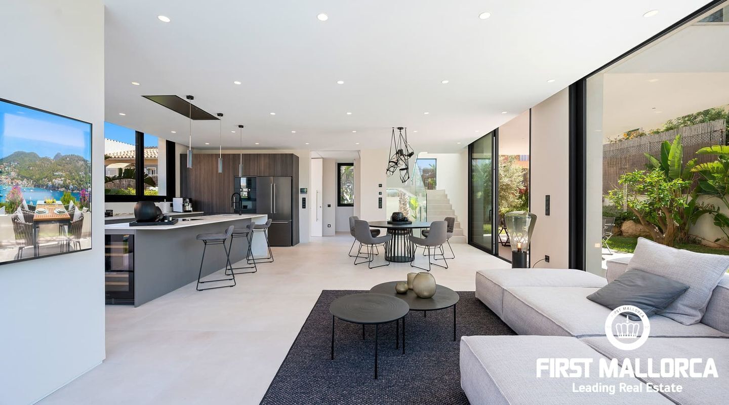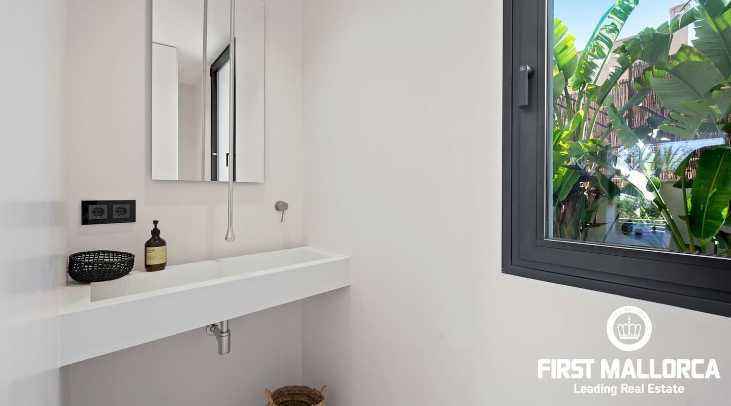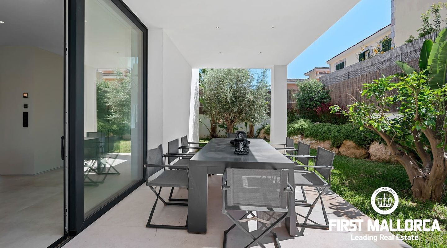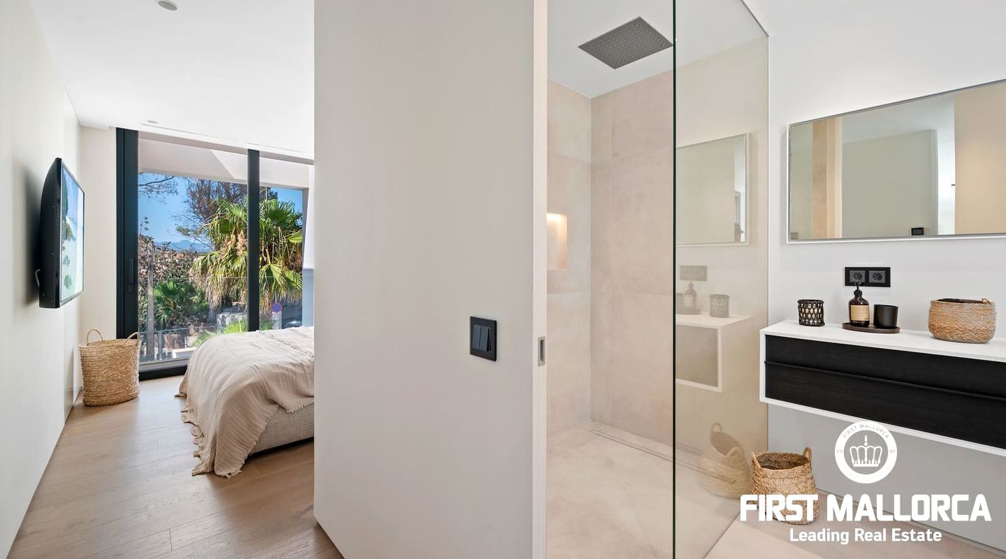 This newly built villa is strategically located on a curve, with sea views and top of the range finishings. Fully furnished, it offers everything a new and charming island home can offer, underfloor heating by aerotermia, air conditioning h/c, domotics, salt pool, sauna, and three spacious bedrooms, all of them with bathrooms en suite. The upper terrace, equipped for the installation of any kind of kitchen etc., offers beautiful sea views. Also from different bedrooms, you have sea views. The basement floor also offers more space and houses, besides a complete bathroom, a sauna and enough space for a gymnasium with a relaxation room. Numerous covered and uncovered terraces are spread throughout the property, making it possible to take advantage of the outdoor space in a comfortable and sensational way. The large windows open onto these terraces, the garden, which is very easy to maintain, as well as the swimming pool. It also has two parking spaces inside the property.