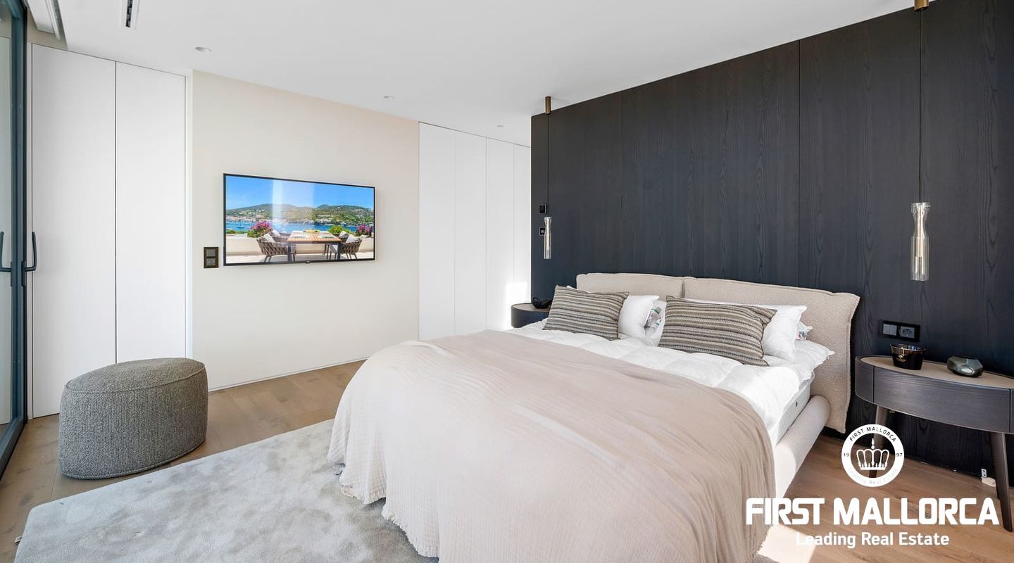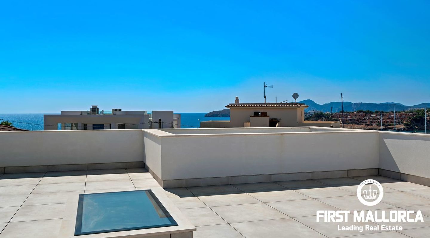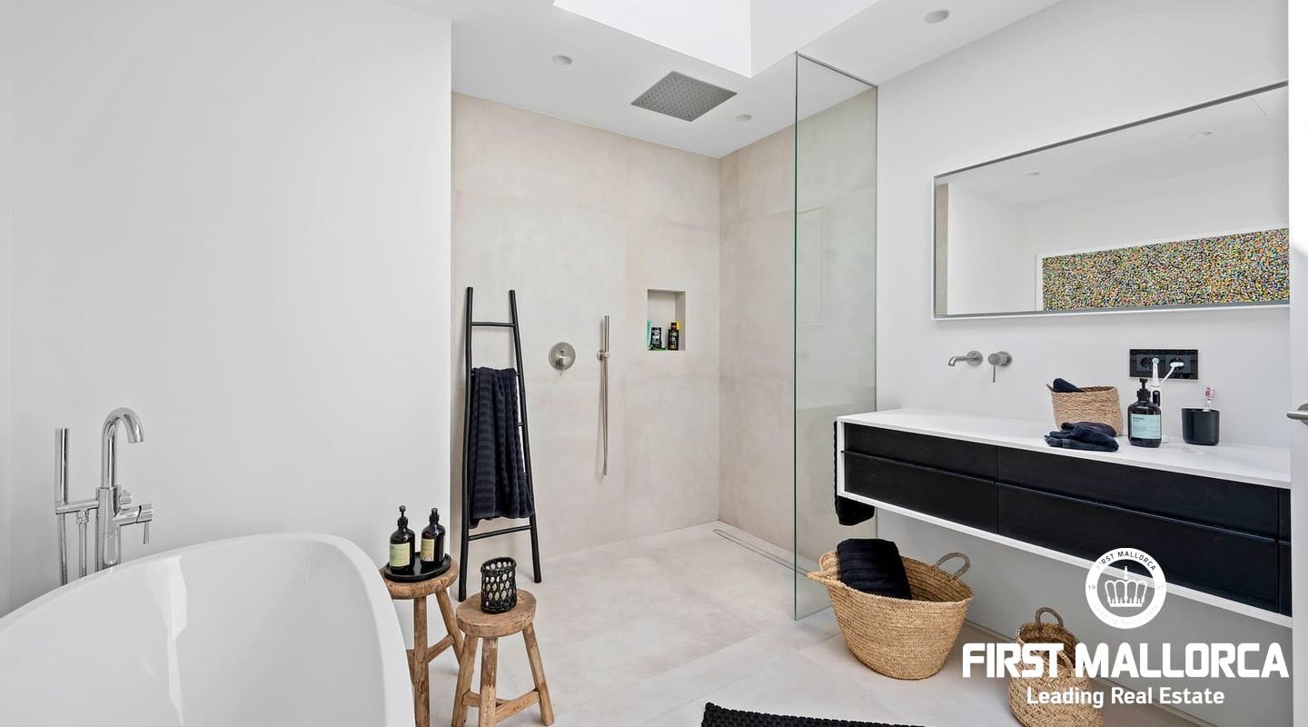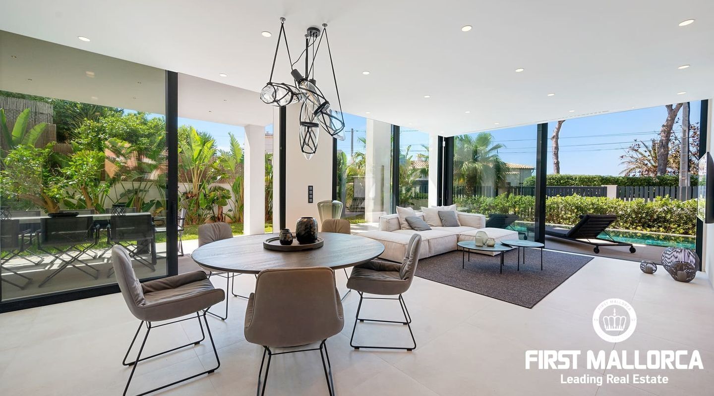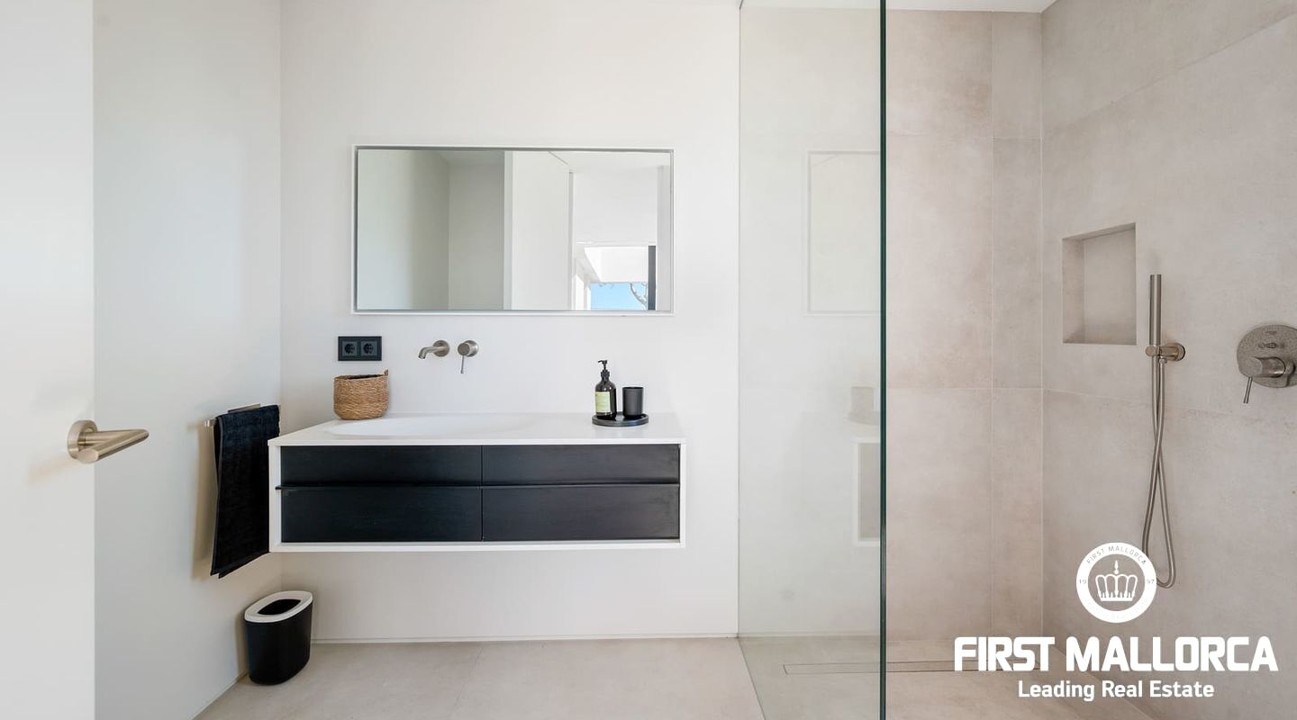 This newly built villa is strategically located on a curve, with sea views and top of the range finishings. Fully furnished, it offers everything a new and charming island home can offer, underfloor heating by aerotermia, air conditioning h/c, domotics, salt pool, sauna, and three spacious bedrooms, all of them with bathrooms en suite. The upper terrace, equipped for the installation of any kind of kitchen etc., offers beautiful sea views. Also from different bedrooms, you have sea views. The basement floor also offers more space and houses, besides a complete bathroom, a sauna and enough space for a gymnasium with a relaxation room. Numerous covered and uncovered terraces are spread throughout the property, making it possible to take advantage of the outdoor space in a comfortable and sensational way. The large windows open onto these terraces, the garden, which is very easy to maintain, as well as the swimming pool. It also has two parking spaces inside the property.