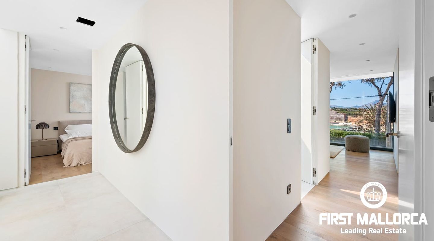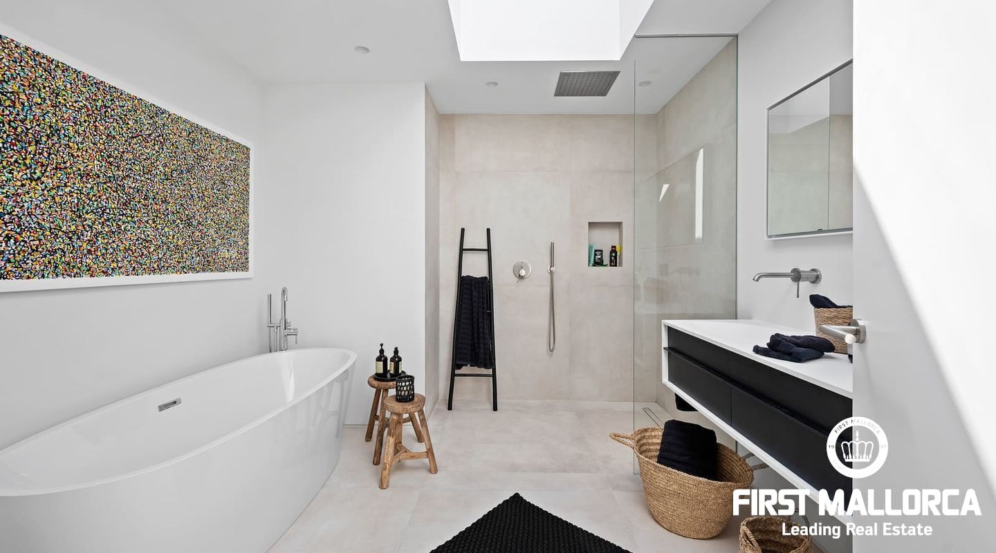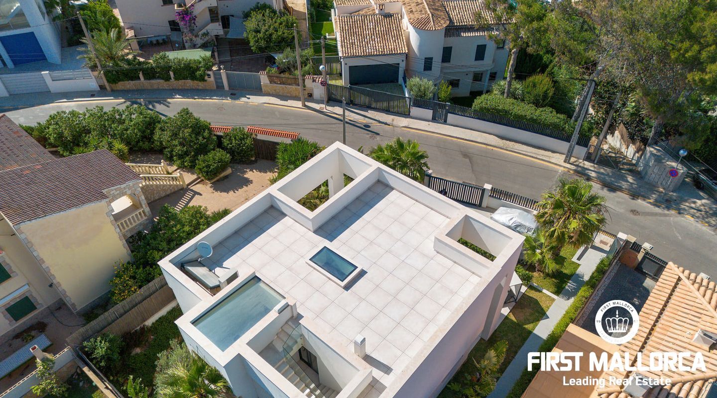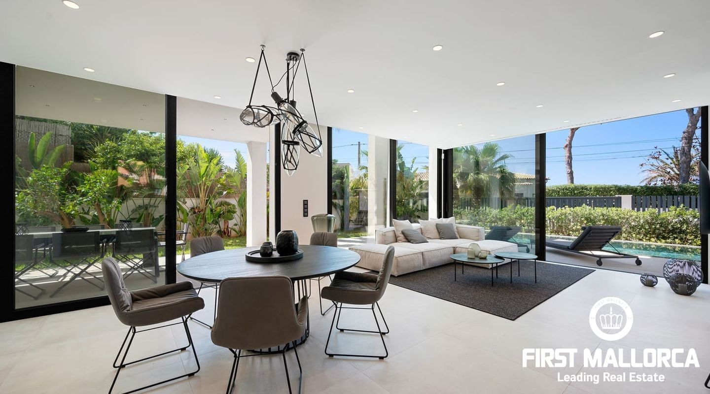This newly built villa is strategically located on a curve, with sea views and top of the range finishings. Fully furnished, it offers everything a new and charming island home can offer, underfloor heating by aerotermia, air conditioning h/c, domotics, salt pool, sauna, and three spacious bedrooms, all of them with bathrooms en suite. The upper terrace, equipped for the installation of any kind of kitchen etc., offers beautiful sea views. Also from different bedrooms, you have sea views. The basement floor also offers more space and houses, besides a complete bathroom, a sauna and enough space for a gymnasium with a relaxation room. Numerous covered and uncovered terraces are spread throughout the property, making it possible to take advantage of the outdoor space in a comfortable and sensational way. The large windows open onto these terraces, the garden, which is very easy to maintain, as well as the swimming pool. It also has two parking spaces inside the property.