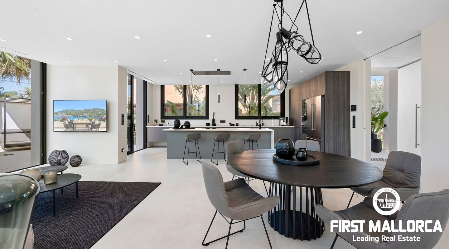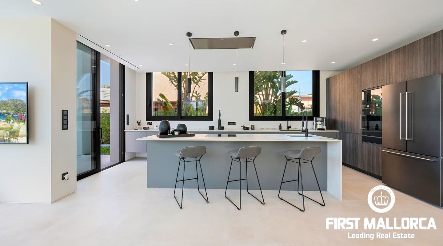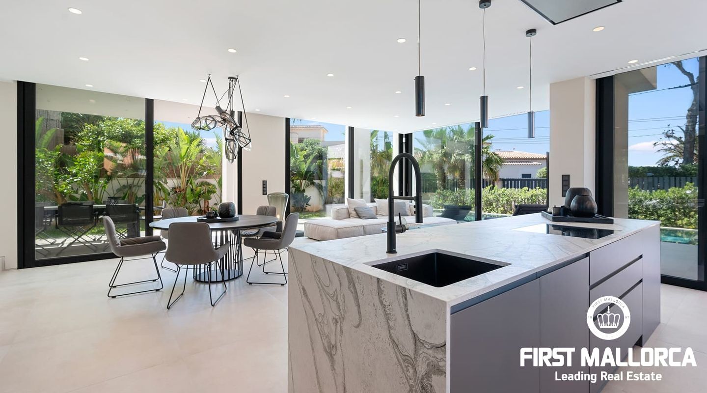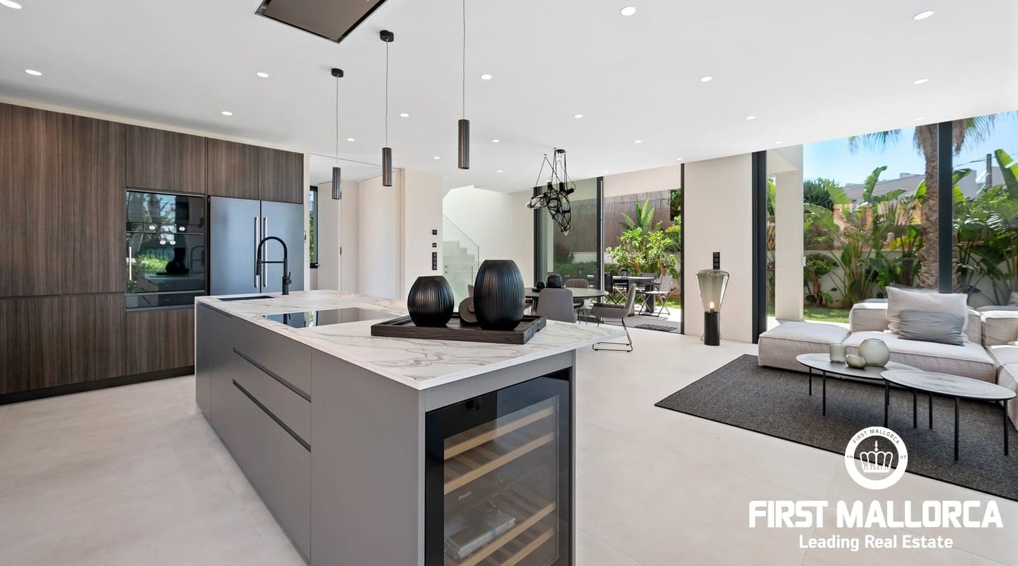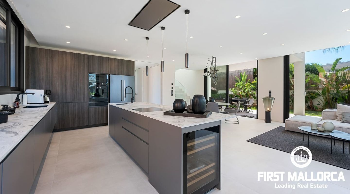 This newly built villa is strategically located on a curve, with sea views and top of the range finishings. Fully furnished, it offers everything a new and charming island home can offer, underfloor heating by aerotermia, air conditioning h/c, domotics, salt pool, sauna, and three spacious bedrooms, all of them with bathrooms en suite. The upper terrace, equipped for the installation of any kind of kitchen etc., offers beautiful sea views. Also from different bedrooms, you have sea views. The basement floor also offers more space and houses, besides a complete bathroom, a sauna and enough space for a gymnasium with a relaxation room. Numerous covered and uncovered terraces are spread throughout the property, making it possible to take advantage of the outdoor space in a comfortable and sensational way. The large windows open onto these terraces, the garden, which is very easy to maintain, as well as the swimming pool. It also has two parking spaces inside the property.