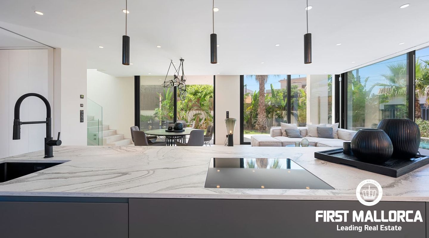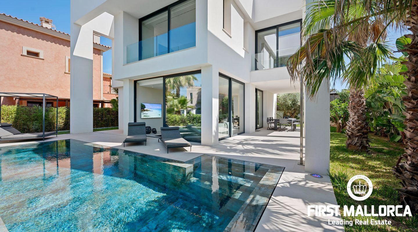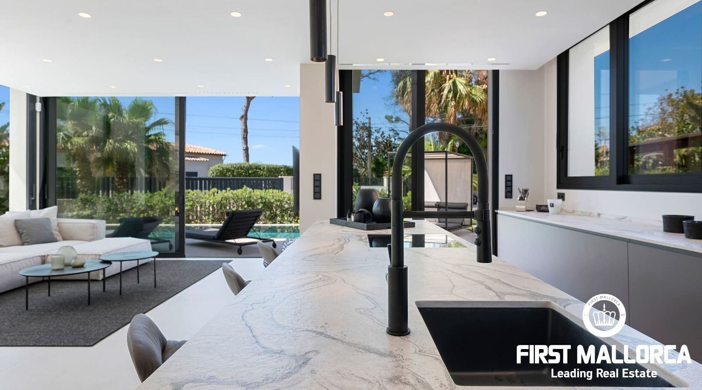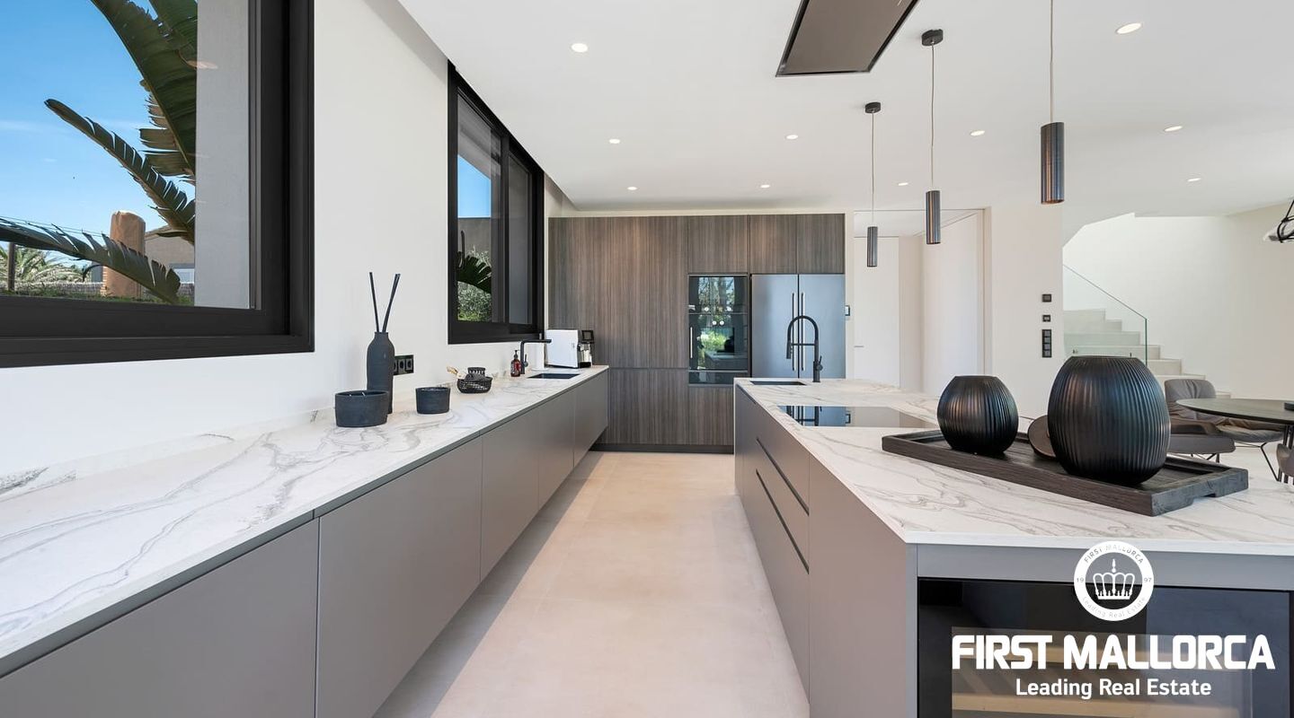 This newly built villa is strategically located on a curve, with sea views and top of the range finishings. Fully furnished, it offers everything a new and charming island home can offer, underfloor heating by aerotermia, air conditioning h/c, domotics, salt pool, sauna, and three spacious bedrooms, all of them with bathrooms en suite. The upper terrace, equipped for the installation of any kind of kitchen etc., offers beautiful sea views. Also from different bedrooms, you have sea views. The basement floor also offers more space and houses, besides a complete bathroom, a sauna and enough space for a gymnasium with a relaxation room. Numerous covered and uncovered terraces are spread throughout the property, making it possible to take advantage of the outdoor space in a comfortable and sensational way. The large windows open onto these terraces, the garden, which is very easy to maintain, as well as the swimming pool. It also has two parking spaces inside the property.