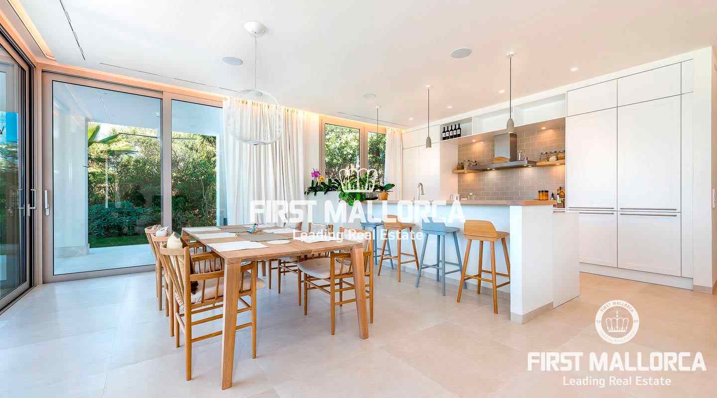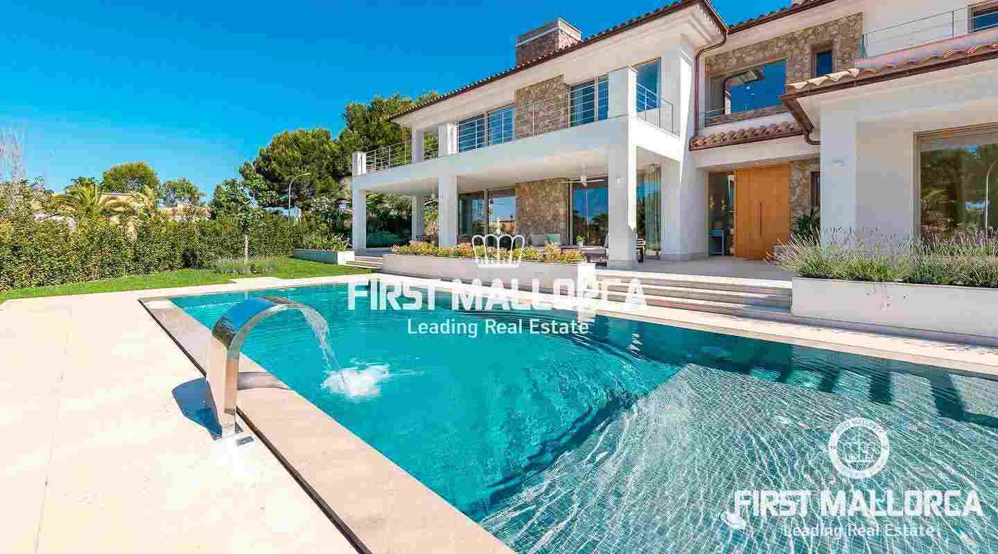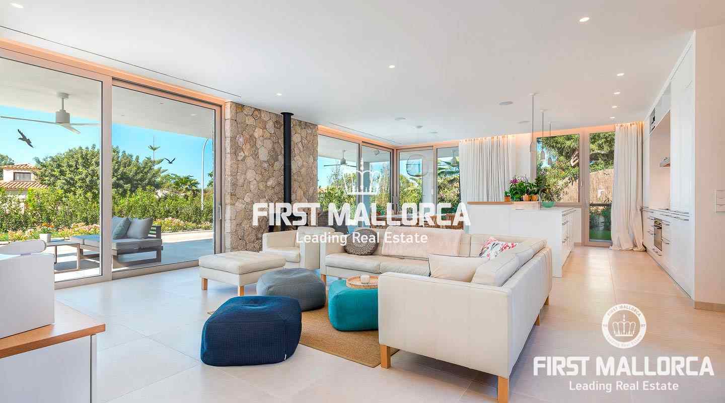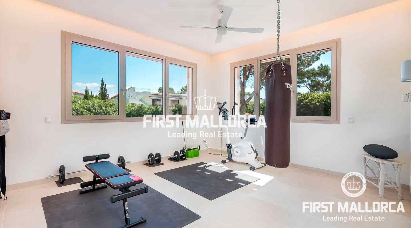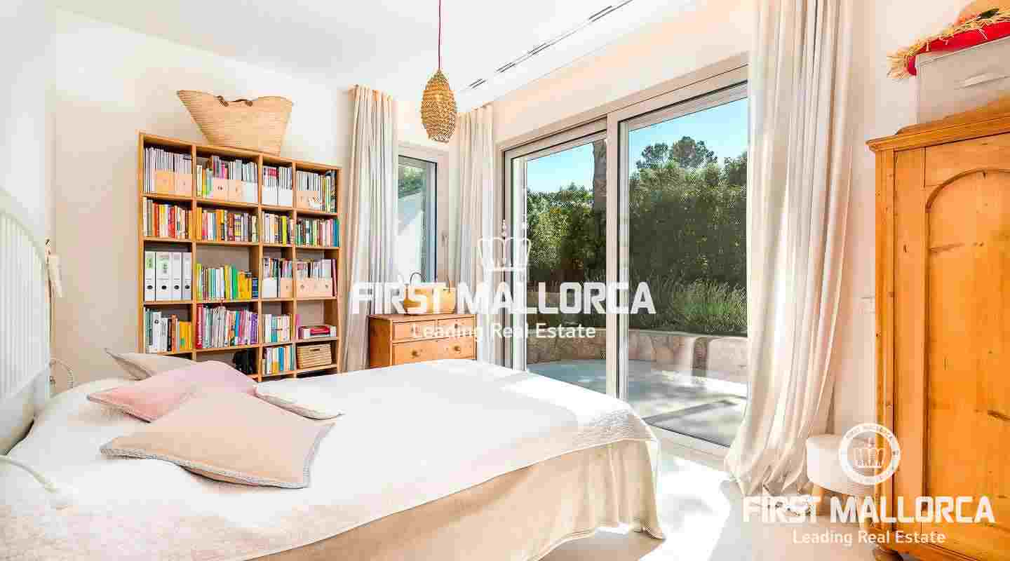 This modern Mediterranean style villa is located in one of the most sought-after locations in Nova Santa Ponsa and was built with the highest standards and the best qualities. The family villa has a flat garden, which is perfect for children. Natural stone elements on the façade give the modern and bright villa a Mediterranean flair. The ground floor offers an open plan kitchen by Birgit Müller and direct access to the living area. The house offers the latest pump technology, salt water, counter current system, a sun platform in the water as well as mother of pearl tiles. The upper floor currently offers two very nice bedrooms and a bathroom as well as a very large room, which is currently designed as an art studio, but it could be converted into another two bedrooms with bathroom or a very spacious master suite with dressing room and bathroom - here you have a great view over the landscape up to the mountains and even to the bay of Santa Ponsa. The excellent quality of this gem is clearly visible and will persuade any one looking for a luxury property in Mallorca.