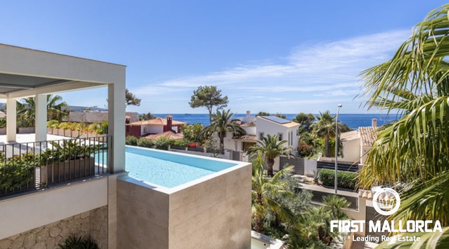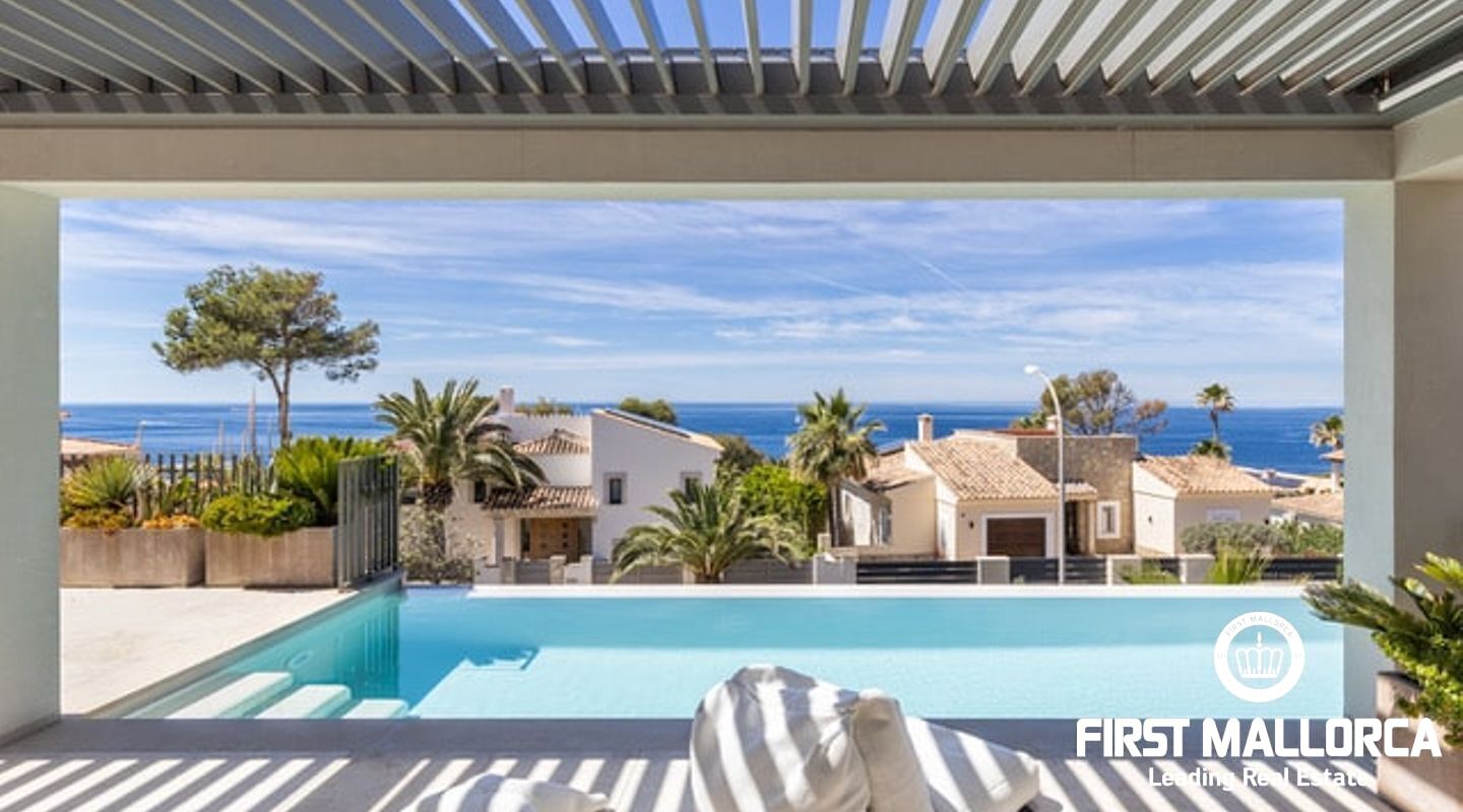 This exquisite southwest-facing villa is situated in a quiet residential area, just a stone's throw from the village centre. The villa is located in one of the most sought-after villa urbanisations in Santa Ponsa and offers a unique exclusivity and the extensive infrastructure of the southwest of the island. The picturesque beaches, top-class golf courses and marinas of the region are only a short drive away. Palma and the airport can be reached in about 25 to 30 minutes by car.