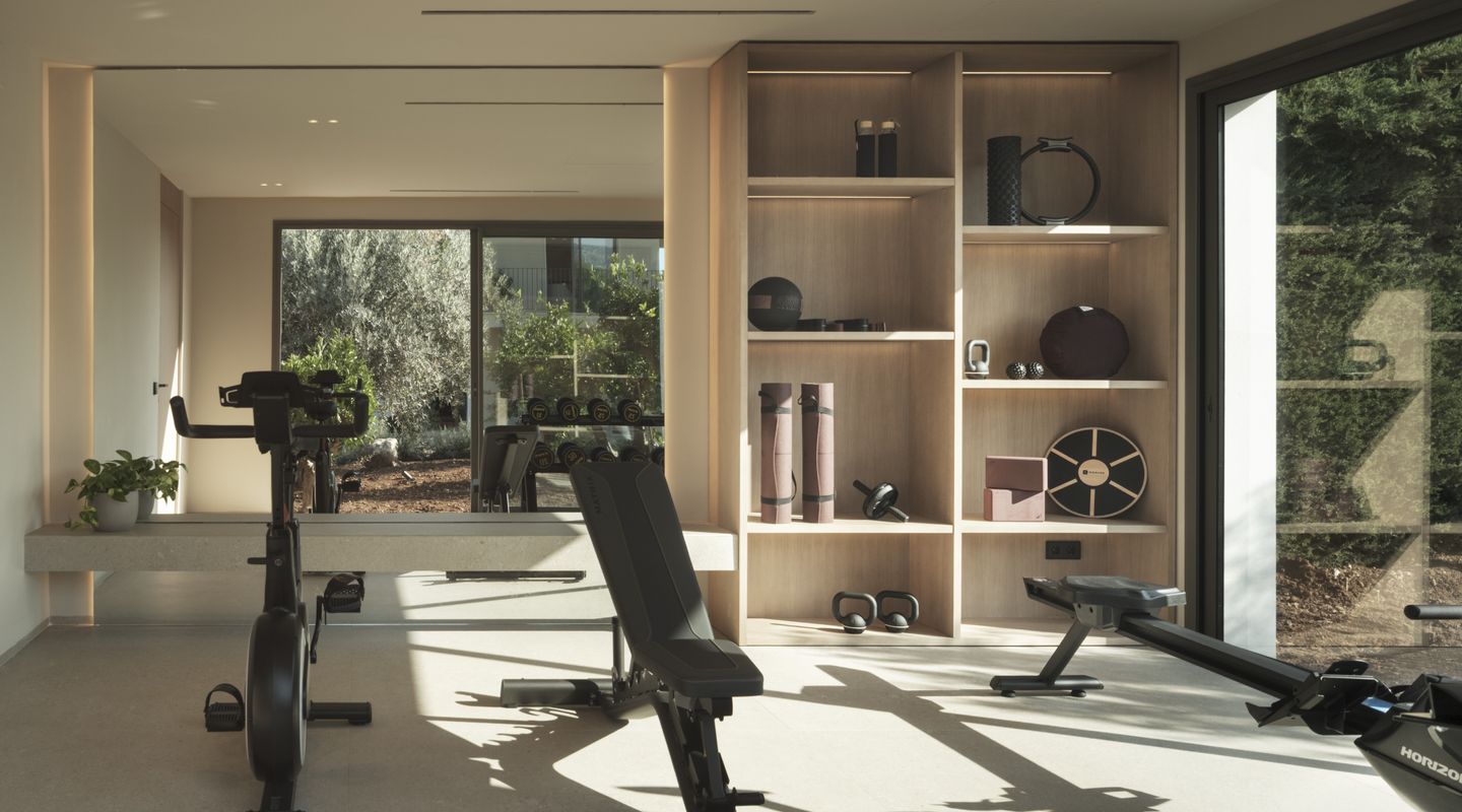 The private wellness area with gym, jacuzzi, and sauna offers the perfect space to unwind and recharge. A garage for two large vehicles adds to the convenience.