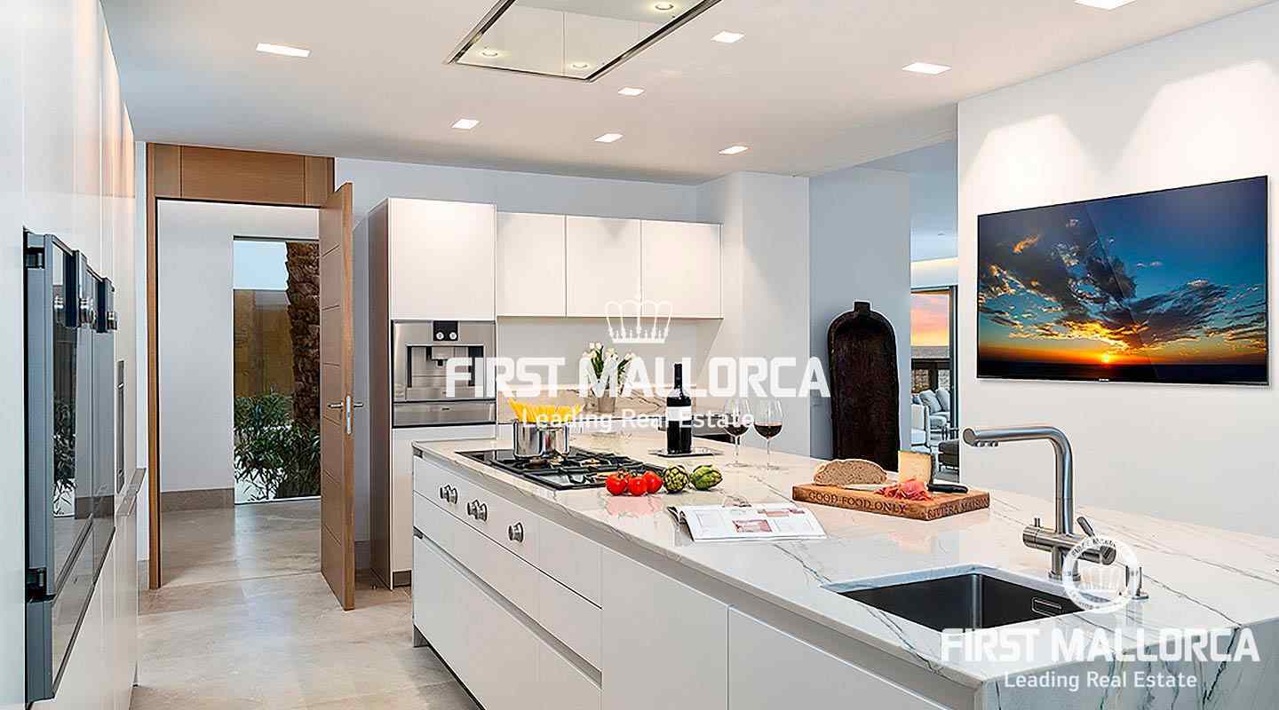 On a constructed area of over 1,000 m², the villa offers 6 bedrooms with 6 bathrooms, open and covered terraces, 3 garage parking spaces and its own garden. The villas are equipped with natural wood and stone floors, underfloor heating, air conditioning, double-glazed windows and high-quality devices from premium brands such as Bulthaup and Gaggenau. There is also a 24-hour concierge service and a security system.