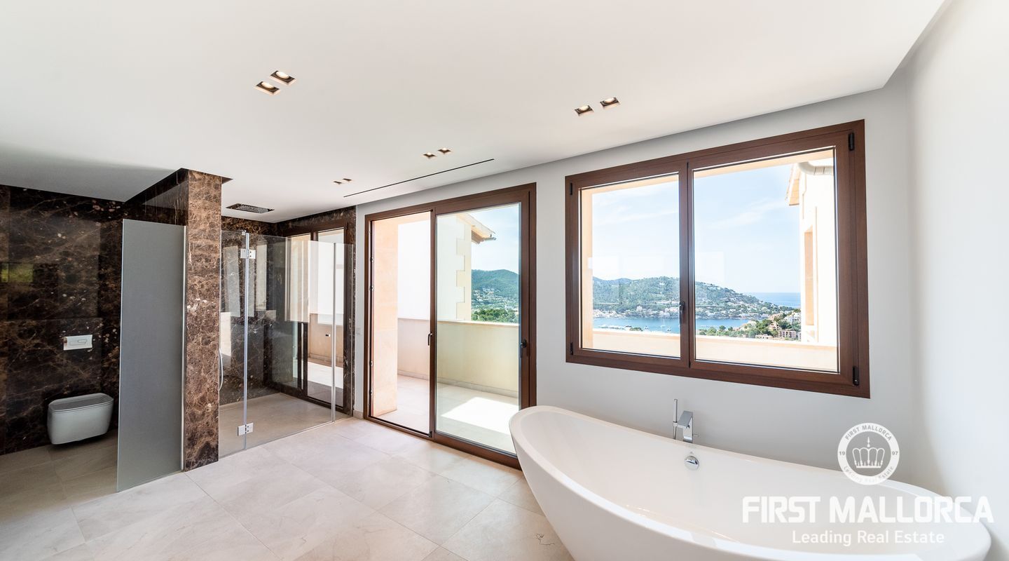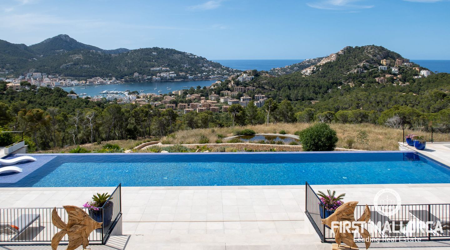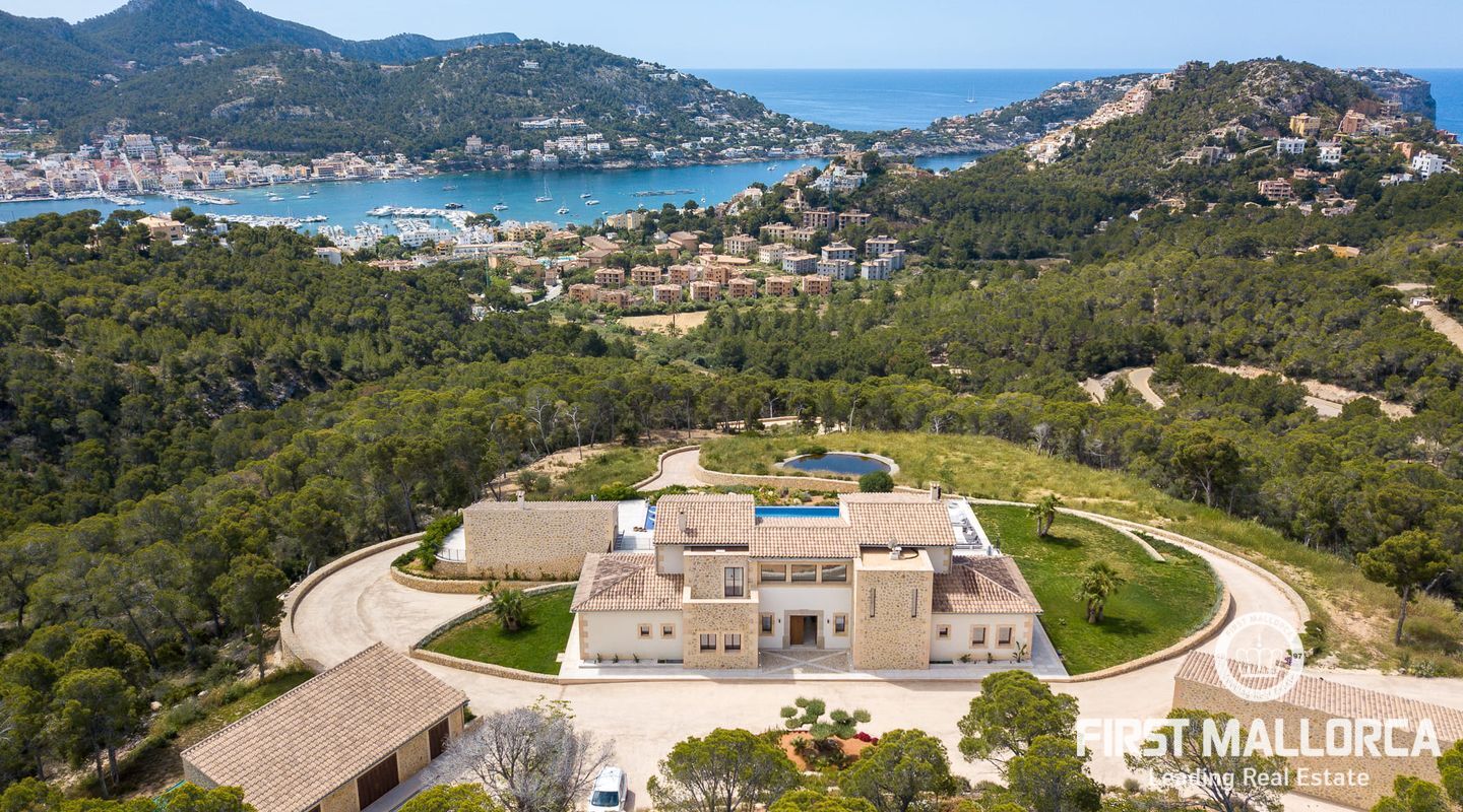Located on an exclusive south-facing plot of 96,000 m² in Puerto de Andratx in the south-west of Mallorca, this truly exceptional newly built villa enjoys a lot of privacy and spectacular views of the harbour and the open sea.