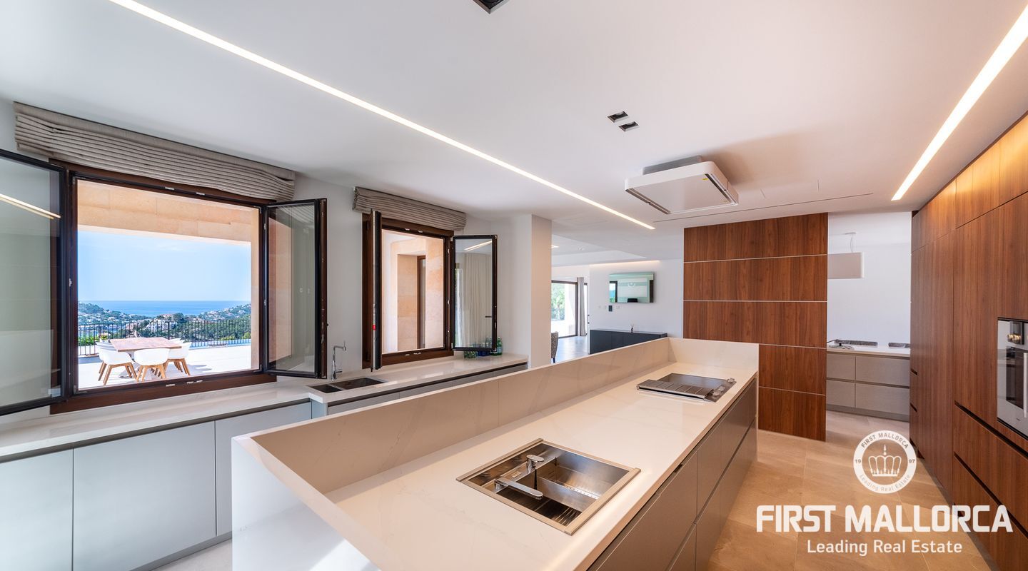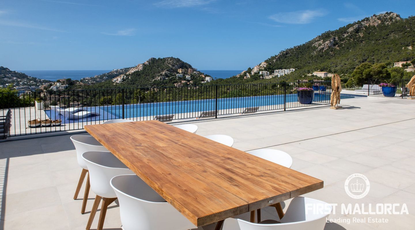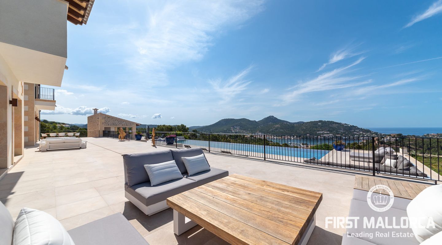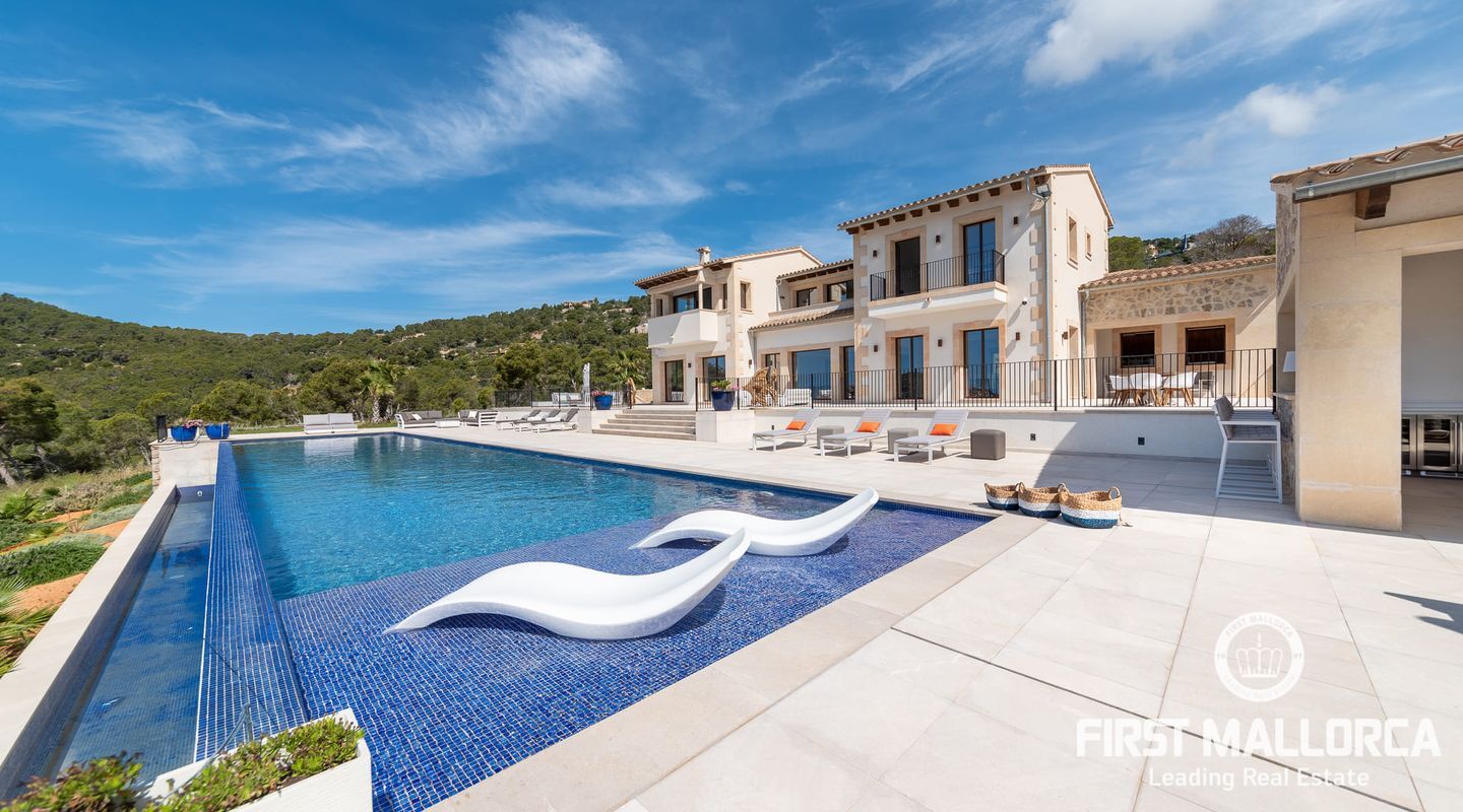 Located on an exclusive south-facing plot of 96,000 m² in Puerto de Andratx in the south-west of Mallorca, this truly exceptional newly built villa enjoys a lot of privacy and spectacular views of the harbour and the open sea.