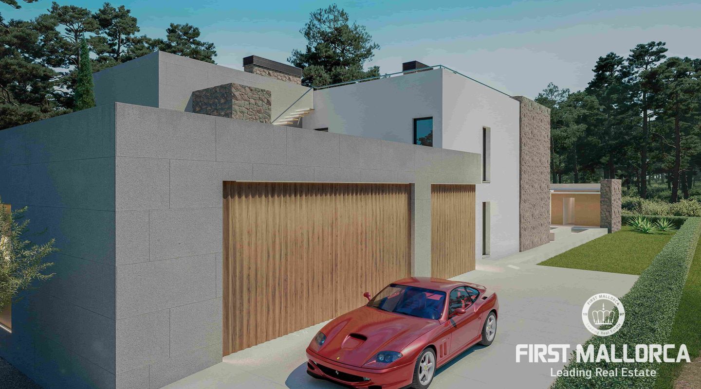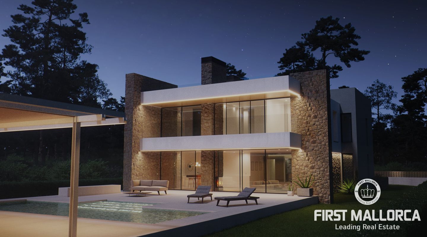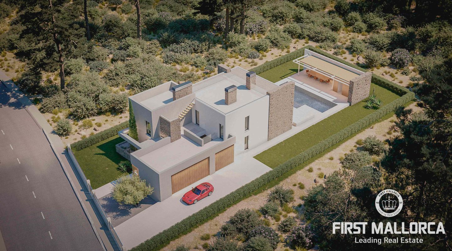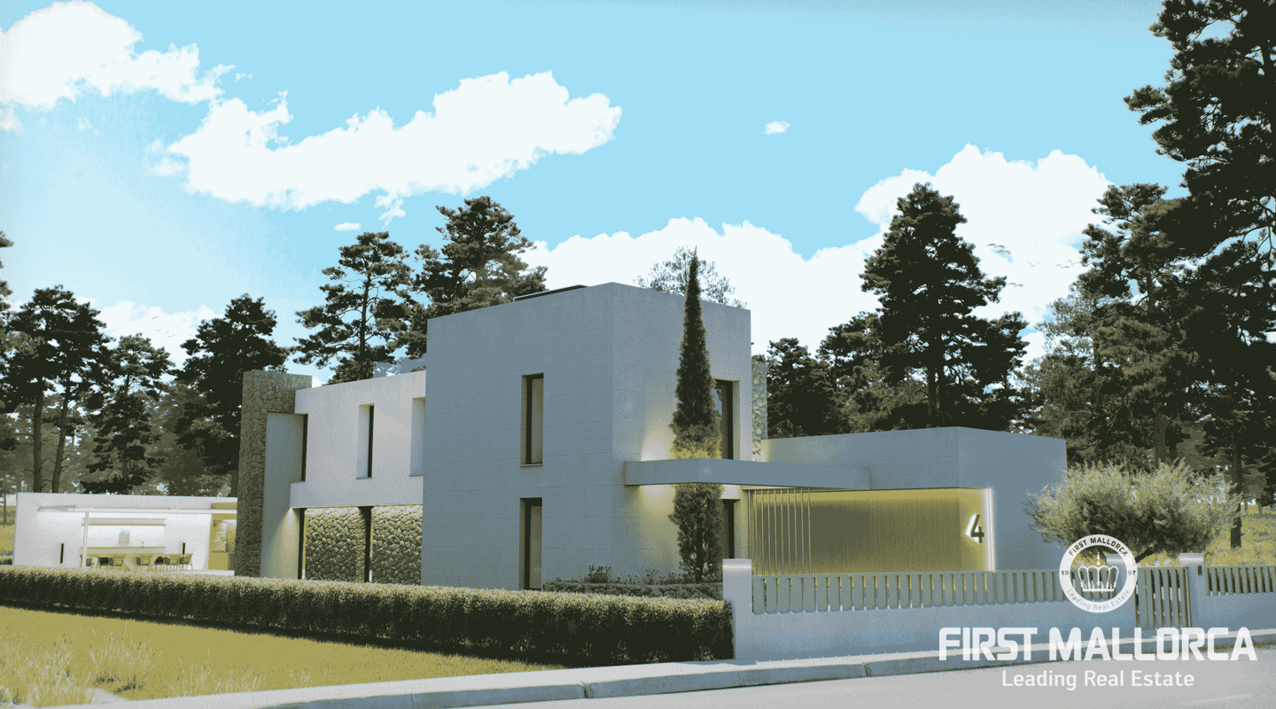 Detached and new construction villa for sale in Puerto de Pollença. The construction is expected to start at the end of 2022 on a plot of 1.300 m2, only 250 meters from the sea. The property consists of two floors and a constructed area of about 413m2, it will accommodate 5 bedrooms with en suite, an open and bright living and dining area as well as a fully equipped kitchen with integrated Bulthaup appliances. Underfloor heating is provided by an aerothermal system which also takes over the task of providing ducted air conditioning.