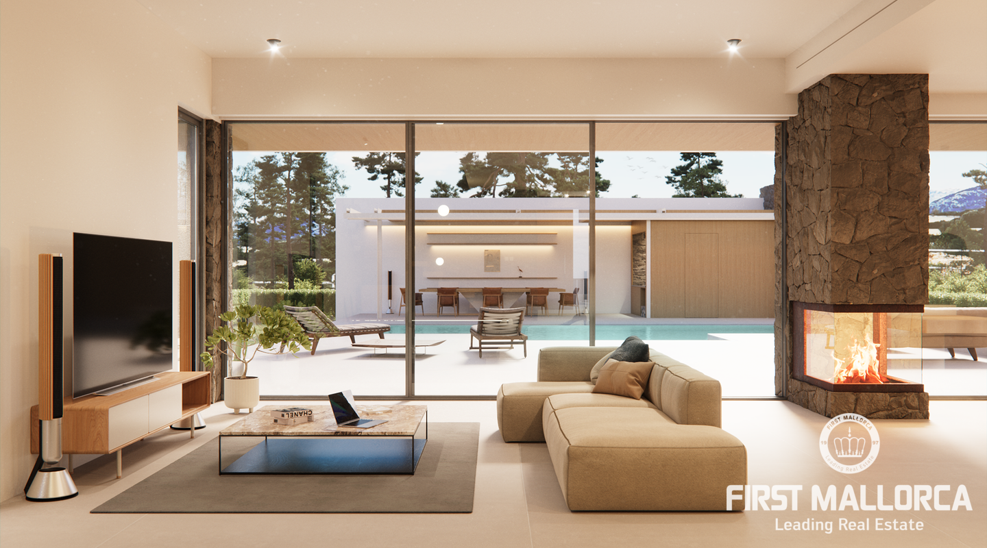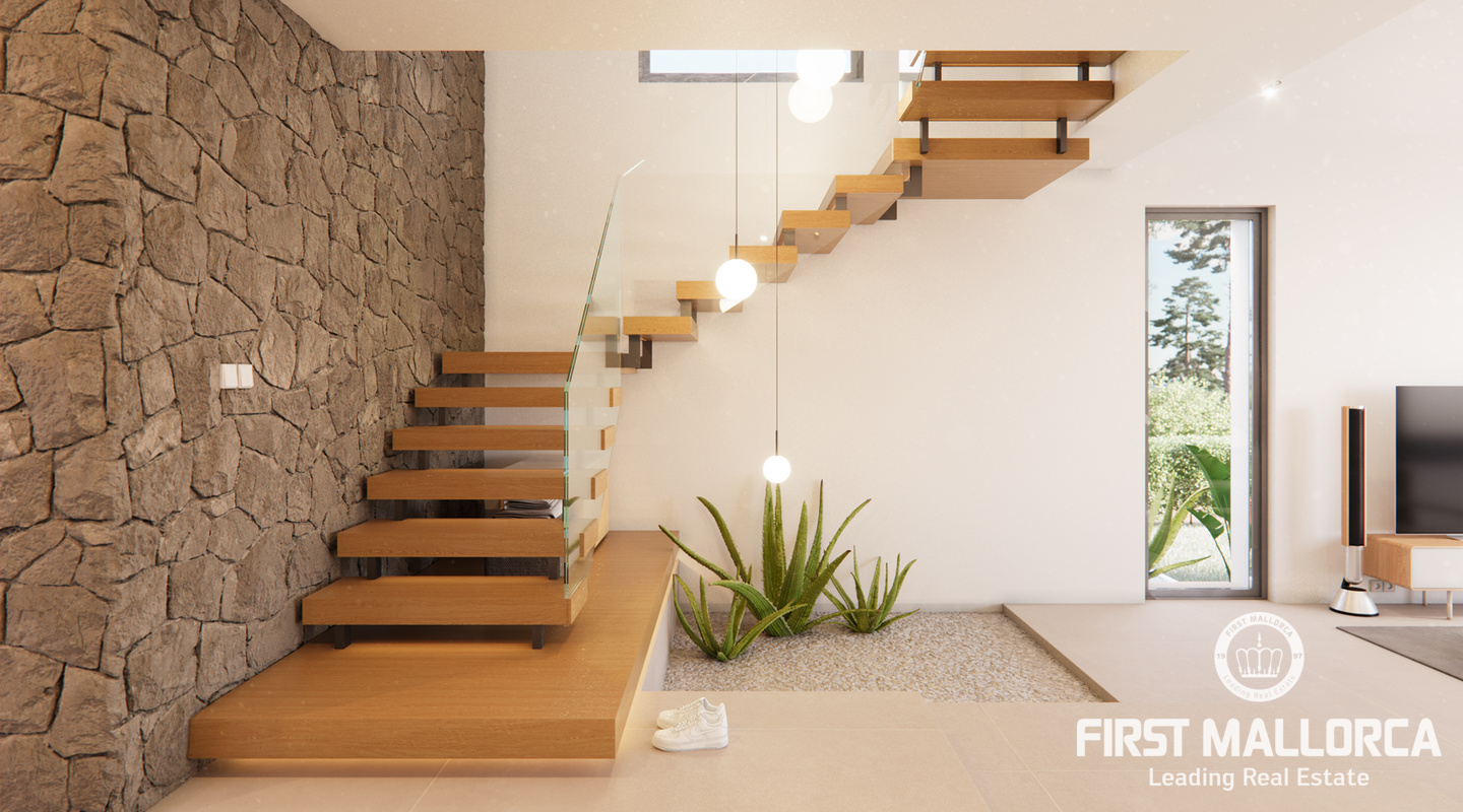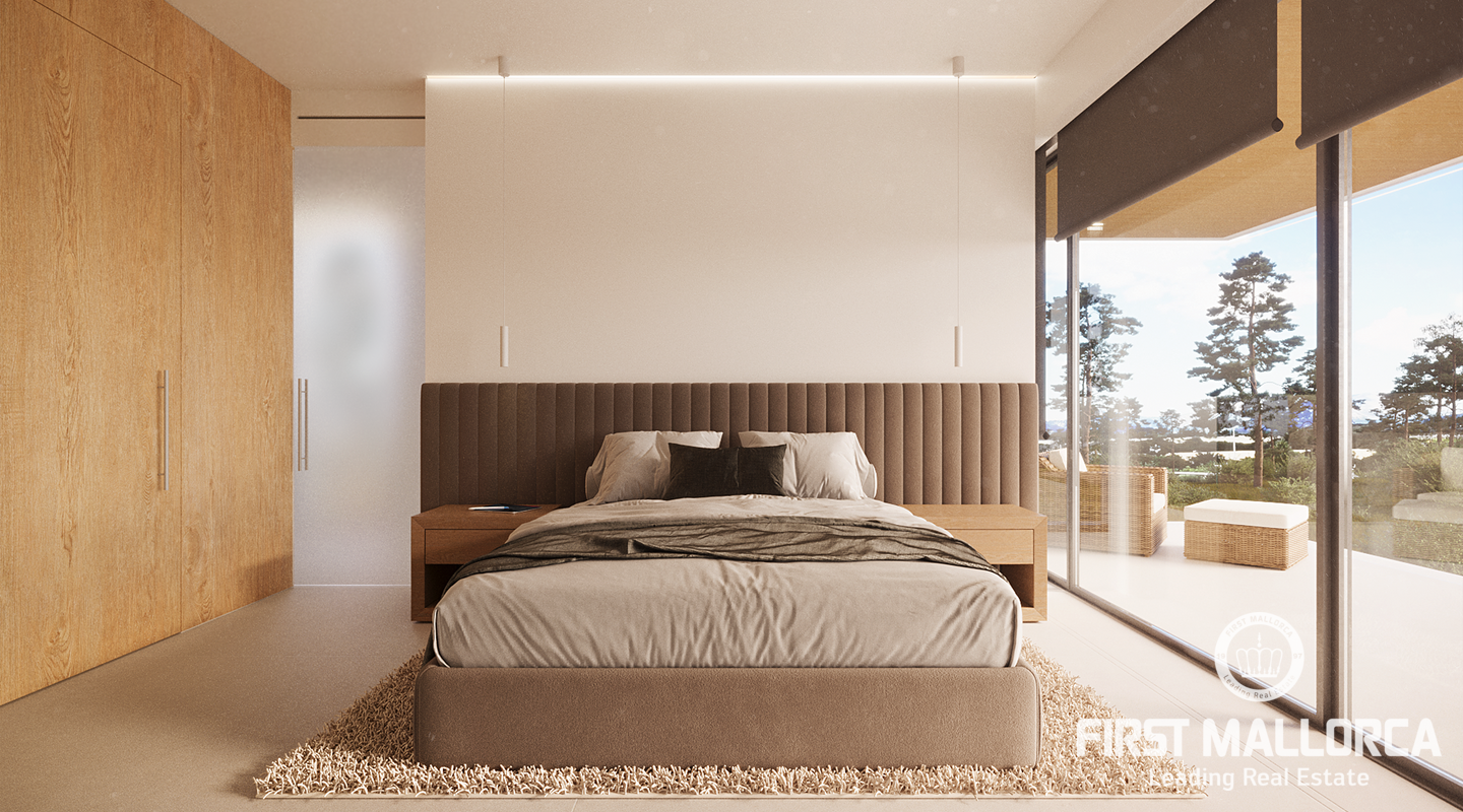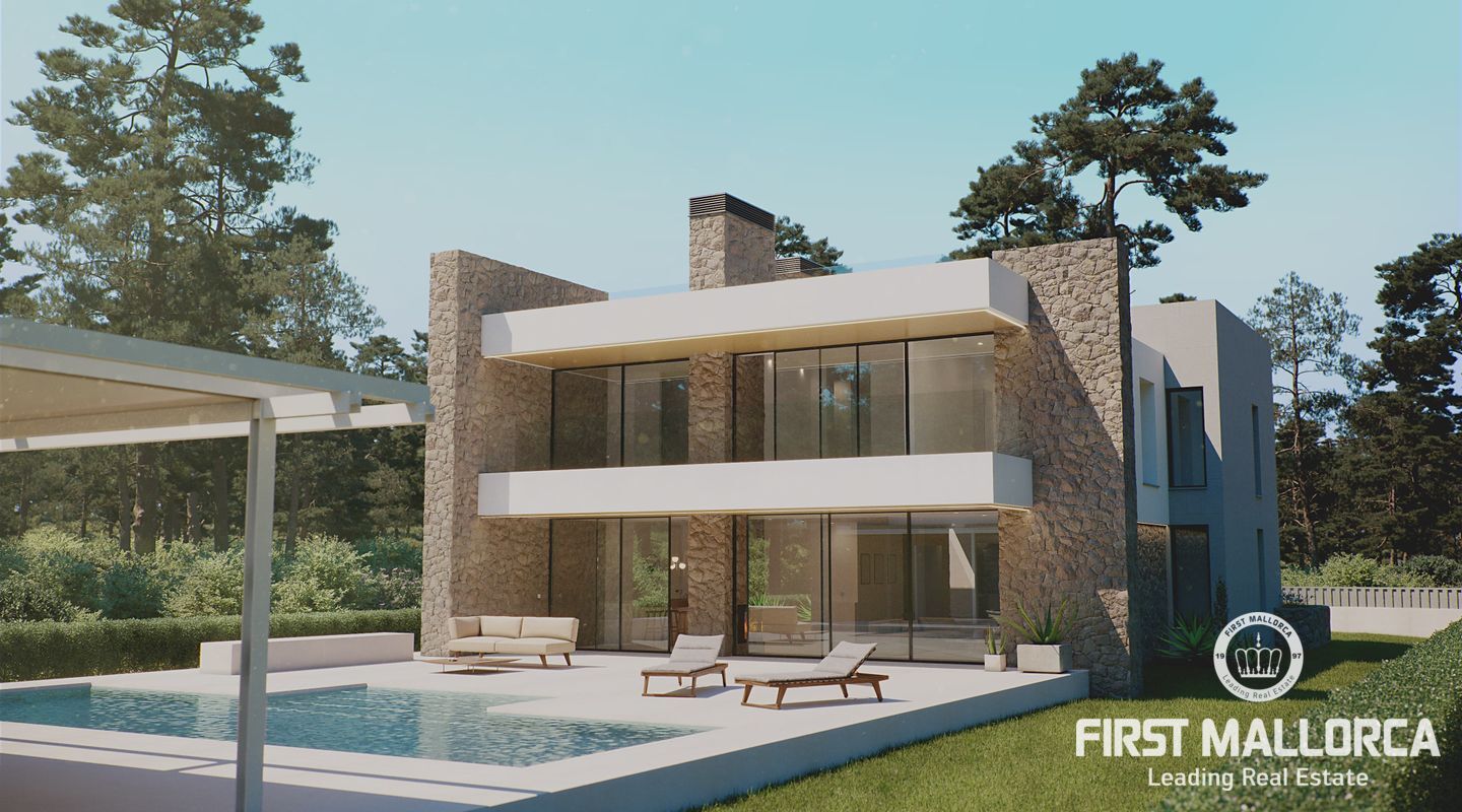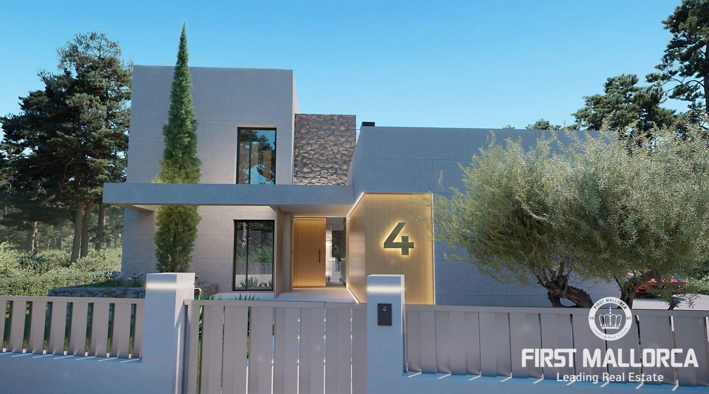 Detached and new construction villa for sale in Puerto de Pollença. The construction is expected to start at the end of 2022 on a plot of 1.300 m2, only 250 meters from the sea. The property consists of two floors and a constructed area of about 413m2, it will accommodate 5 bedrooms with en suite, an open and bright living and dining area as well as a fully equipped kitchen with integrated Bulthaup appliances. Underfloor heating is provided by an aerothermal system which also takes over the task of providing ducted air conditioning.